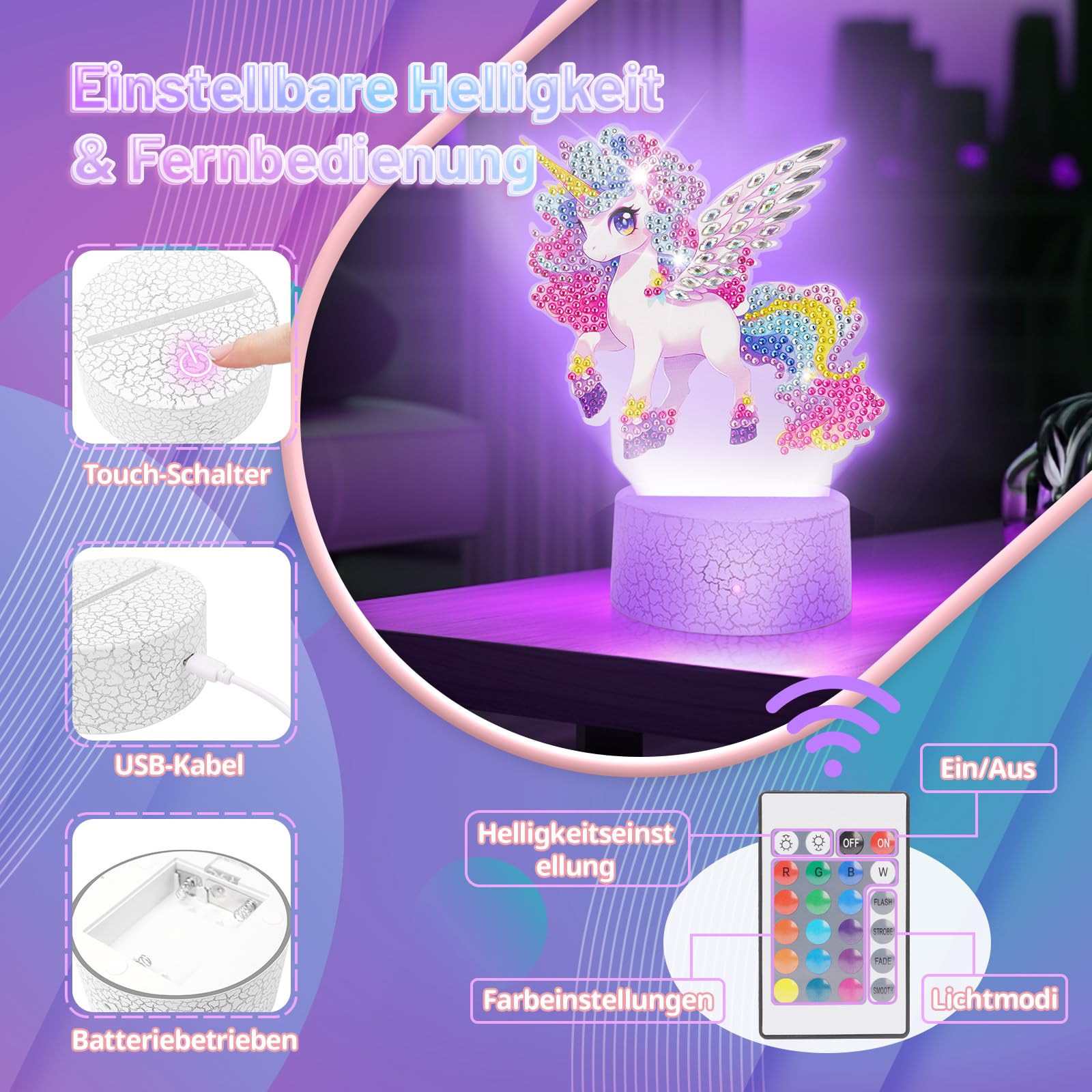 Einhorn Geschenke für Mädchen 5 6 7 8 9 Jahre: Basteln Mädchen 7 8 9 10 Jahre Diamond Painting Nachtlicht Bastelset Kinder ab 6 8 10 Jahren Spielzeug Kinder 5-12 Jahr Coole Geschenkideen Zimmer Deko