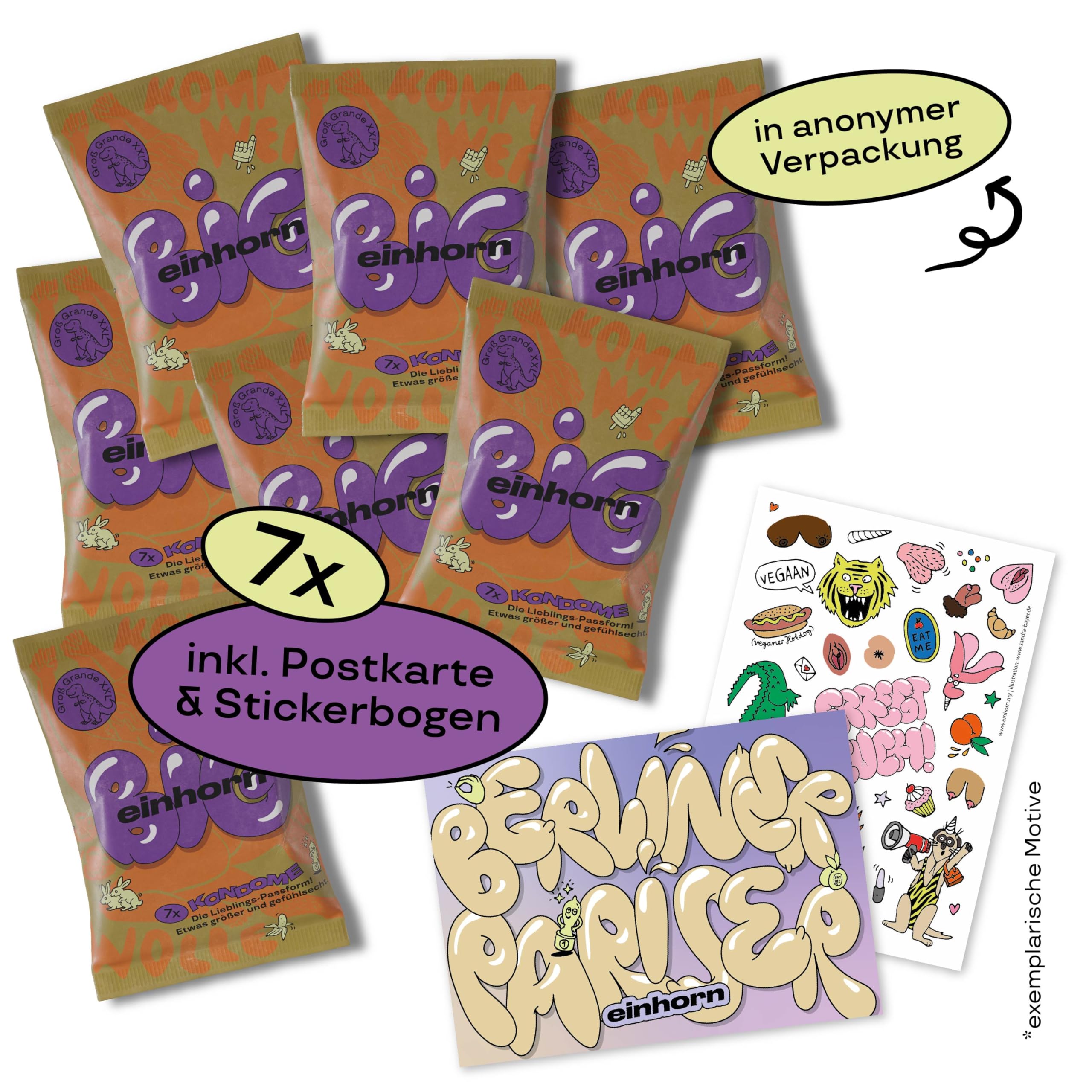 einhorn grosse Kondome I 49er Jahresvorrat BIG I 49 Stück I XL-Grösse 57 mm I vegane, hormonfreie Verhütung ohne Chemie I natürlicher Gleitfilm I nachhaltig und sicher