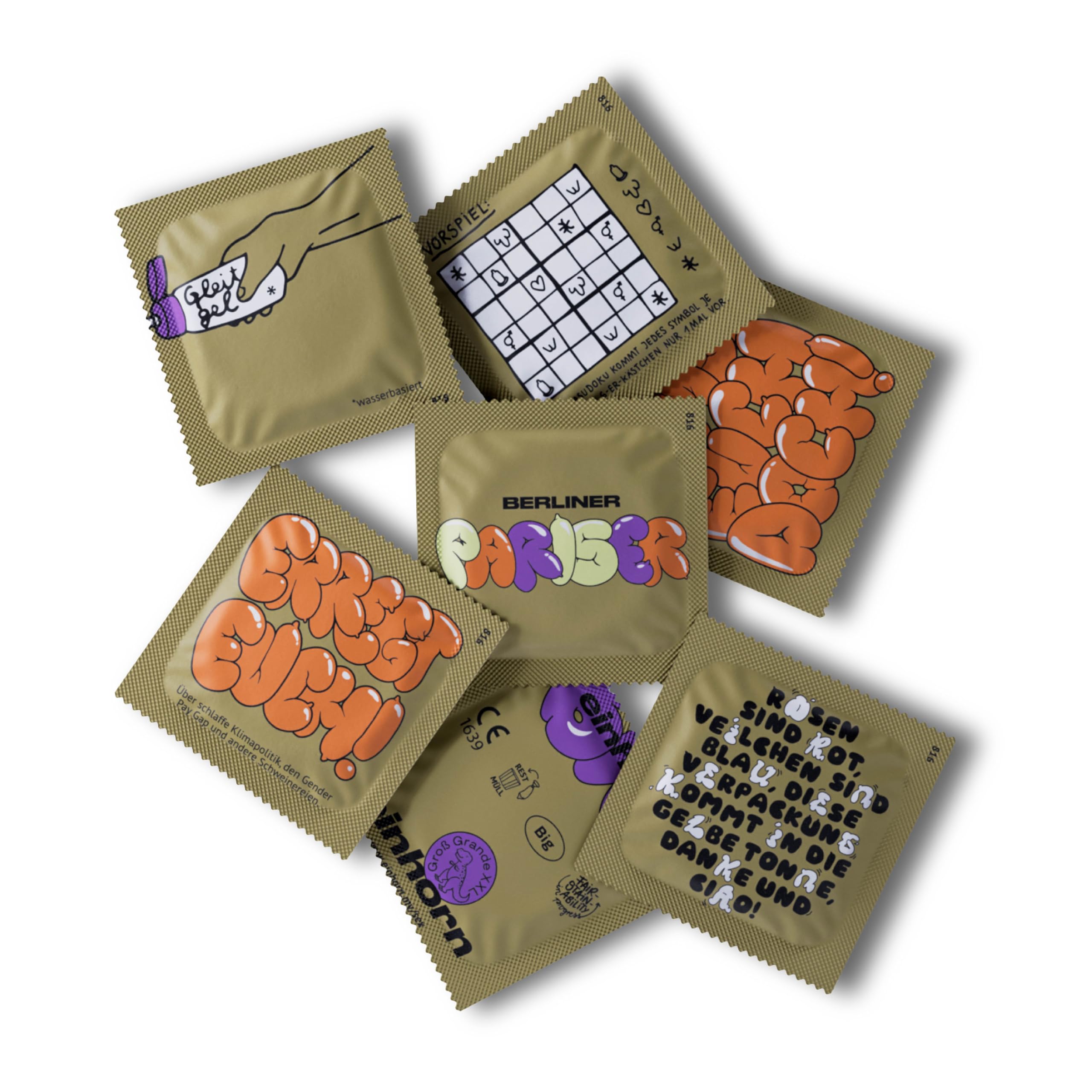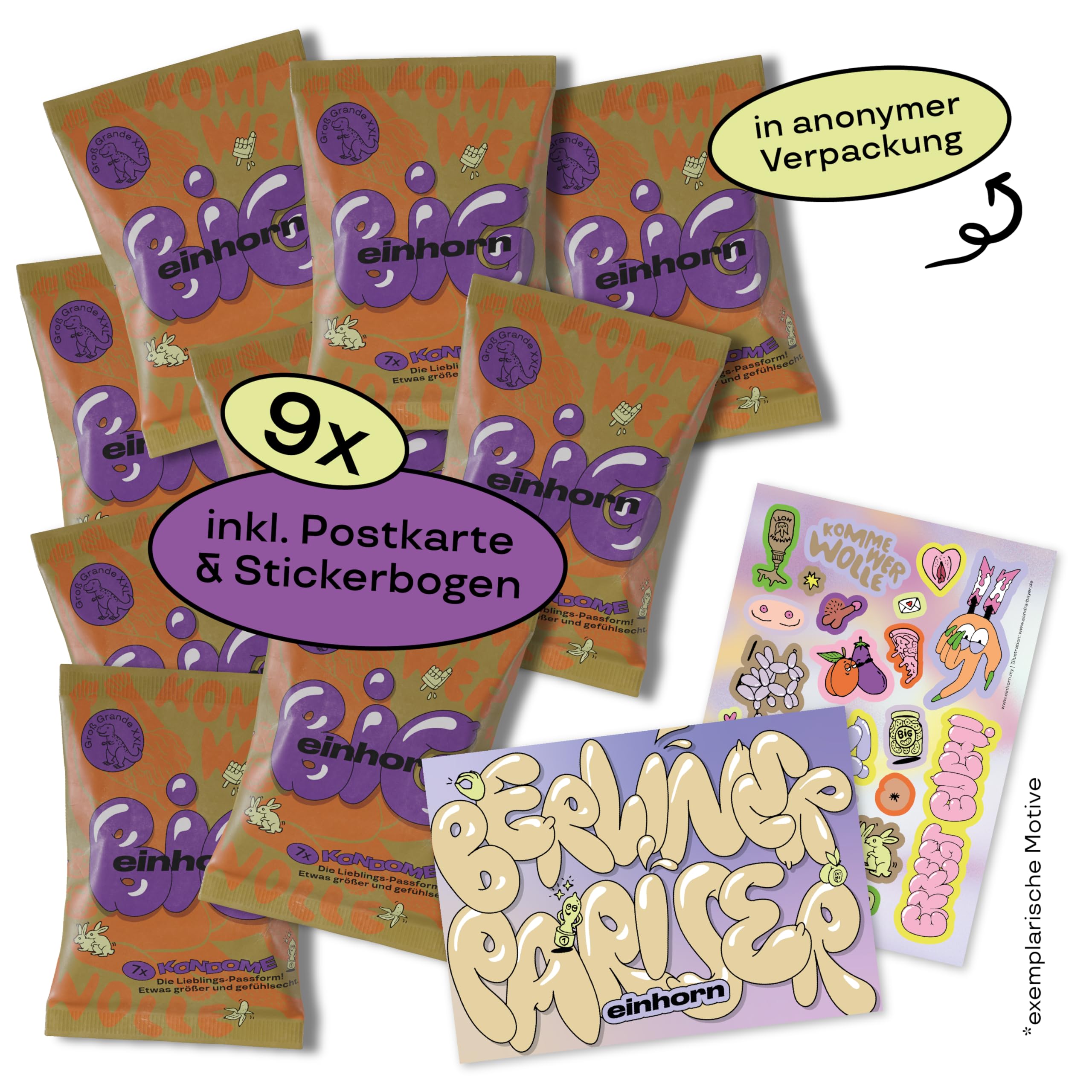 einhorn grosse Kondome I 63 Kondome BIG Geschenk Special I Super Tyrannosaurus I XL-Grösse 57 mm I vegane, hormonfreie Verhütung, natürlicher Gleitfilm - nachhaltig und sicher