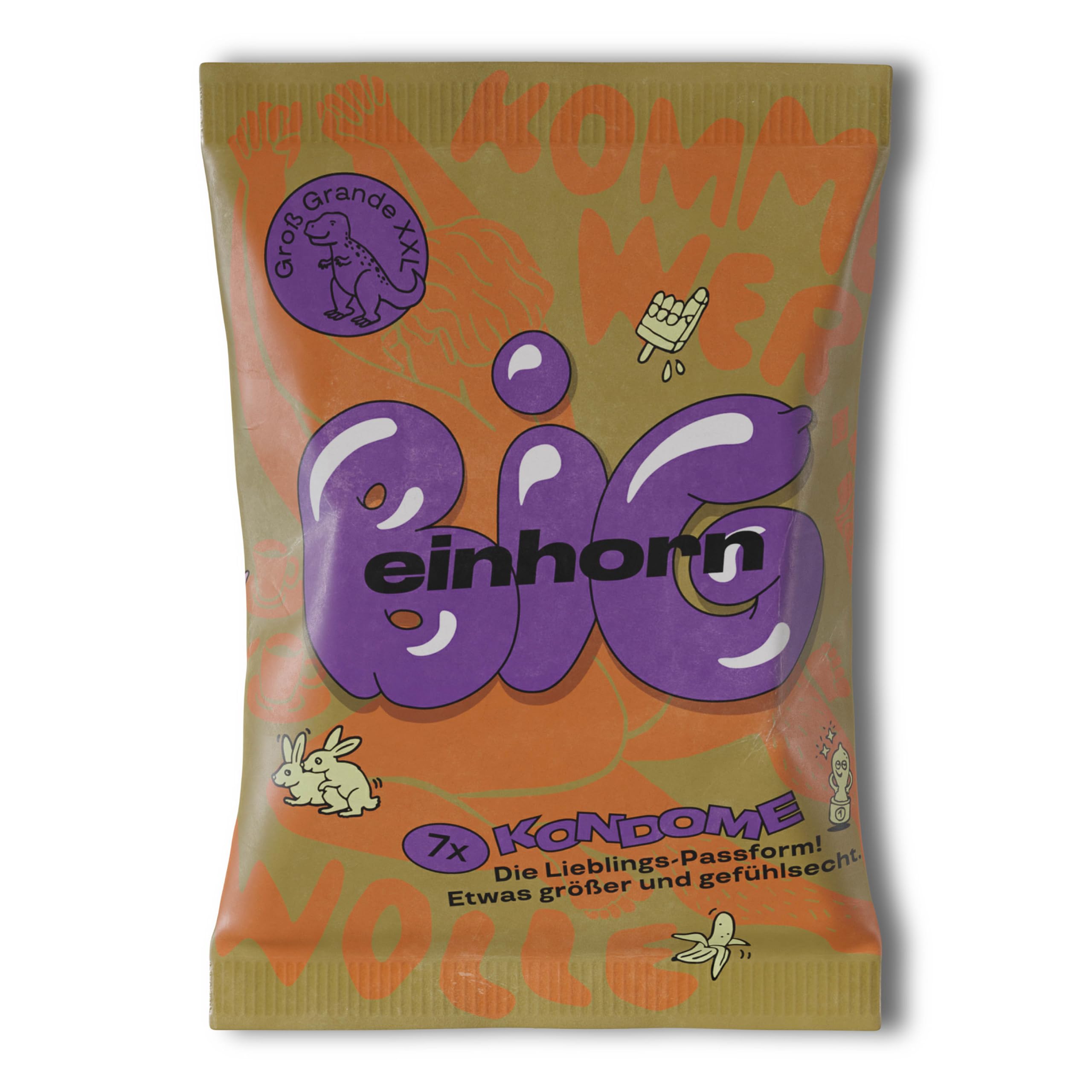 einhorn grosse Kondome I 7er Big I 7 Stück I XL-Grösse 57 mm I vegane, hormonfreie Verhütung ohne Chemie I natürlicher Gleitfilm I nachhaltig und sicher
