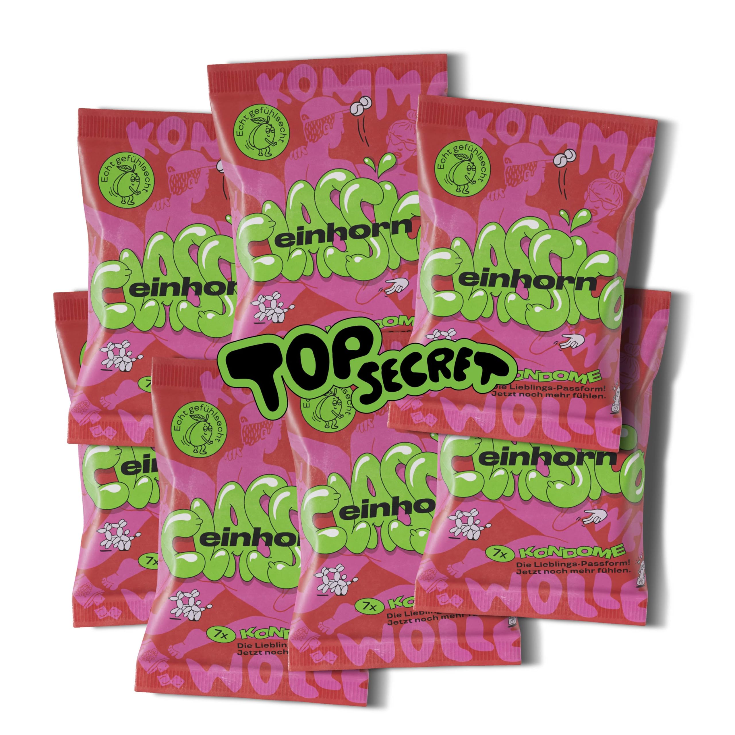 einhorn Kondome I 49 Stück im Top Secret Paket I Jahresvorrat Classico I Standardgrösse 54 mm I vegane, hormonfreie Verhütung ohne Chemie I natürlicher Gleitfilm I nachhaltig und sicher