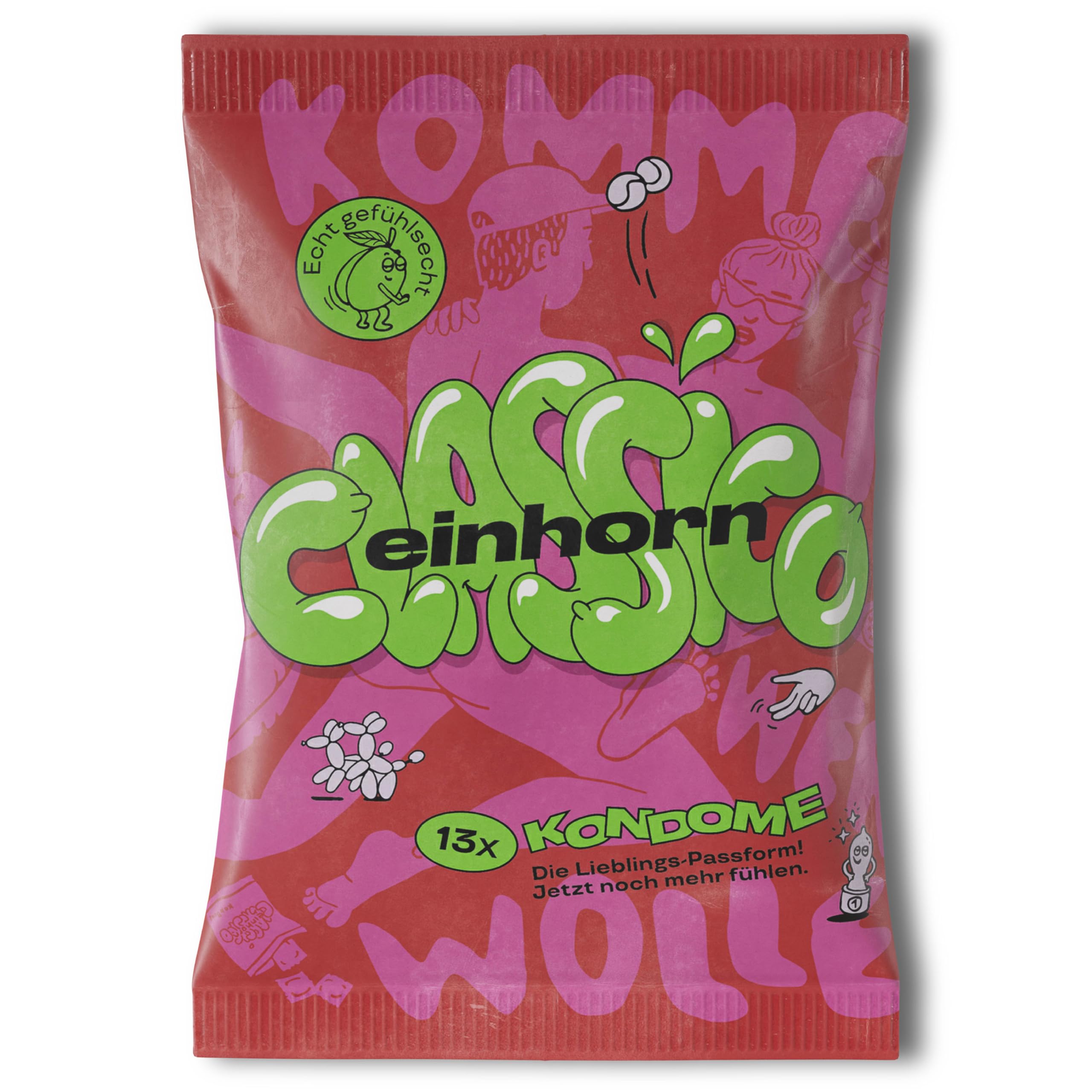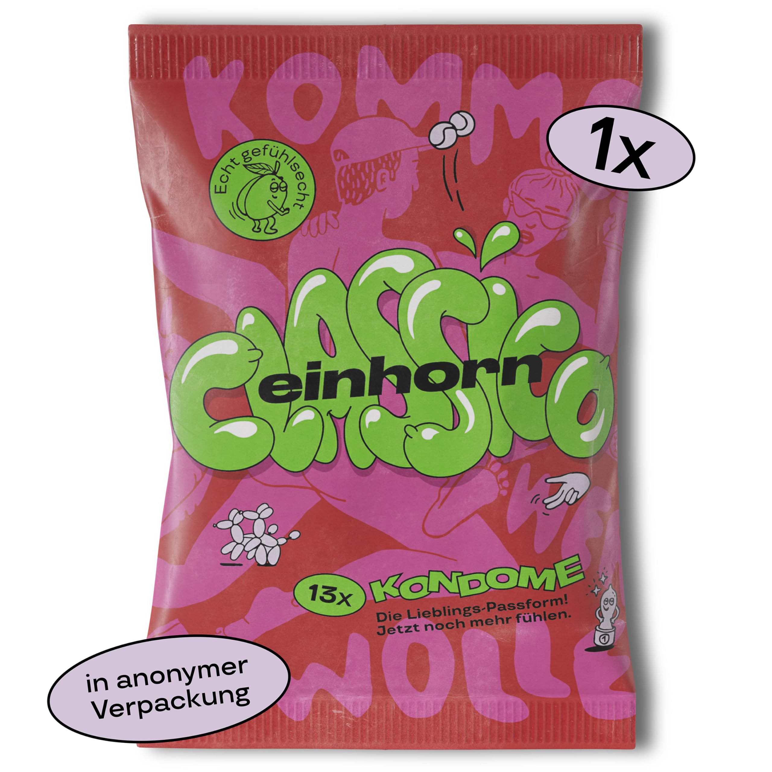 einhorn Kondome I 13er Classico I 13 Stück I Standardgrösse 54 mm I vegane, hormonfreie Verhütung ohne Chemie - natürlicher Gleitfilm - nachhaltig und sicher