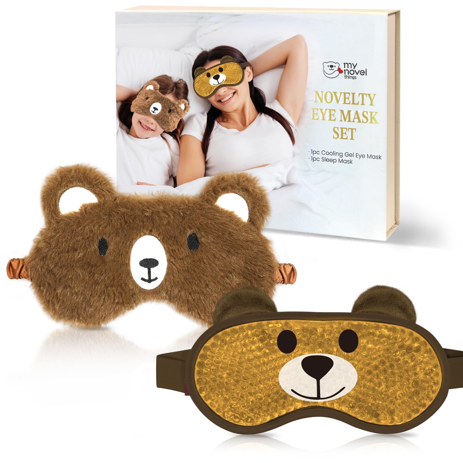 my novel things Augenmaske Kühlend, Braunbär-Schlafmaske 2er Pack, Schlaf Entspannungs Augenmaske, Gel-Augenmaske Kalt/Warmtherapie Für Geschwollene Augen, Beruhigt müde Augen