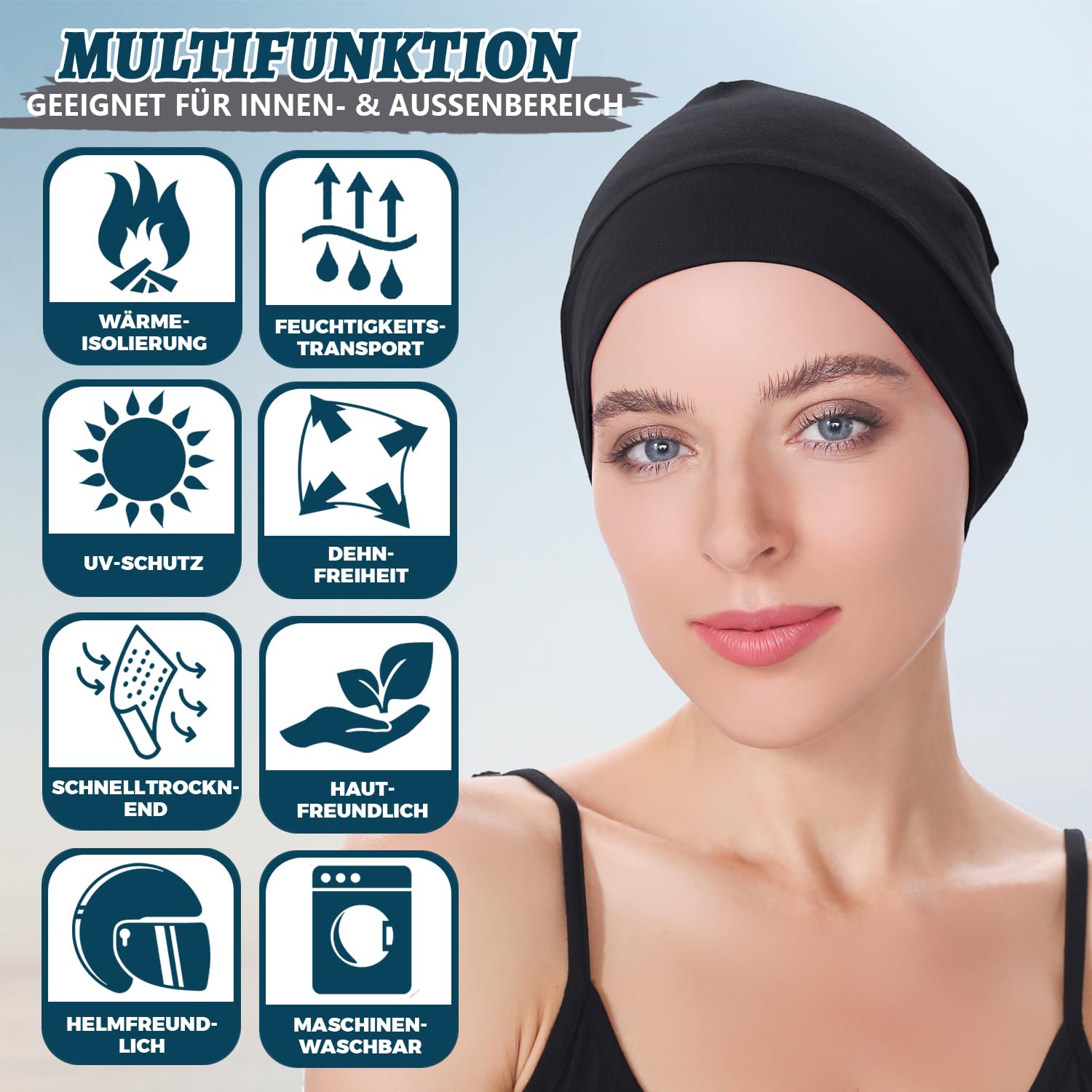 EINSKEY Fahrradmütze Unter Helm, Leichte Dünne Baumwollmütze für Herren und Damen, Perfekt als Schlafmütze, Laufmütze, Skull Cap oder Chemo Kopfbedeckung - 2er Pack