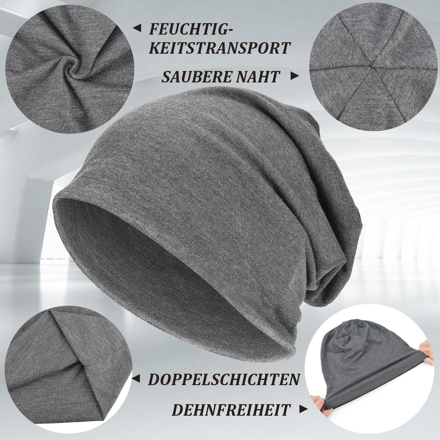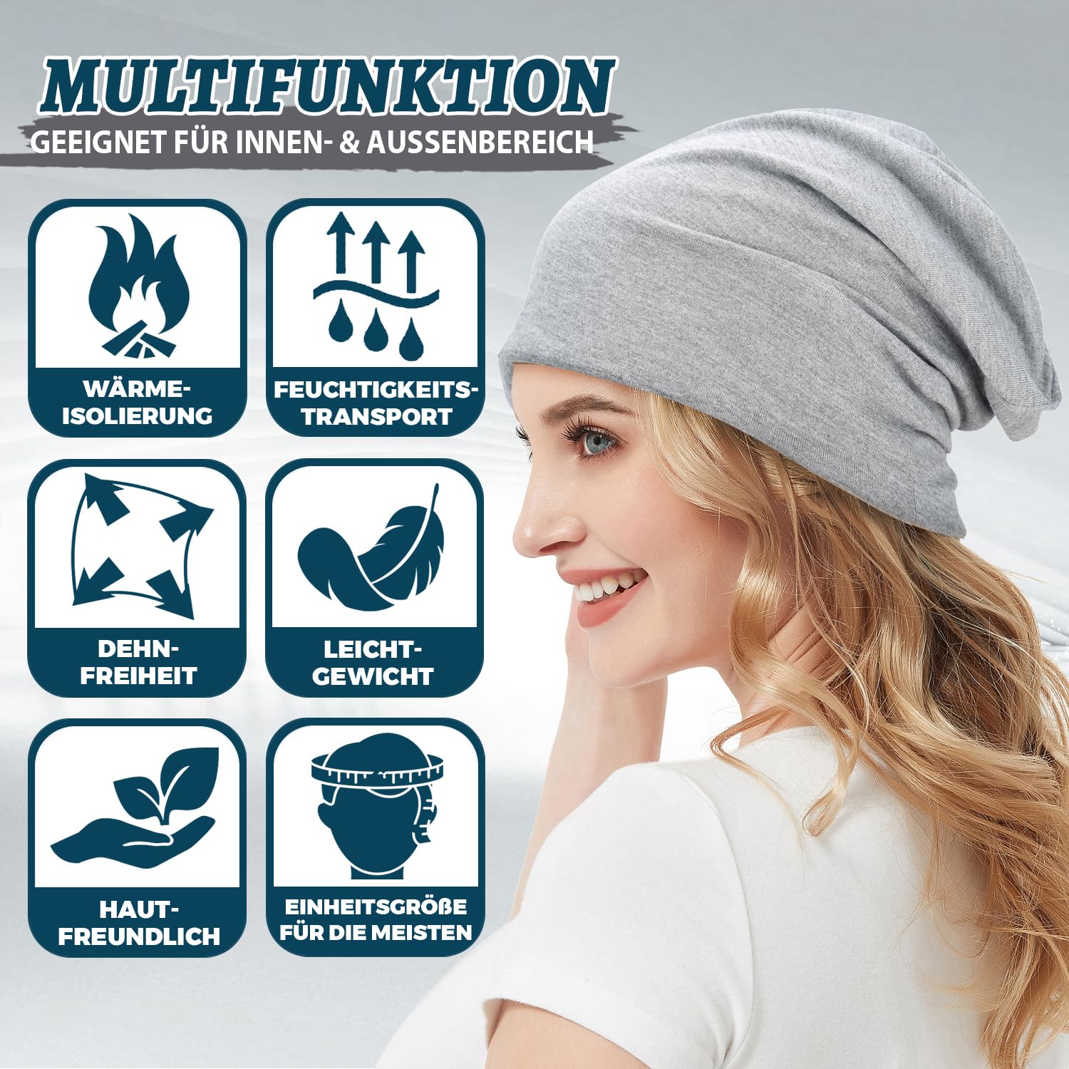 EINSKEY Slouch Beanie Mütze: Weich Dünne Baumwollmütze Damen Herren, Atmungsaktiv Jersey, Elastisch Longbeanie Alle Jahreszeiten, Ideal Chemo/Laufmütze