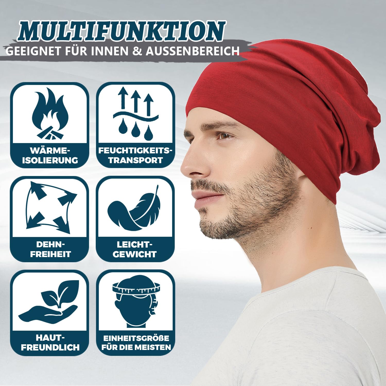 Unsere unisex Baumwoll-Slouchy-Beanie-Mütze ist die perfekte Begleitung für sonnige Sommerstage – mit ihr bleiben Sie den ganzen Tag über cool, bequem und stilvoll. Das entspannte, legere Design macht sie zu einem idealen Accessoire für jede lockere Gelegenheit. Hergestellt aus hochwertiger, atmungsaktiver Baumwolle punktet sie nicht nur mit weicher Tragekomfort, sondern auch mit praktischem Schutz: Die schlaffe Passform bietet ausreichende Abdeckung für Gesicht und Hals, um sie vor schädlichen UV-Strahlen zu schützen. Gleichzeitig sorgt die lockere Form für optimalen Luftfluss, sodass Sie auch an wärmeren Tagen frisch und angenehm bleiben. Ob am Strand, bei Einkäufen oder beim Entspannen im Park – diese vielseitige Mütze passt zu jeder sommerlichen Aktivität. Mit ihrer "Einheitsgrösse für die meisten" ist sie eine praktische Wahl für die ganze Familie: Männer, Frauen und Teens profitieren von der bequemen Passform. Darüber hinaus ist sie maschinenwaschbar – die Pflege ist unkompliziert, sodass Sie Bequemlichkeit und Langlebigkeit die gesamte Saison lang geniessen können.