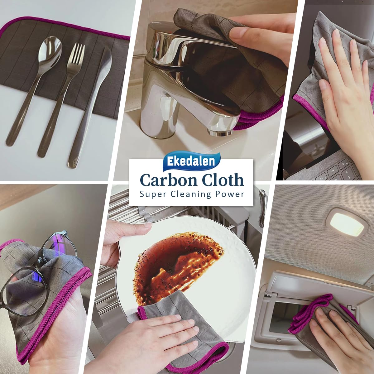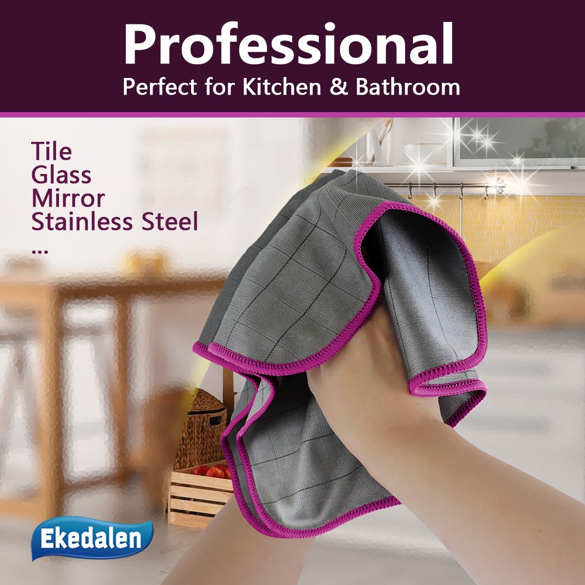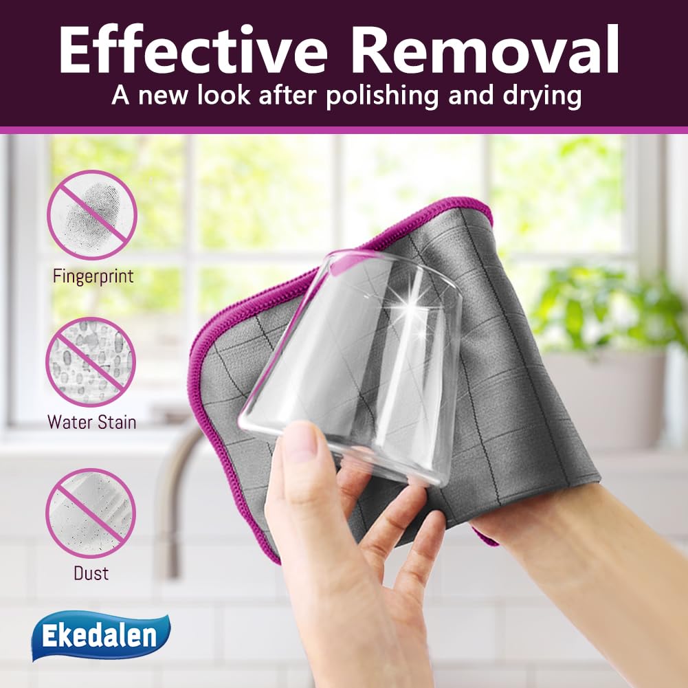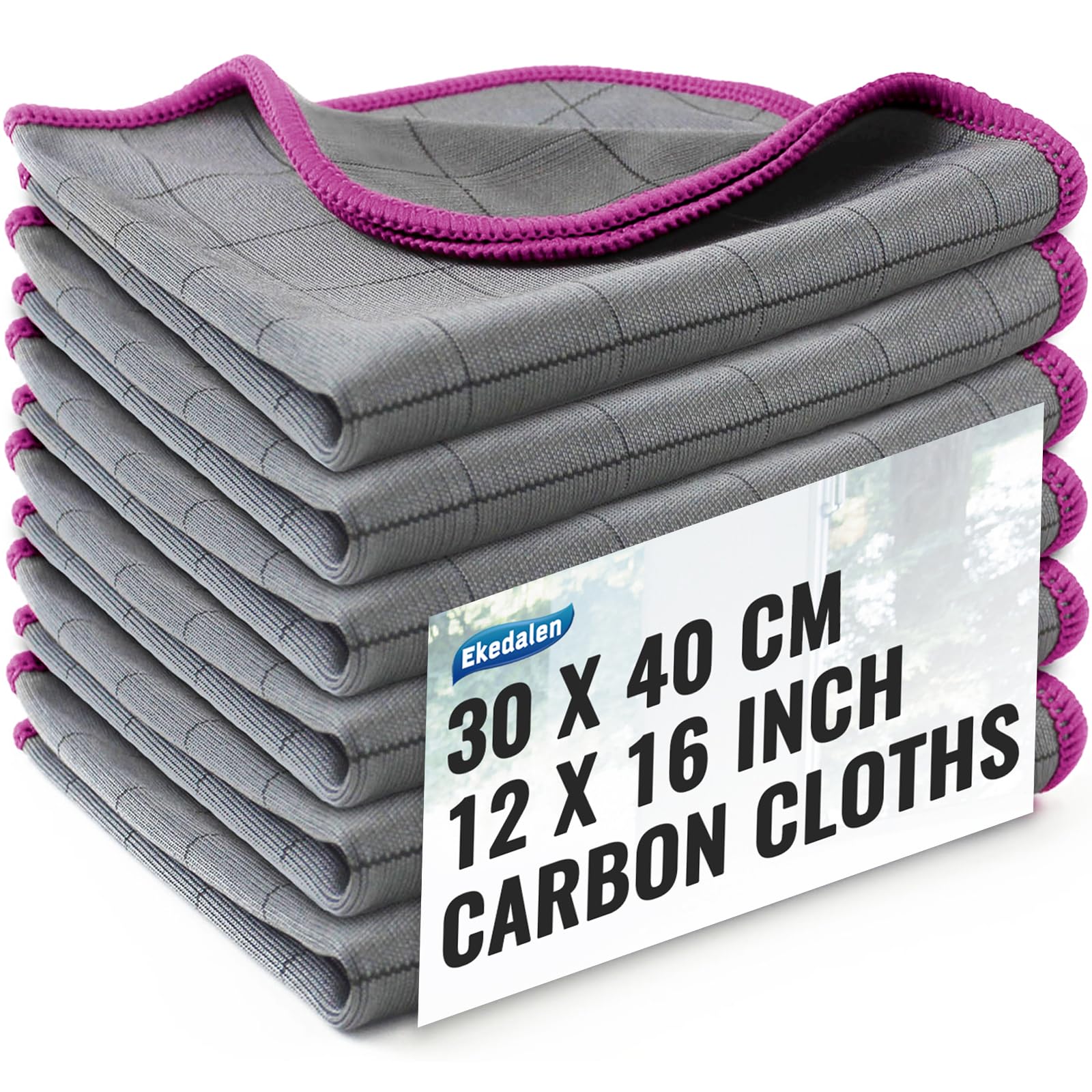Ekedalen 6X Fensterputztücher Carbon Tücher, Reinigungstücher für Kristallklare & Streifenfreie Scheiben, Mikrofaser Putztücher, Fusselfreies Poliertuch, 40x30 cm Glastücher, Lila