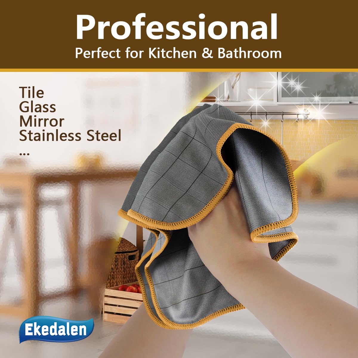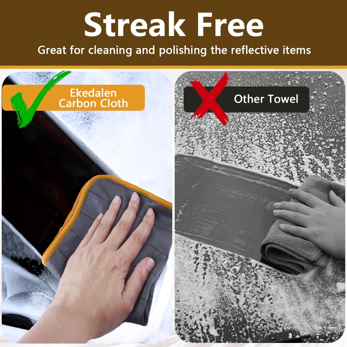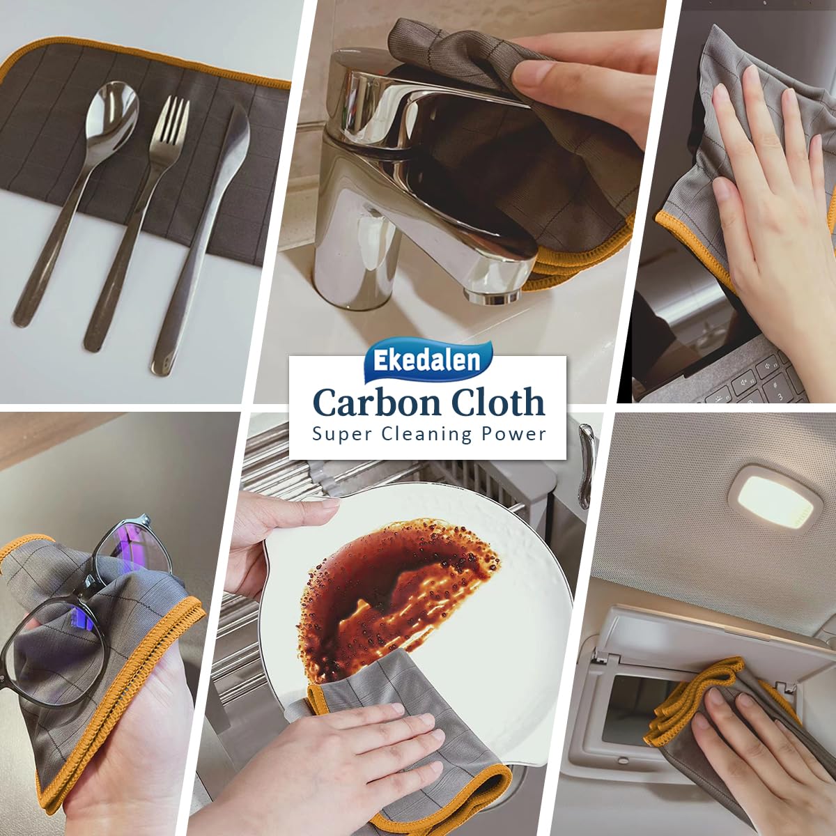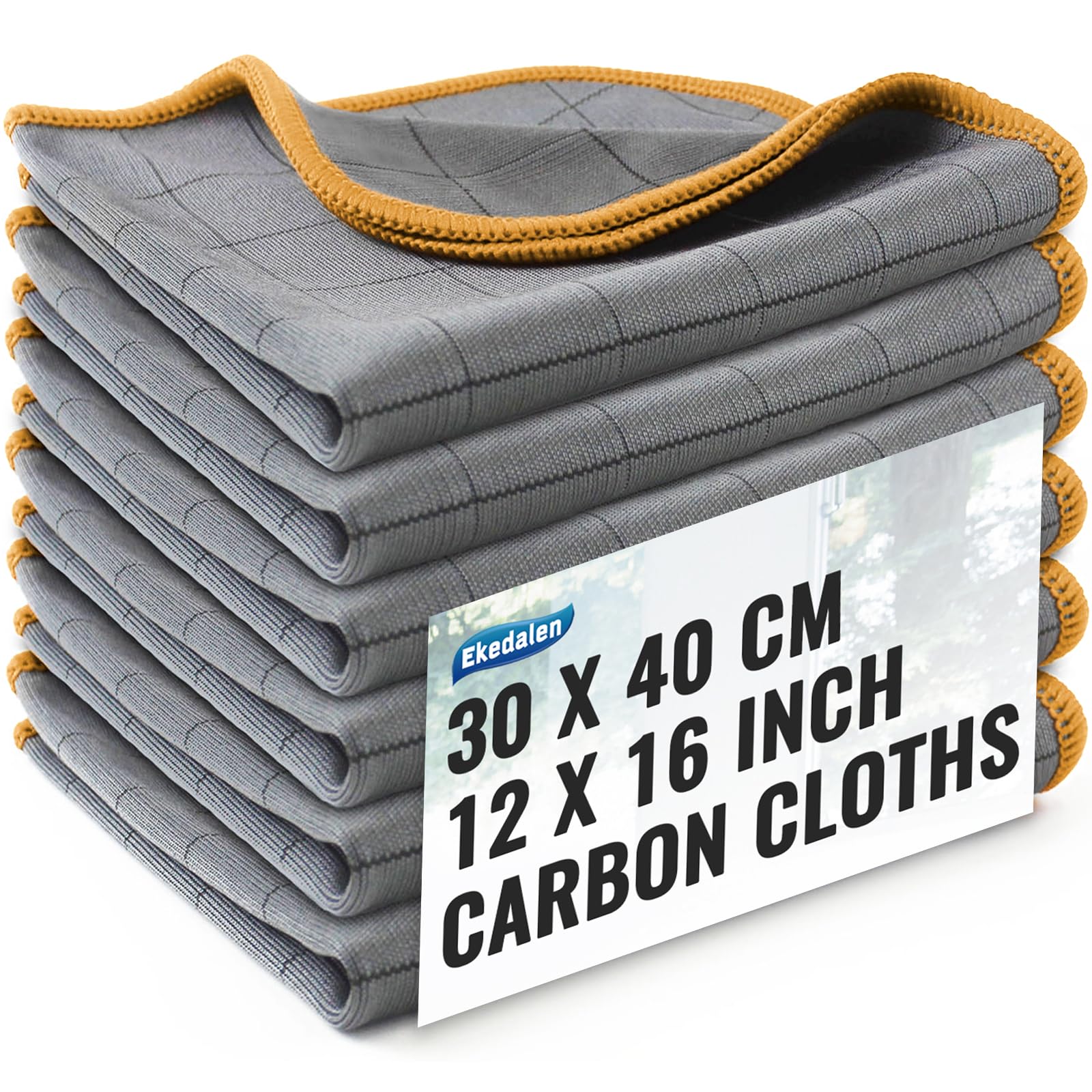 Ekedalen 6X Fensterputztücher Carbon Tücher, Reinigungstücher für Kristallklare & Streifenfreie Scheiben, Mikrofaser Putztücher, Fusselfreies Poliertuch, 40x30 cm Glastücher, Orange