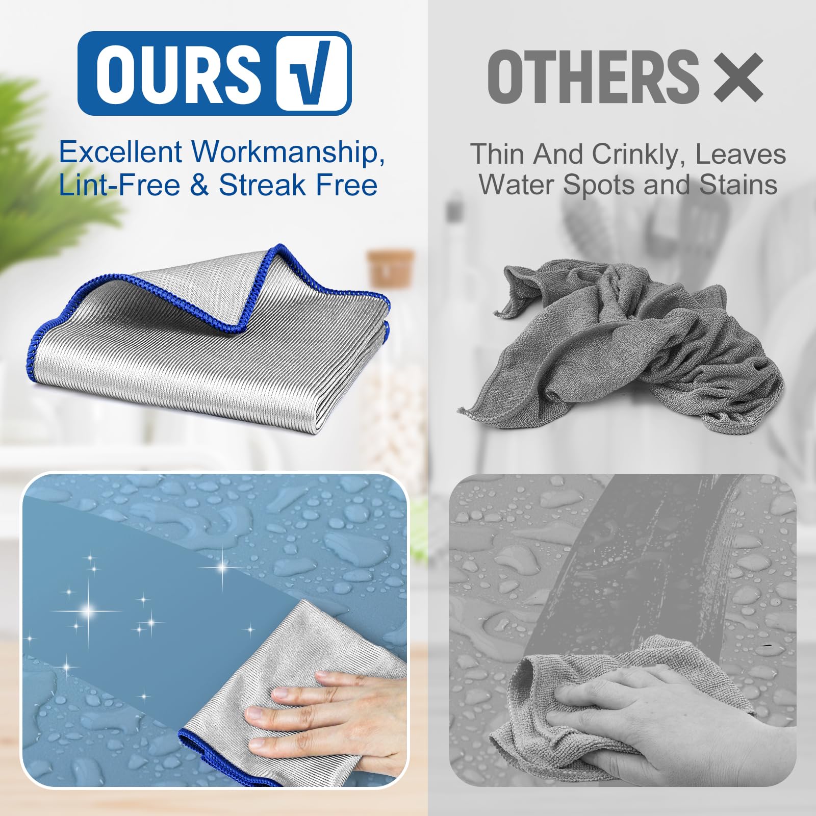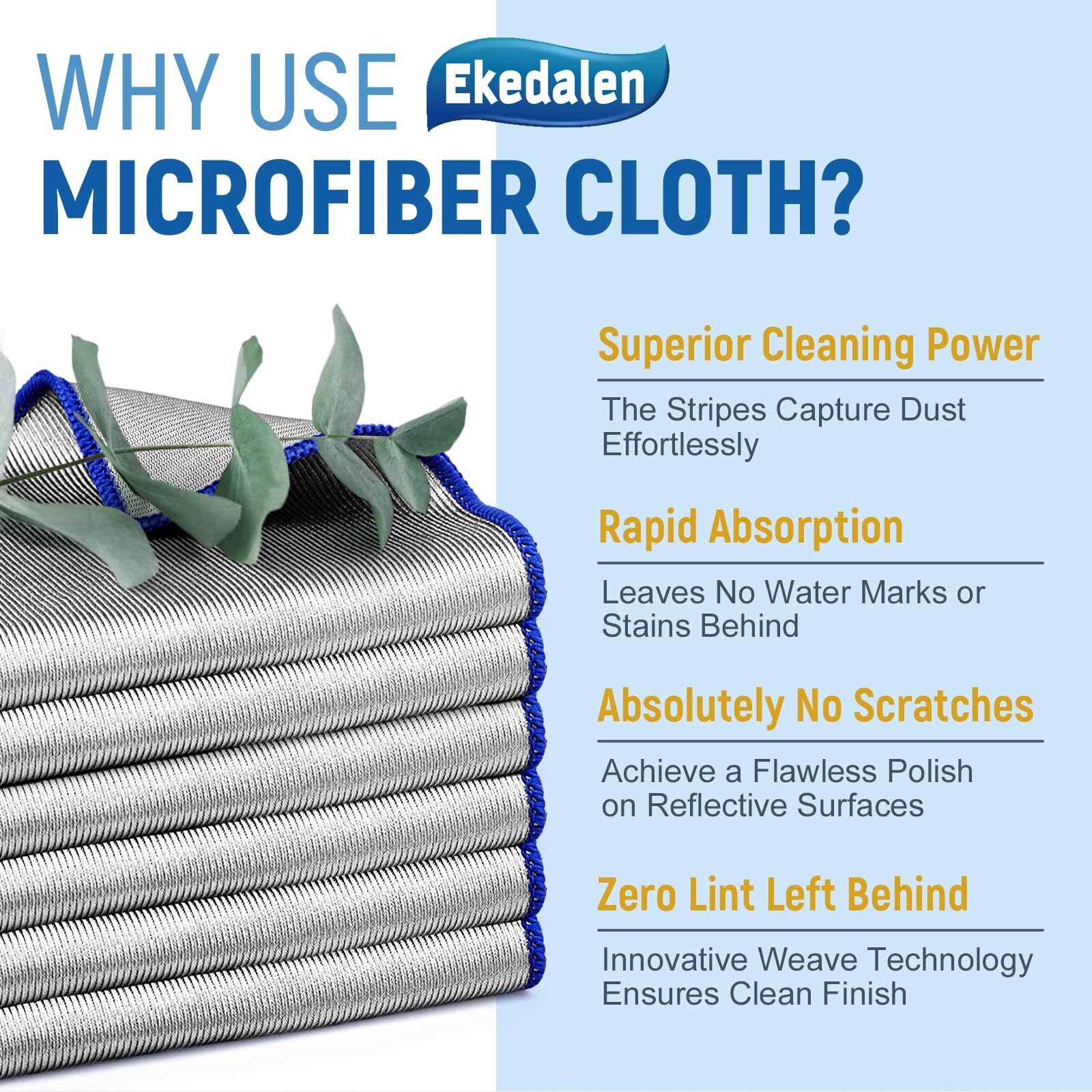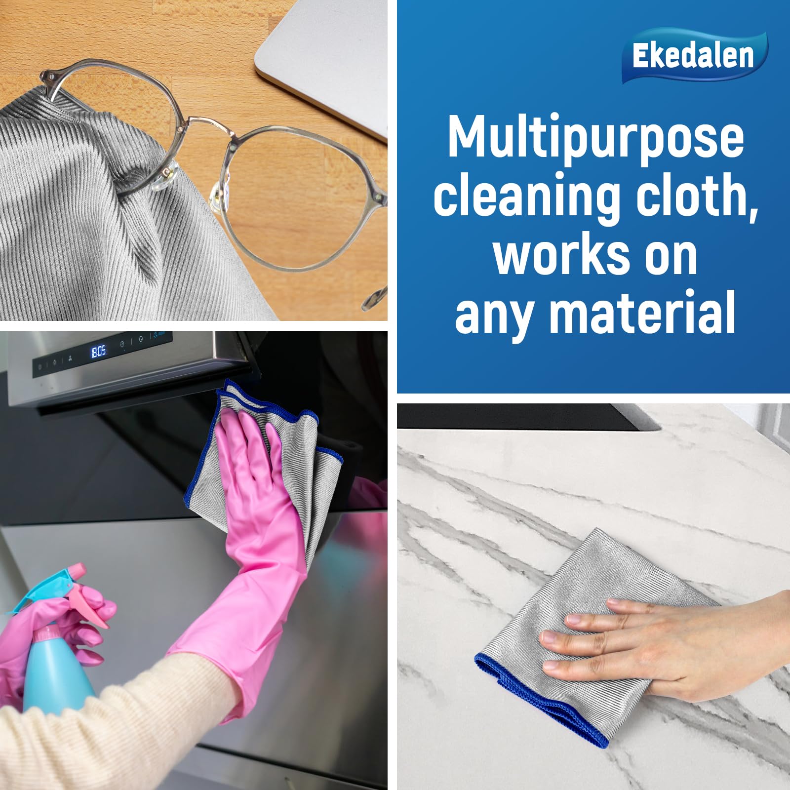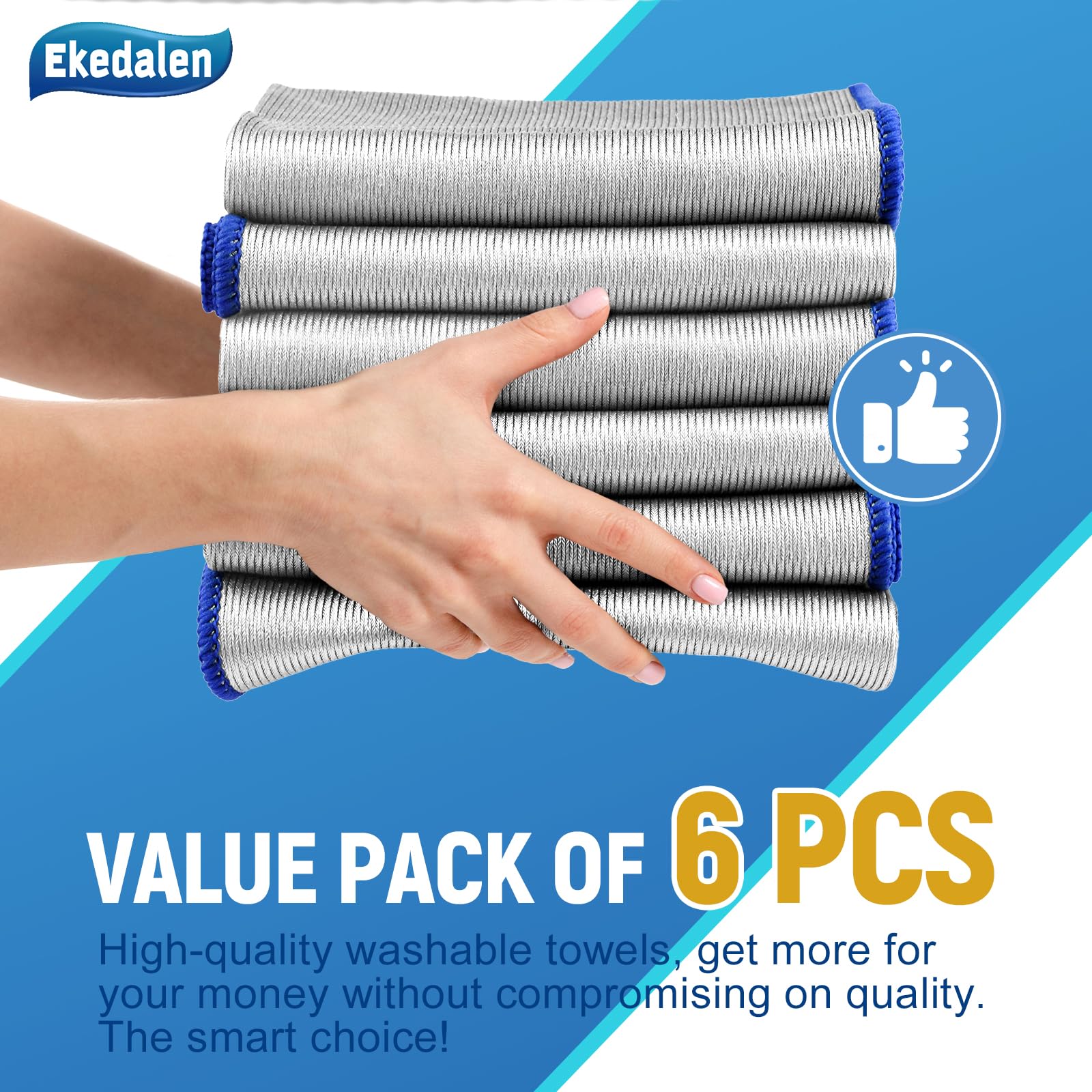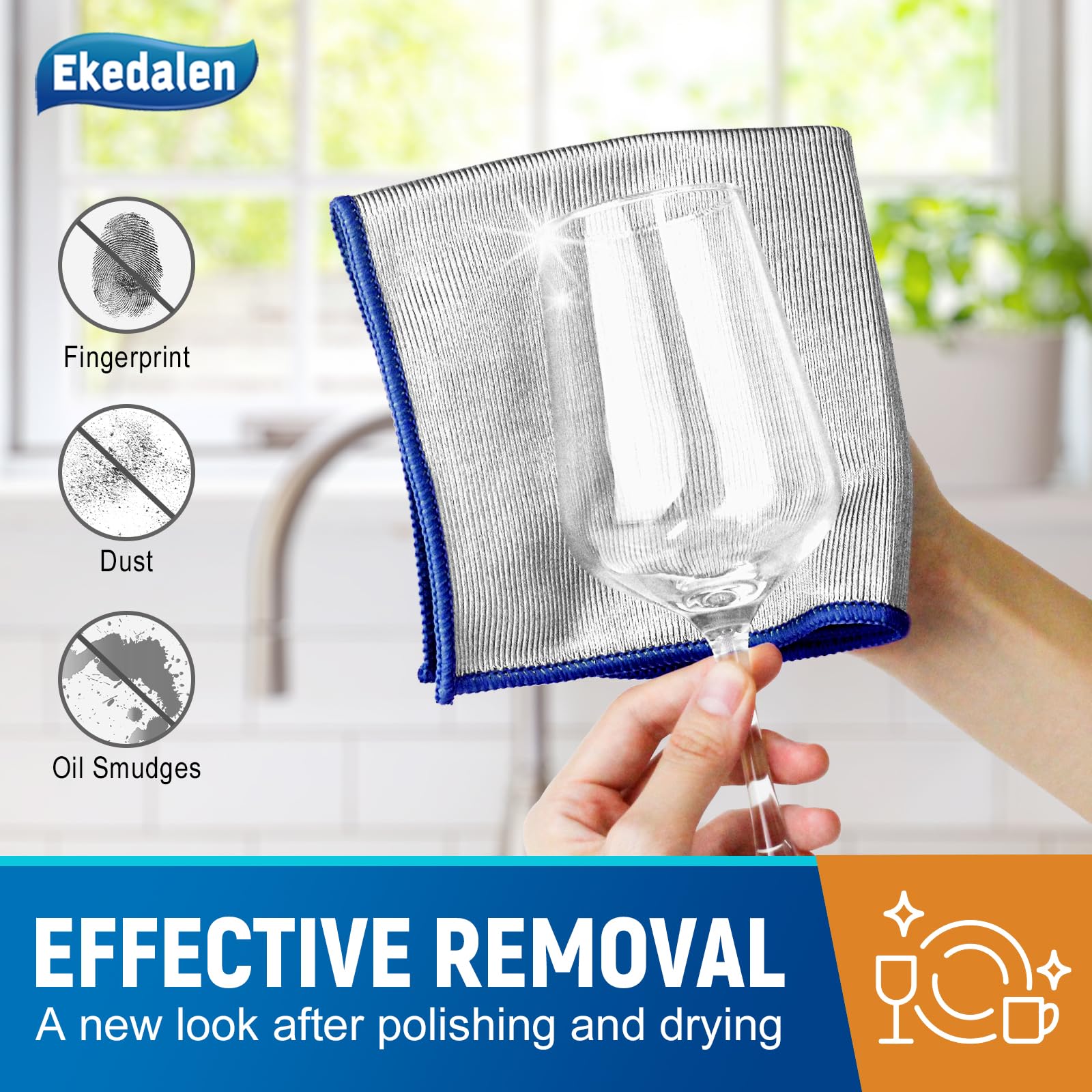 Ekedalen 6X Glastücher Mikrofaser Poliertücher Gläser Gastronomie, Glaspoliertücher Fenstertuch Streifenfrei, Mikrofasertücher Putztücher Reinigungstuch für Auto, Fenster, Spiegel, Bad, 30x30cm, Blau