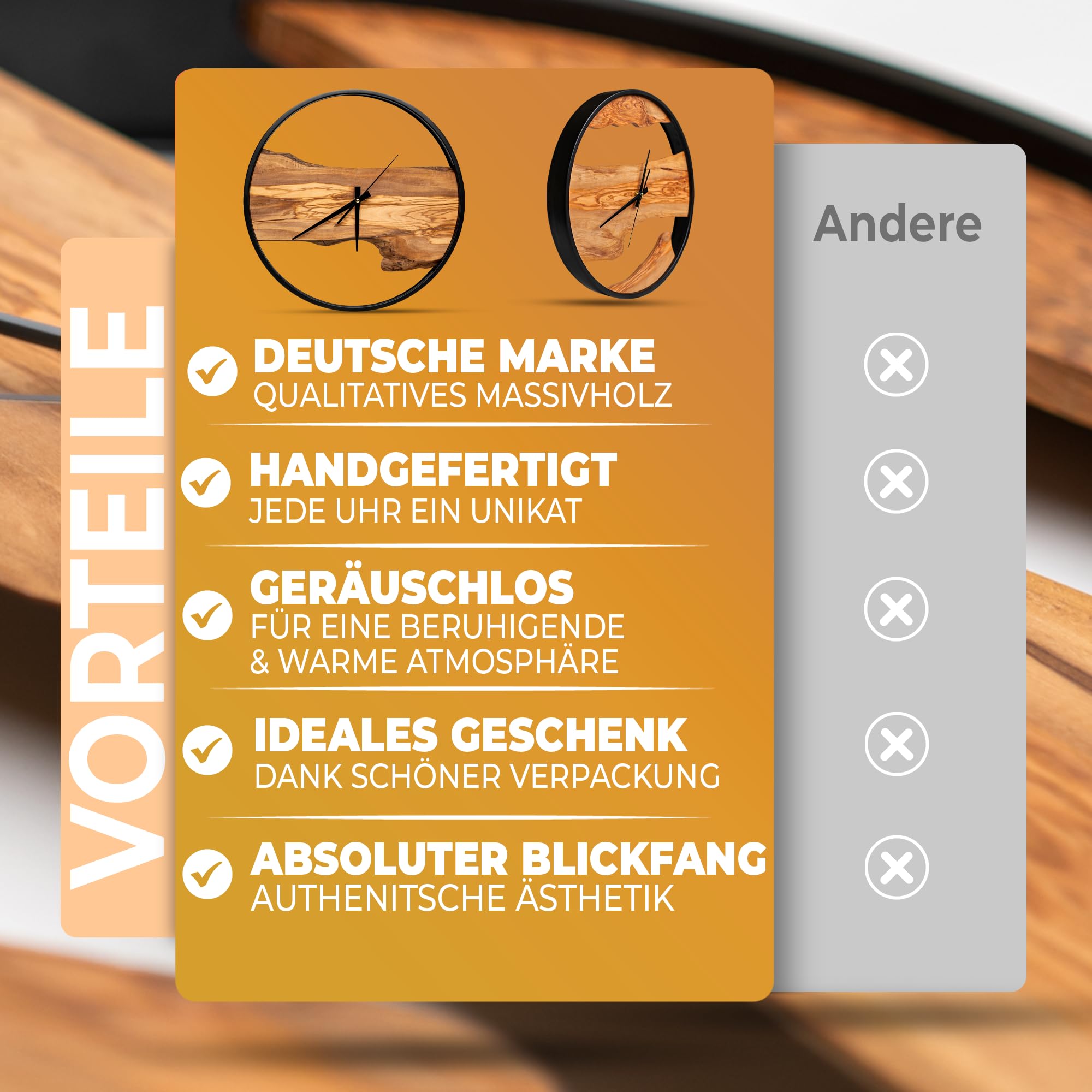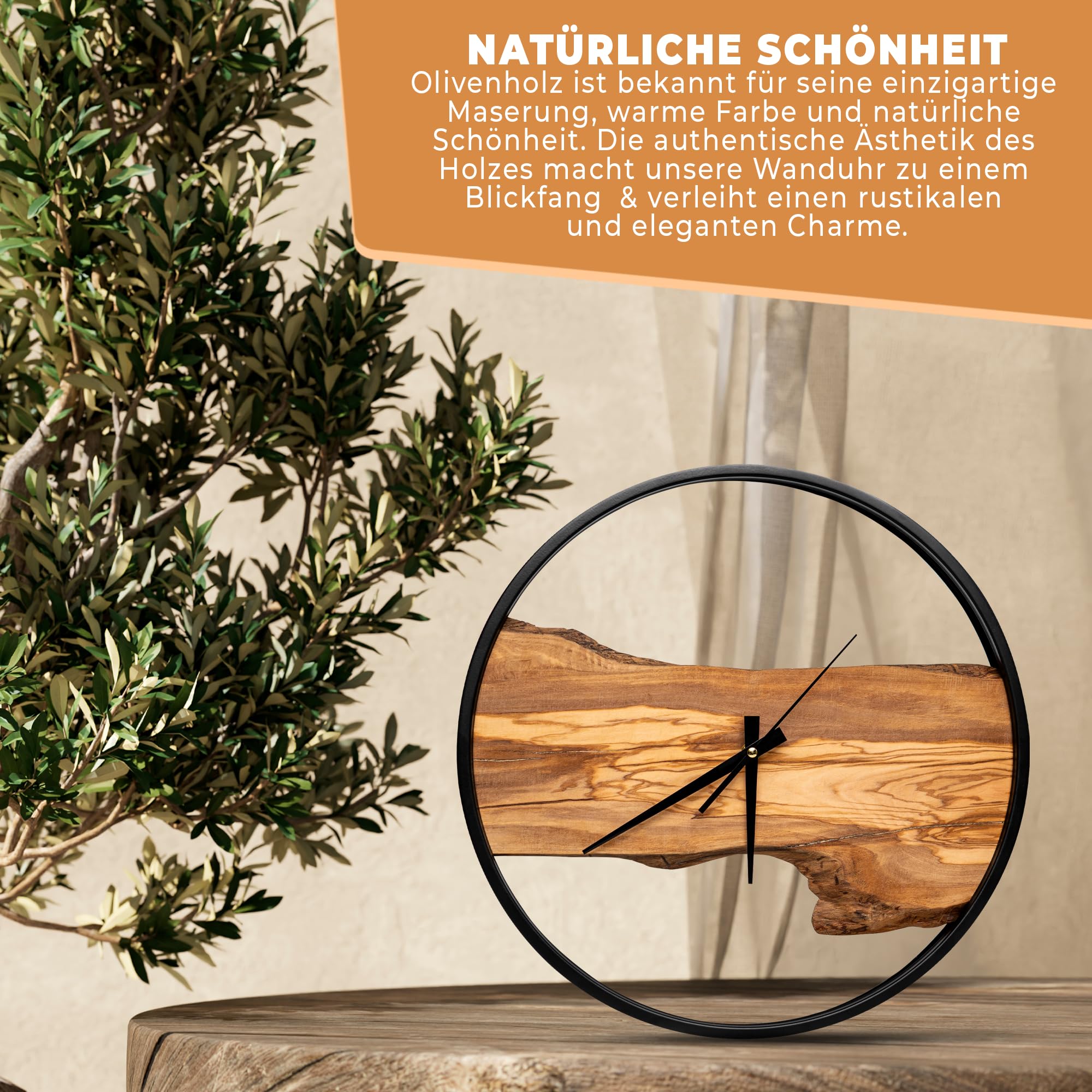 ???? Einzigartige, handgefertigte Wanduhr aus massivem Olivenholz – lautlos & stilvoll Verabschieden Sie sich von langweiligen Standarduhren! Unsere handgefertigte Designer-Wanduhr aus edlem Olivenholz ist nicht nur ein Zeitmesser, sondern ein echtes Kunstwerk für Ihr Zuhause. Jede Uhr ist ein Unikat mit einer einzigartigen Holzmaserung – keine zwei Modelle sind gleich. ????️ 100 % geräuschlos – endlich Ruhe geniessen Kein nerviges Ticken, kein störender Lärm! Dank ihres flüsterleisen Präzisionsuhrwerks läuft diese Wanduhr komplett lautlos. Perfekt für Schlafzimmer, Wohnzimmer, Büro oder Homeoffice – überall dort, wo Ruhe und Stil gefragt sind. ???? Passt in jedes Ambiente – skandinavisch, modern & zeitlos Ob als Wohnzimmer Deko, Küchenuhr oder stilvolles Accessoire im Büro – das natürliche Design aus massivem Olivenholz fügt sich harmonisch in jede Einrichtung ein. Von rustikal bis minimalistisch – diese Uhr setzt ein Statement. ???? Einfache Montage & langlebige Qualität Hängen Sie Ihre neue Lieblingsuhr in nur wenigen Sekunden auf! Die robuste Konstruktion und hochwertigen Materialien garantieren eine lange Lebensdauer, sodass Sie sich jahrelang an diesem Meisterwerk erfreuen können. ???? Perfekte Geschenkidee für besondere Anlässe Auf der Suche nach einem stilvollen Geschenk? Ob Hochzeit, Einzug, Geburtstag oder Weihnachten – mit dieser hochwertigen, handgefertigten Wanduhr aus Olivenholz verschenken Sie etwas ganz Besonderes. ➡️ Jetzt bestellen & zeitlose Eleganz in Ihr Zuhause bringen!