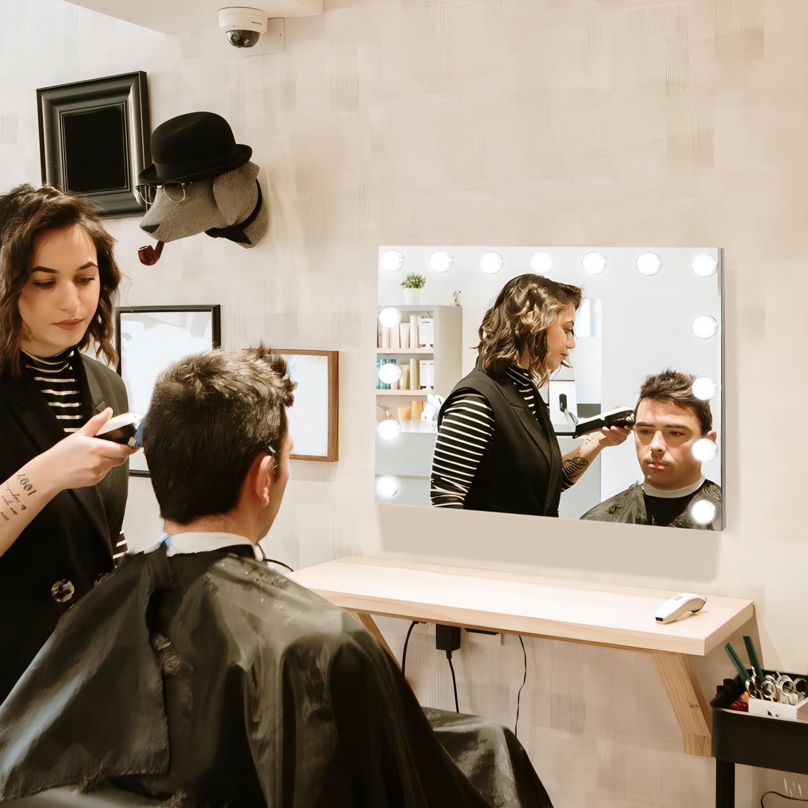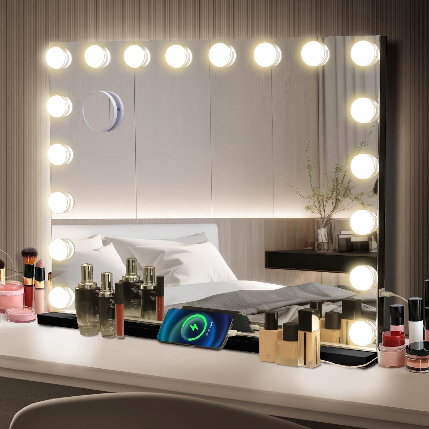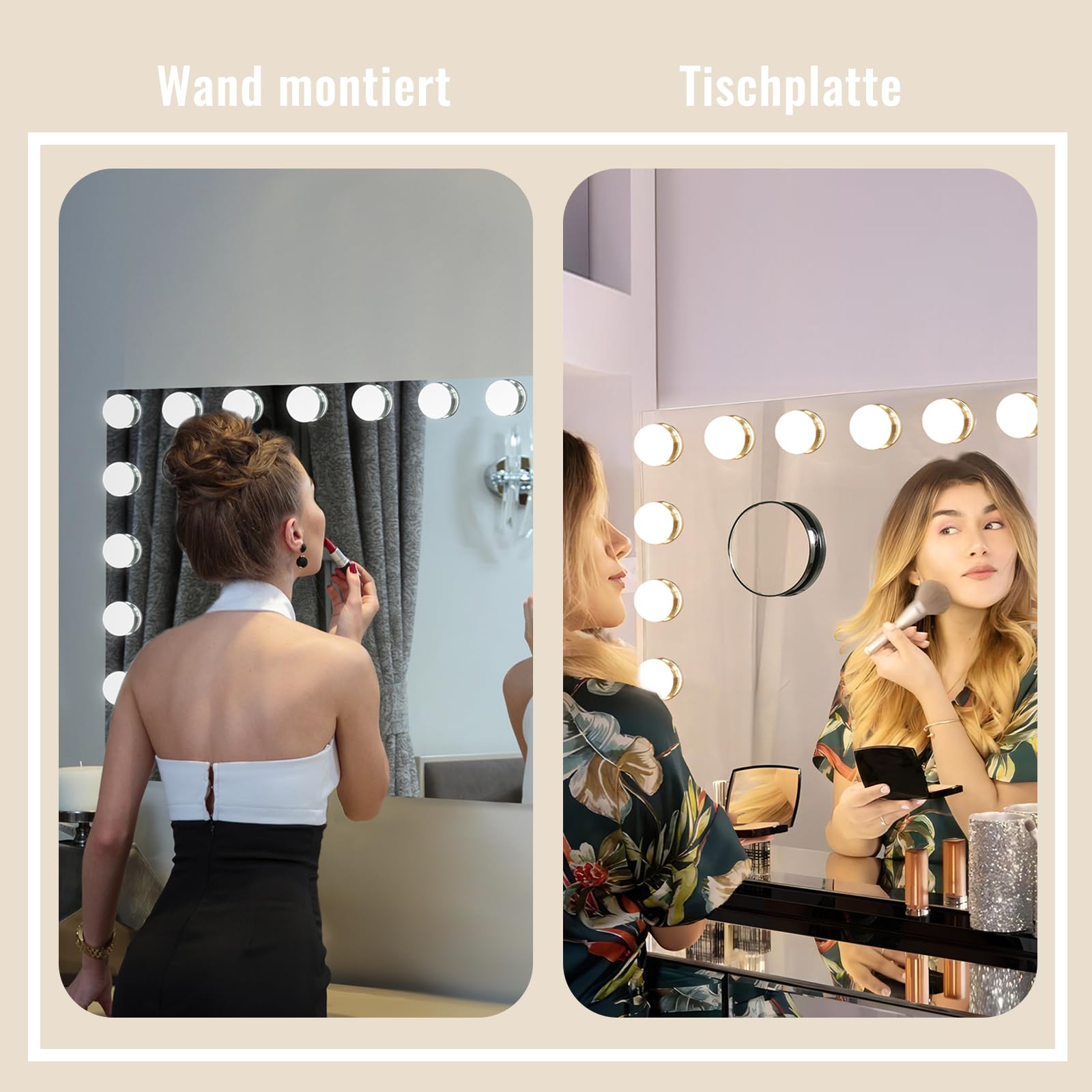 eklipt Schminkspiegel mit Beleuchtung 80x60cm Hollywood Spiegel mit Beleuchtung Kosmetikspiegel 18 LED Licht 3 Lichtfarben mit USB 10X Vergrösserung Touch Control Tischplatte (18LED-Schwarz)