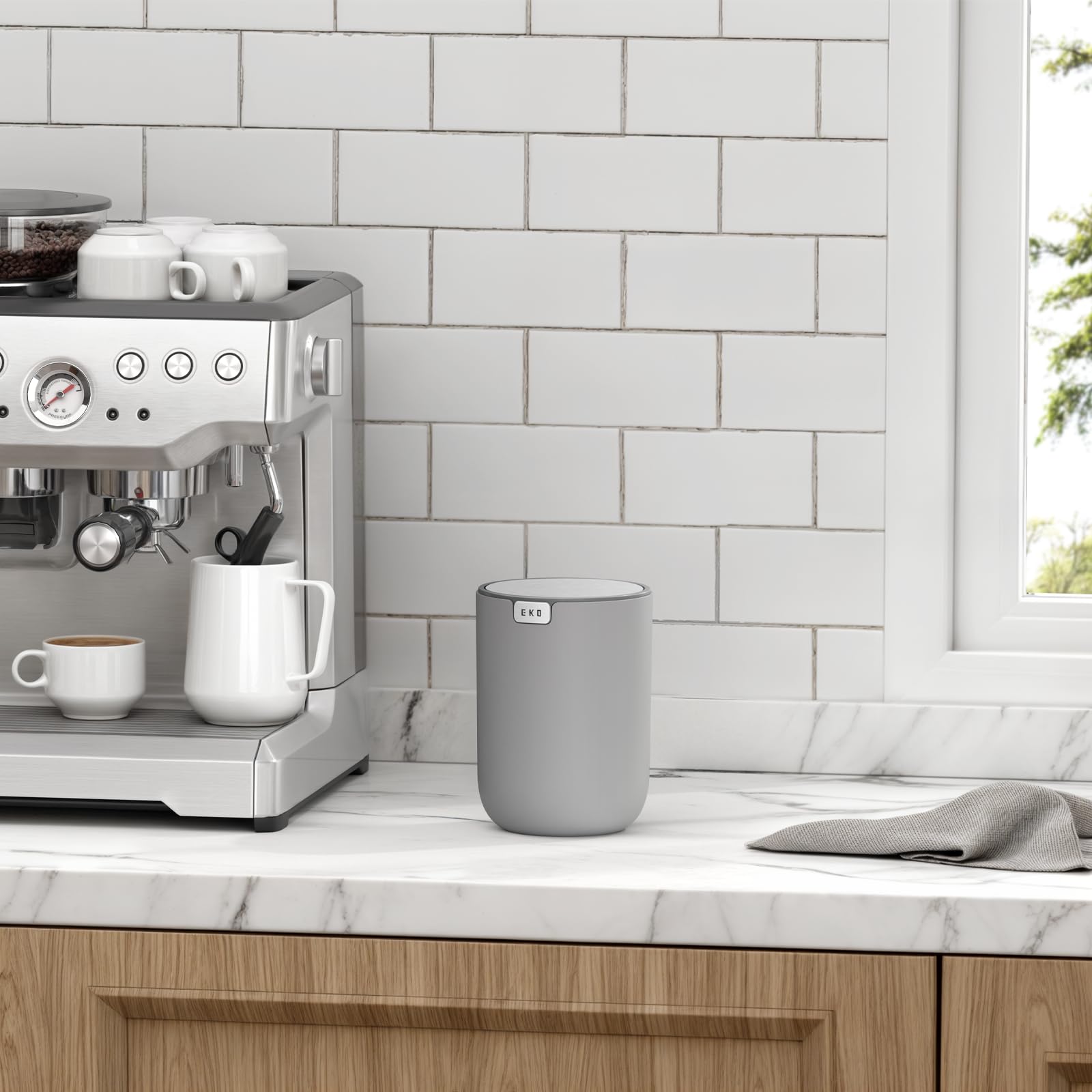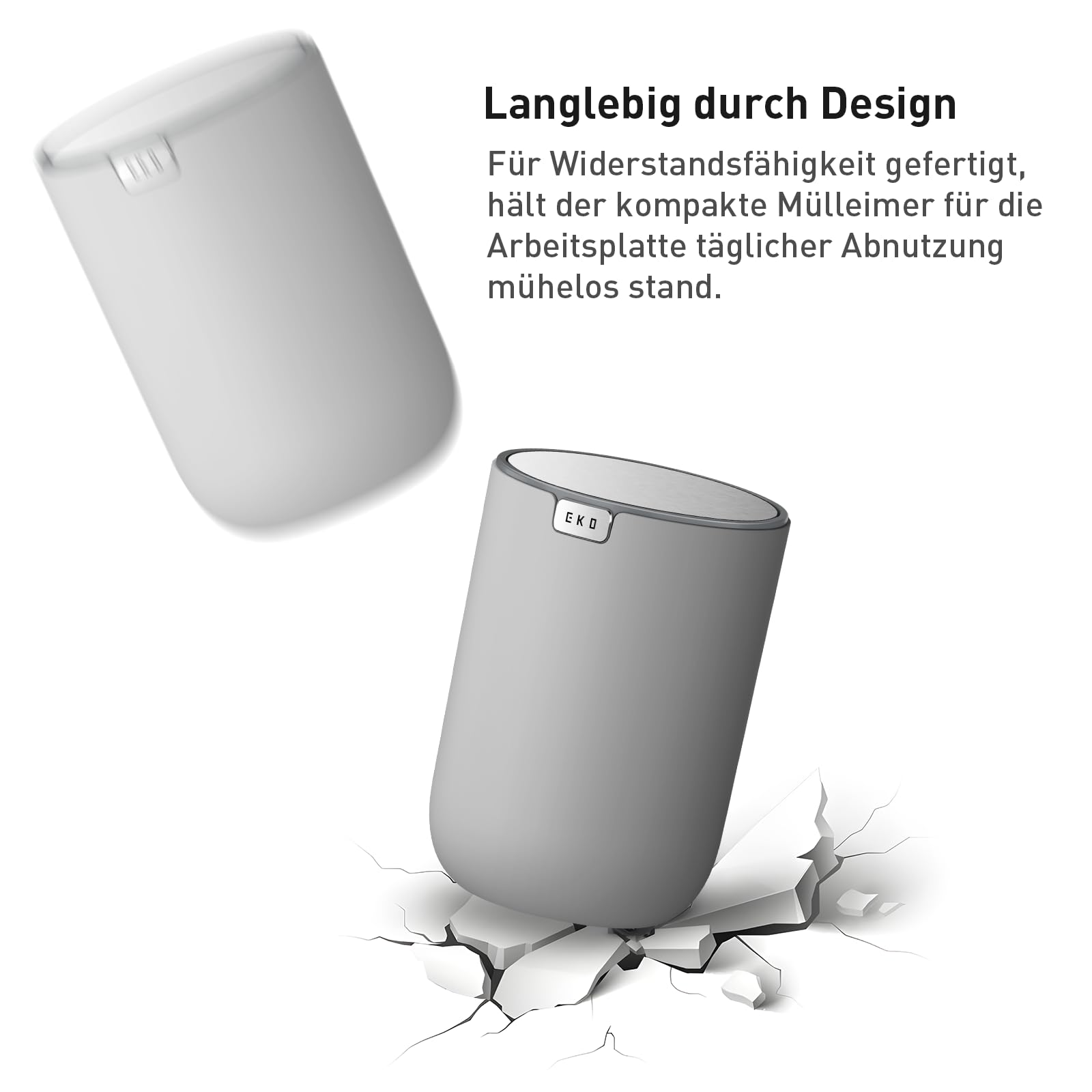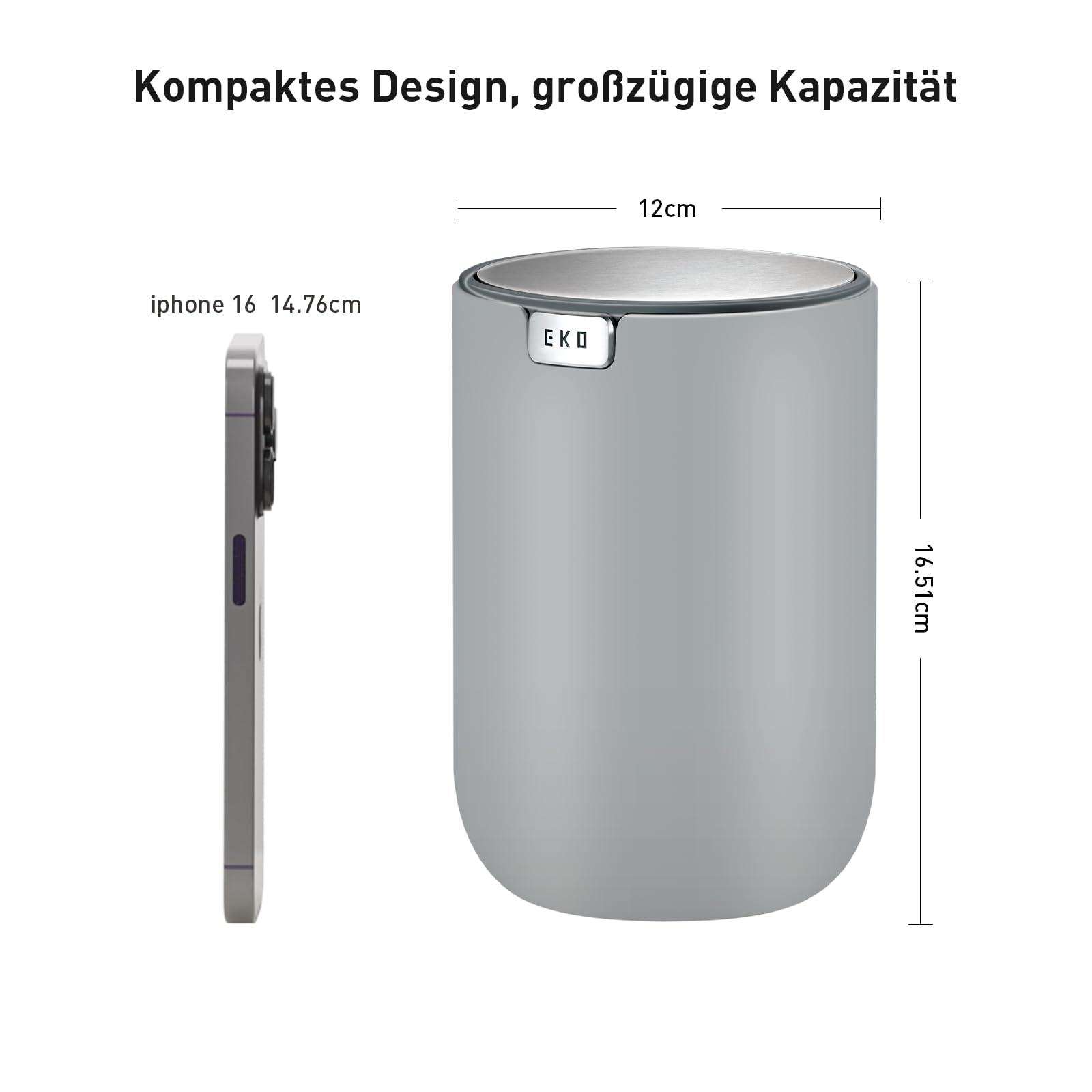 EKO Mini Tischmülleimer mit deckel, 1,5 Liter Kosmetikeimer grau, kleiner Tischabfalleimer für Bad, Schreibtisch, Schlafzimmer oder Auto