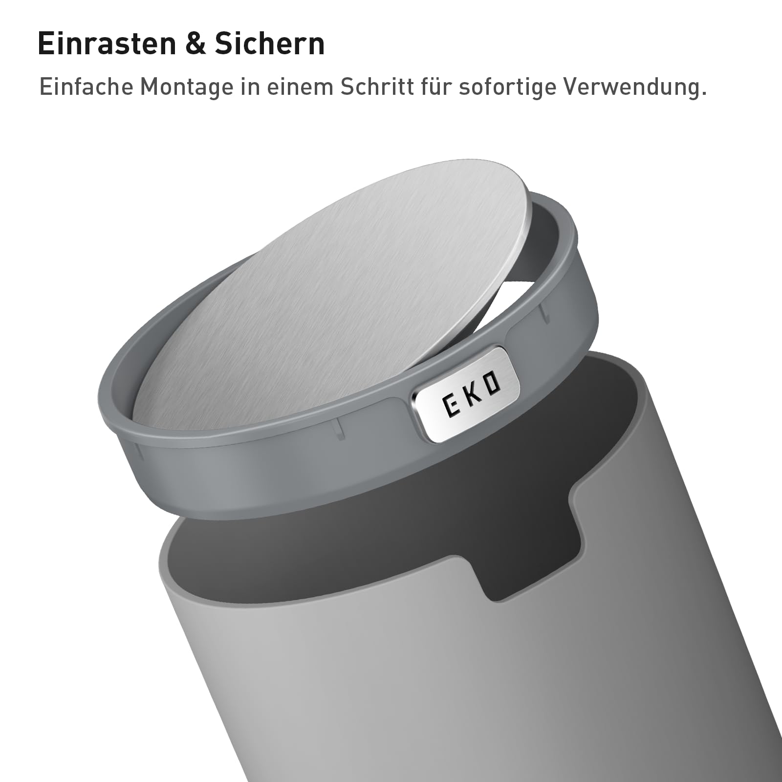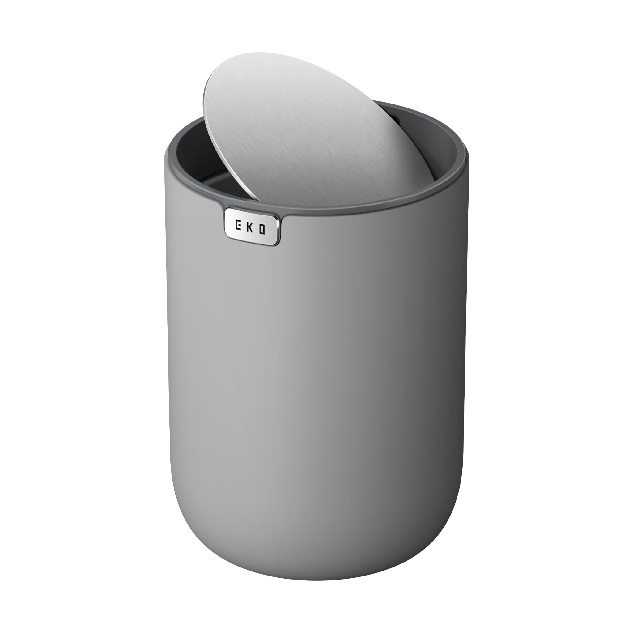 EKO Mini Tischmülleimer mit Schwingdeckel, 1,5 Liter Kosmetikeimer, kleiner Schreibtisch-Mülleimer, runder Tischabfalleimer für Büro, Bad, Schreibtisch, Schlafzimmer (Grau)