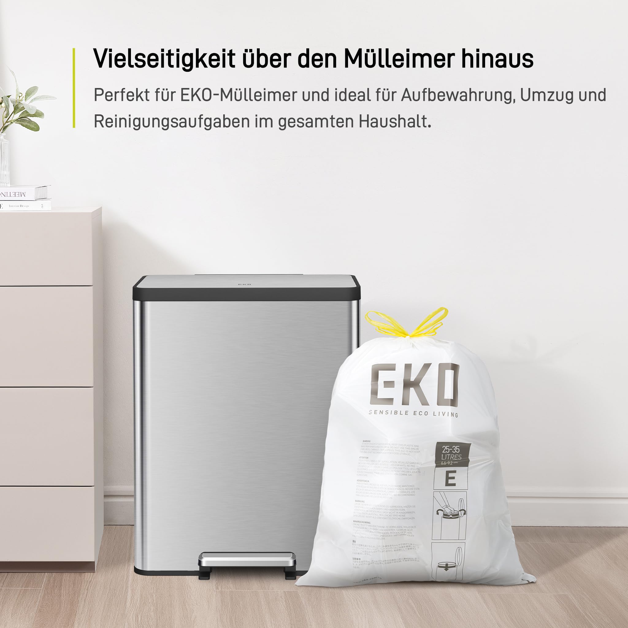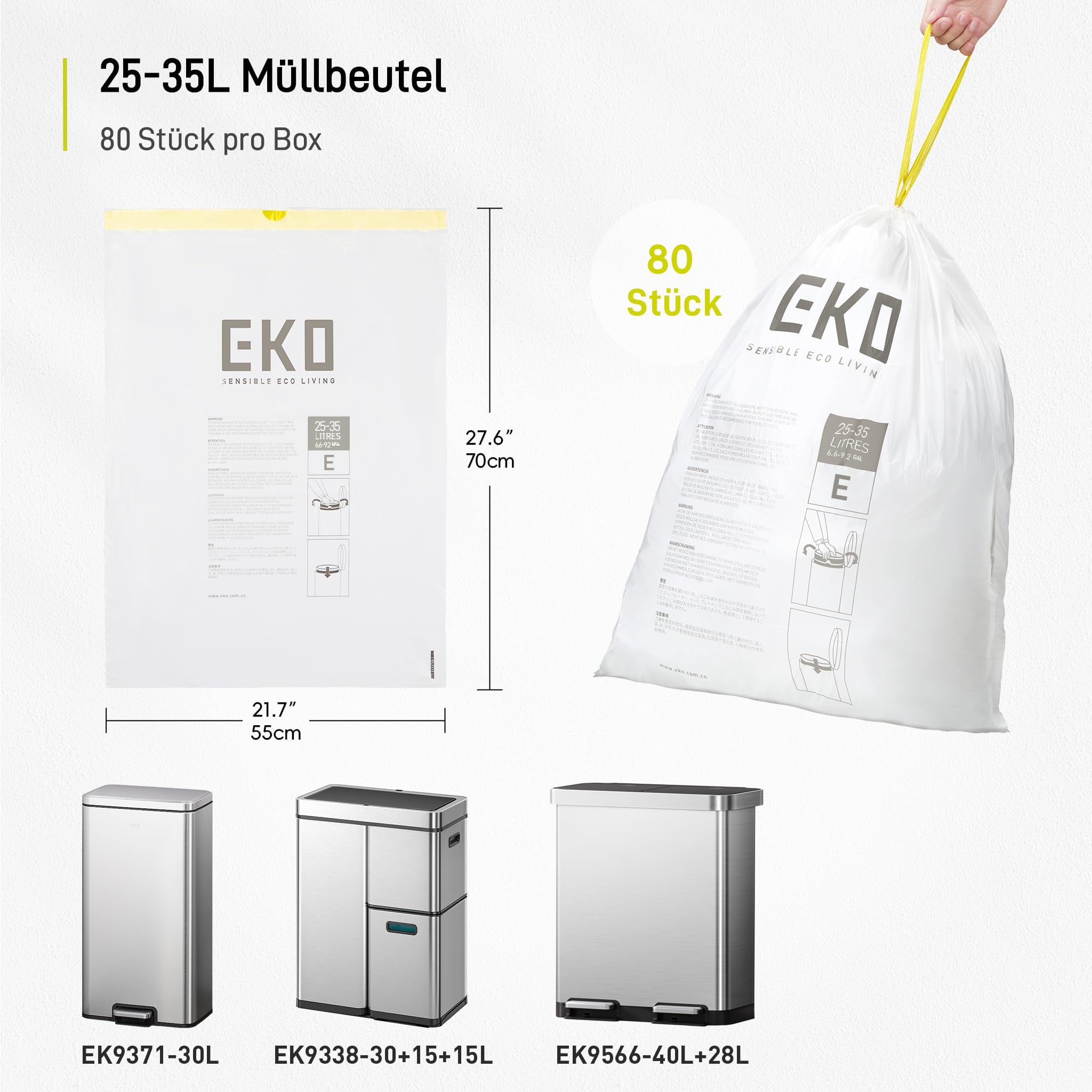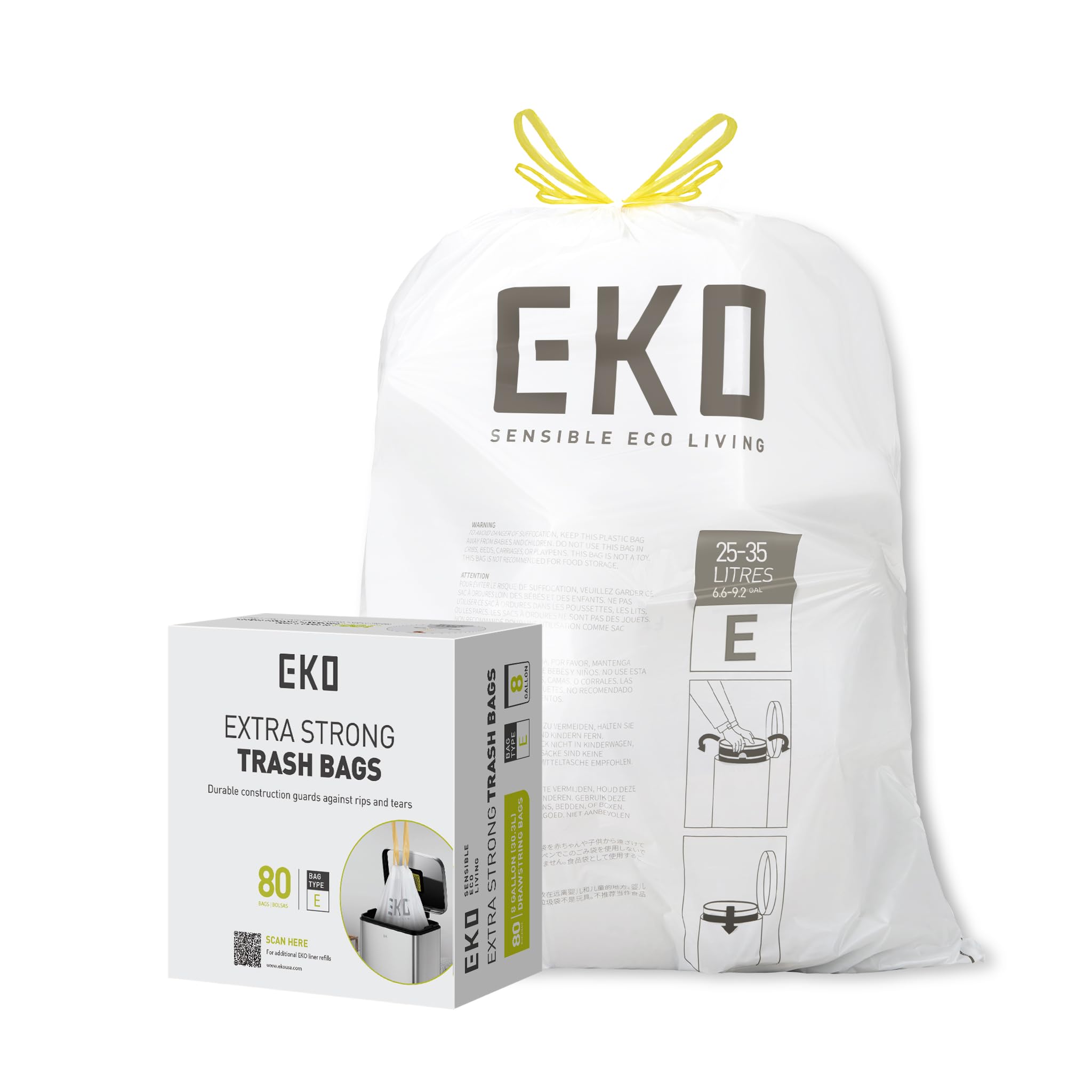 EKO Easy Dispense Müllbeutel für die Küche, extra stark, mit Kordelzug, 80 Stück, 25–35 l, 80 Stück, Weiss, Code E