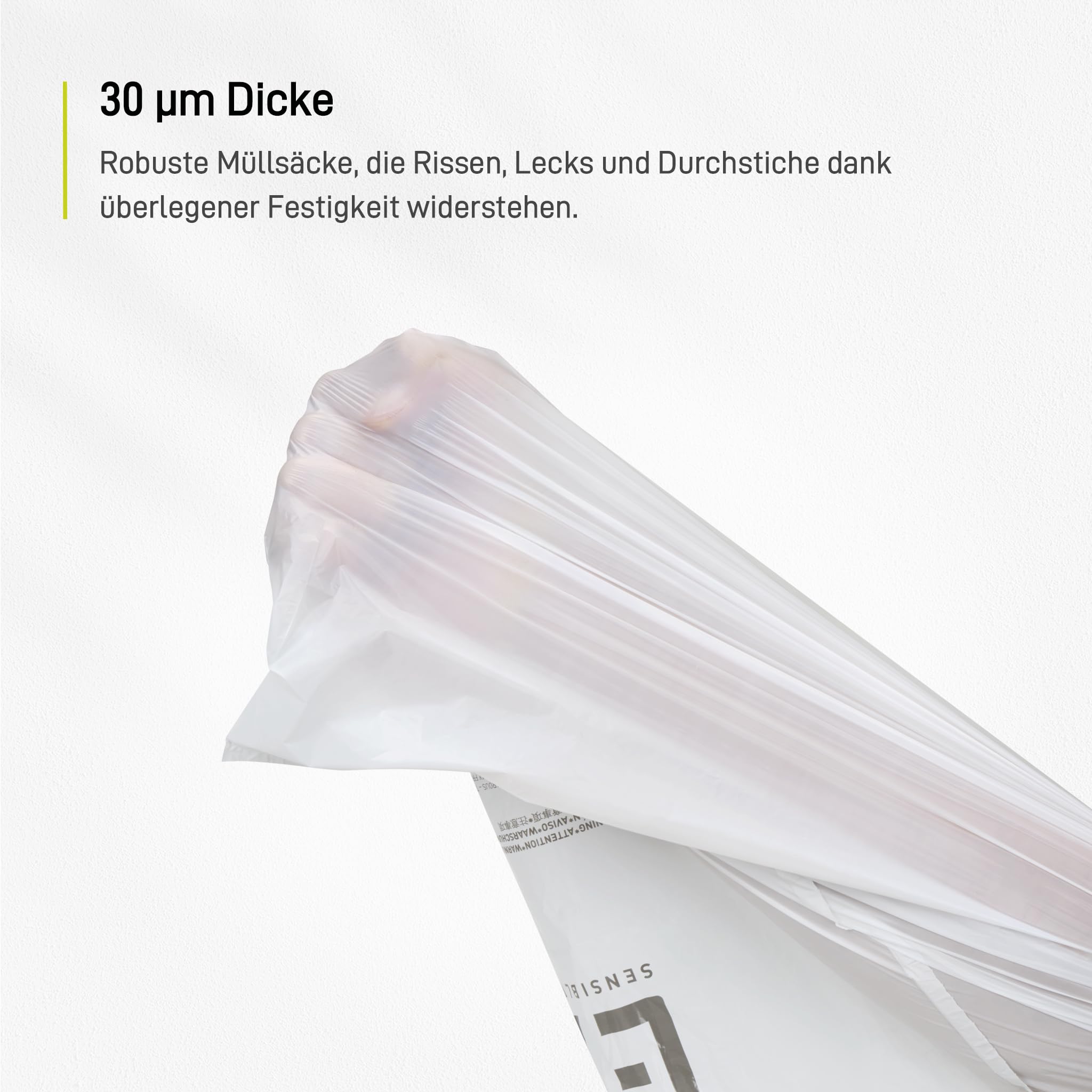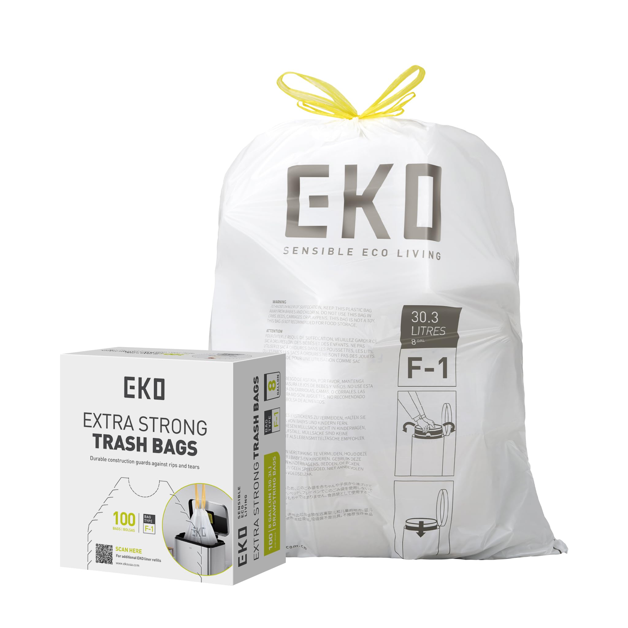 EKO extralange Müllbeutel mit Zugband, 30 Liter Müllsäcke, 100 Beuteln, extra starken, Schnellzugriffsbox, Perfekte Passform für Recycling-Mülleimer, Auslaufsicher, weiss, Grösse F-1