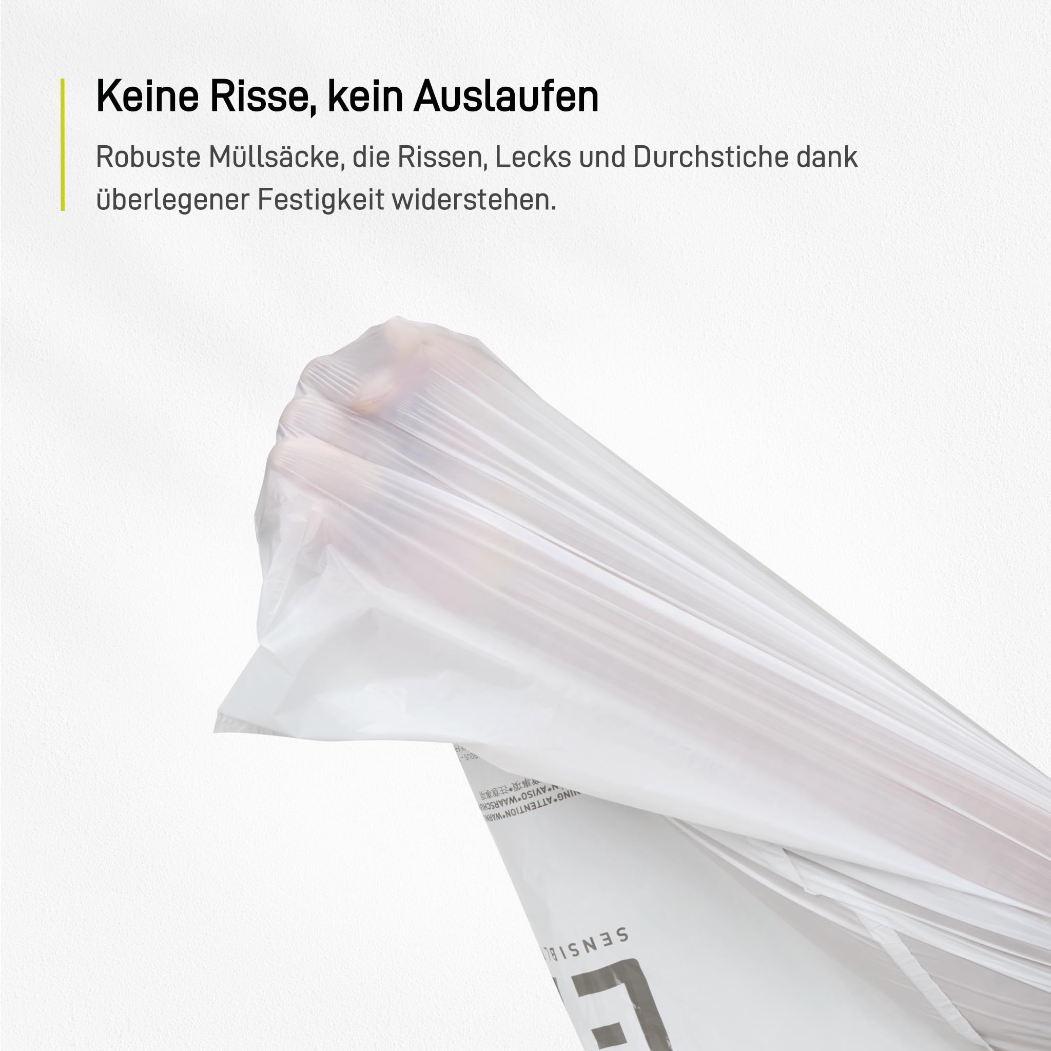 Diese 40L-60L mülltüten sind 25 % haltbarer mit einer äusseren Auslaufschutzschicht und einer inneren Schicht, die sich dehnt, um Risse und Löcher zu verhindern. Der Zugbandverschluss sorgt dafür, dass der Beutel an seinem Platz bleibt. Diese grossen Küchenmüllbeutel mit doppelt genähten Seitennaht und einem verstärkten Boden passen in mittelgrosse Mülleimer und eignen sich ideal für Badezimmer, Schlafzimmer, Büros, Kinderzimmer und Waschräume. Das Zugbanddesign erleichtert das Anheben, Binden und Tragen. Diese Müllbeutel kommen auf einer praktischen 60er-Rollverpackung, sodass keine mühsame Suche nach einem Ersatzbeutel nötig ist. Diese extra starken Abfallsäcken sind speziell für EKO-Mülltonnen konzipiert, eignen sich jedoch auch besonders für andere Mülltonnen mit 40L, 50L und 60L. Verwenden Sie diese praktischen,Tragegriff-Müllbeutel zu Hause für Aufbewahrung, Reinigungszwecke sowie zur Mülltrennung und Organisation.