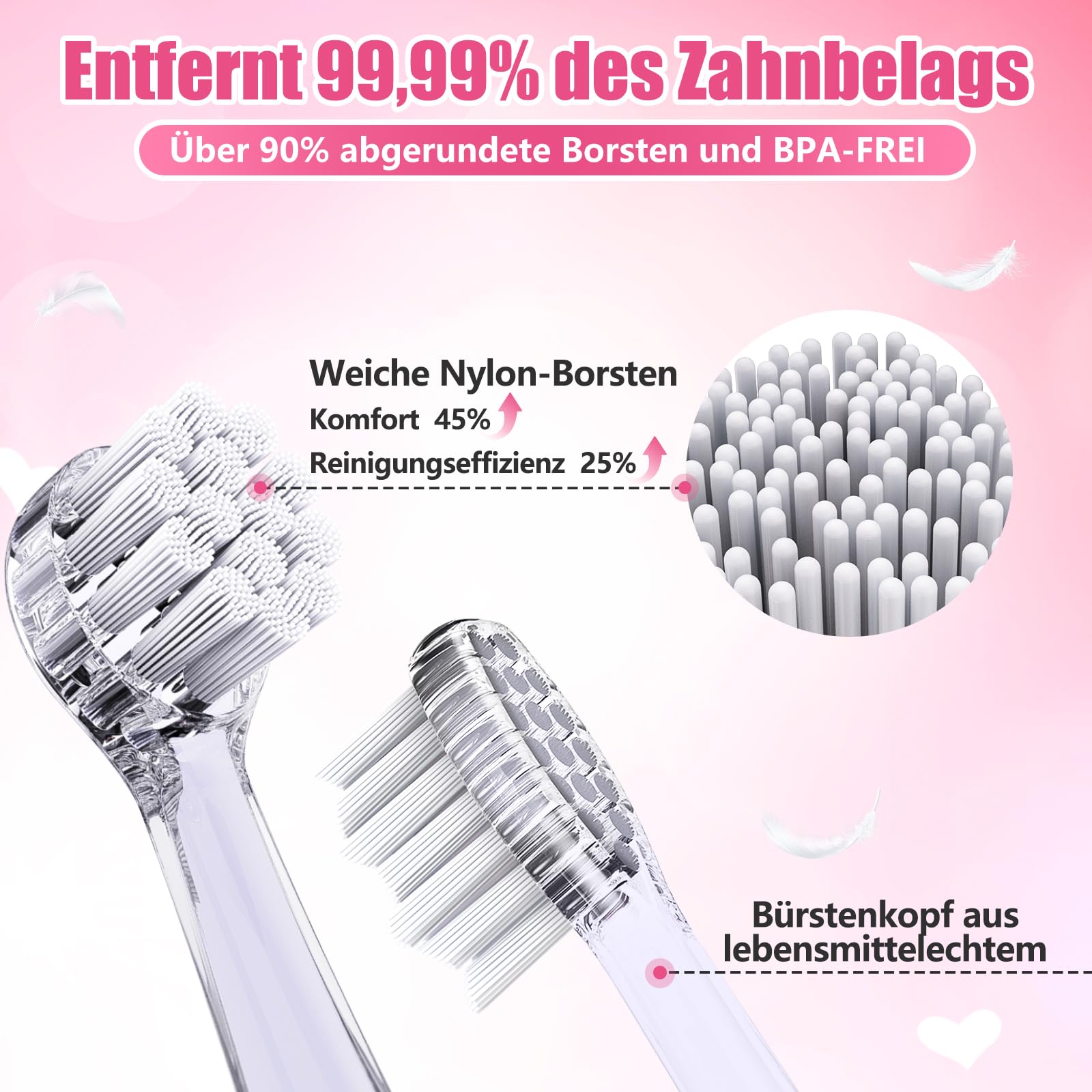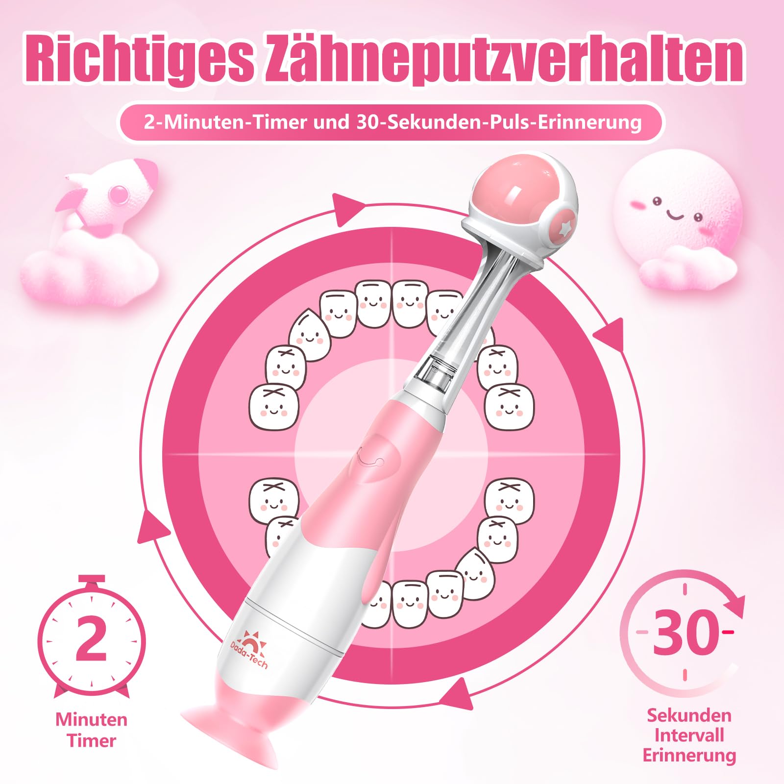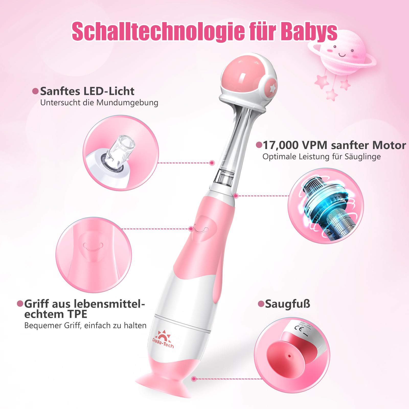 Elektrische Zahnbürste Kinder Baby Zahnbürste Kinderzahnbürste Elektrisch ab 1 2 3 Jahre mit Fingerzahnbürste, Süsse Schutzhülle, LED-Licht, 2 Minuten Timer, Saugnapf für Kleinkind (Rosa Astronauten)