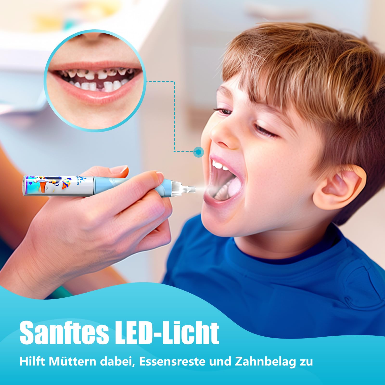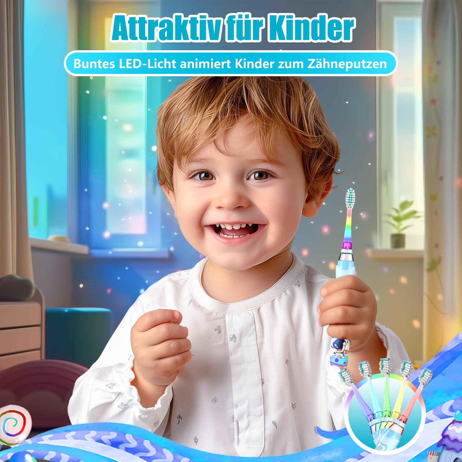 Elektrische Zahnbürste Kinder ab 3-6-8-12 Jahre mit buntem Regenbogen-LED-Licht Integrierter Timer 90% abgerundeten Borsten Schallzahnbürste für Kleinkind (Kind Astronauten Blau)