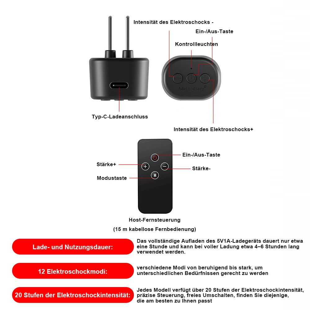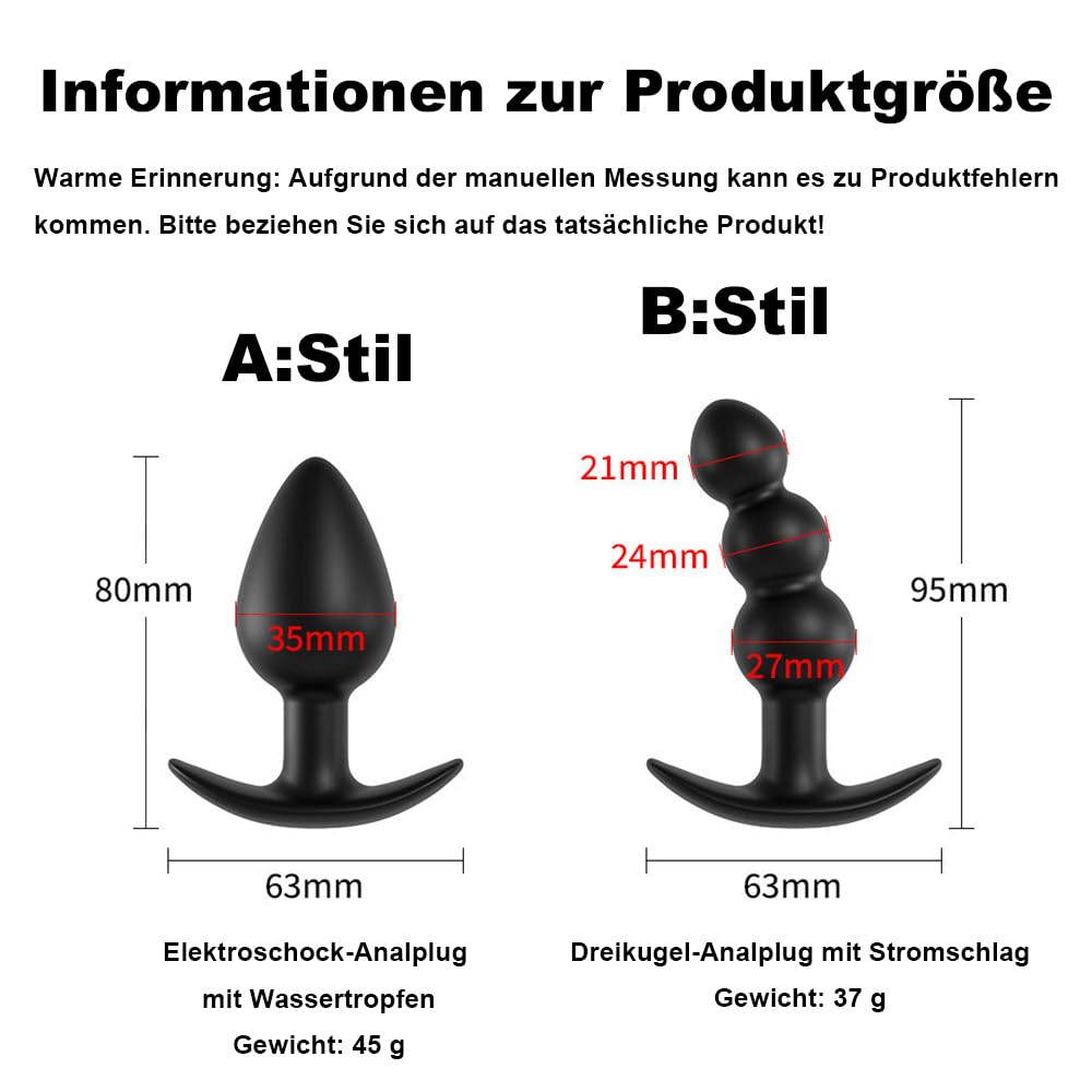 Elektro Schock Silikon Analplug Sex toys Set Prostata Stimulation Extrem Fetisch Butt Plug Mit 12 Schockmodi & 20 Stufen Elektroschockintensität E-stim Anal Dilatoren Sexspielzeug Männer Frauen (B)