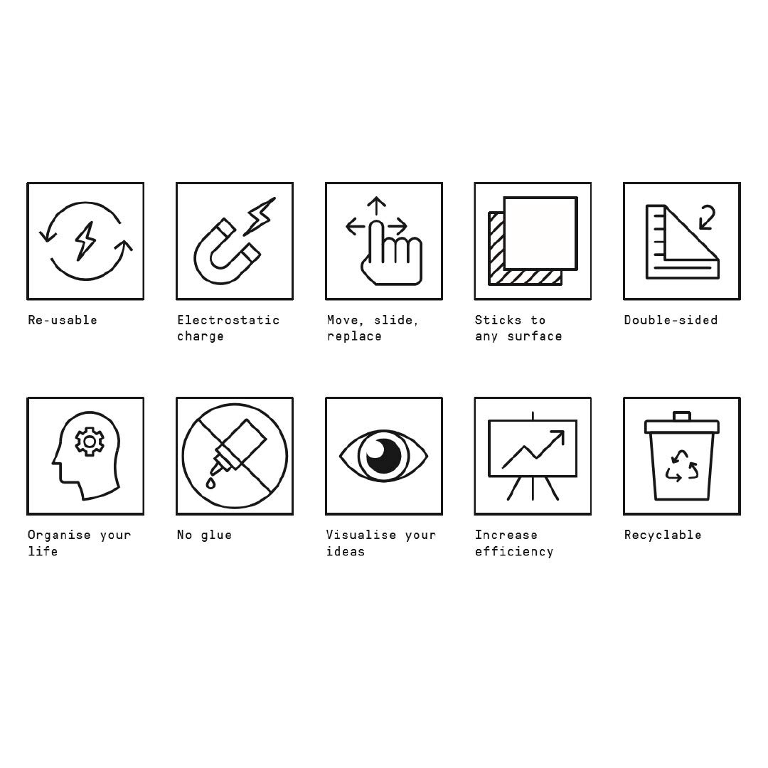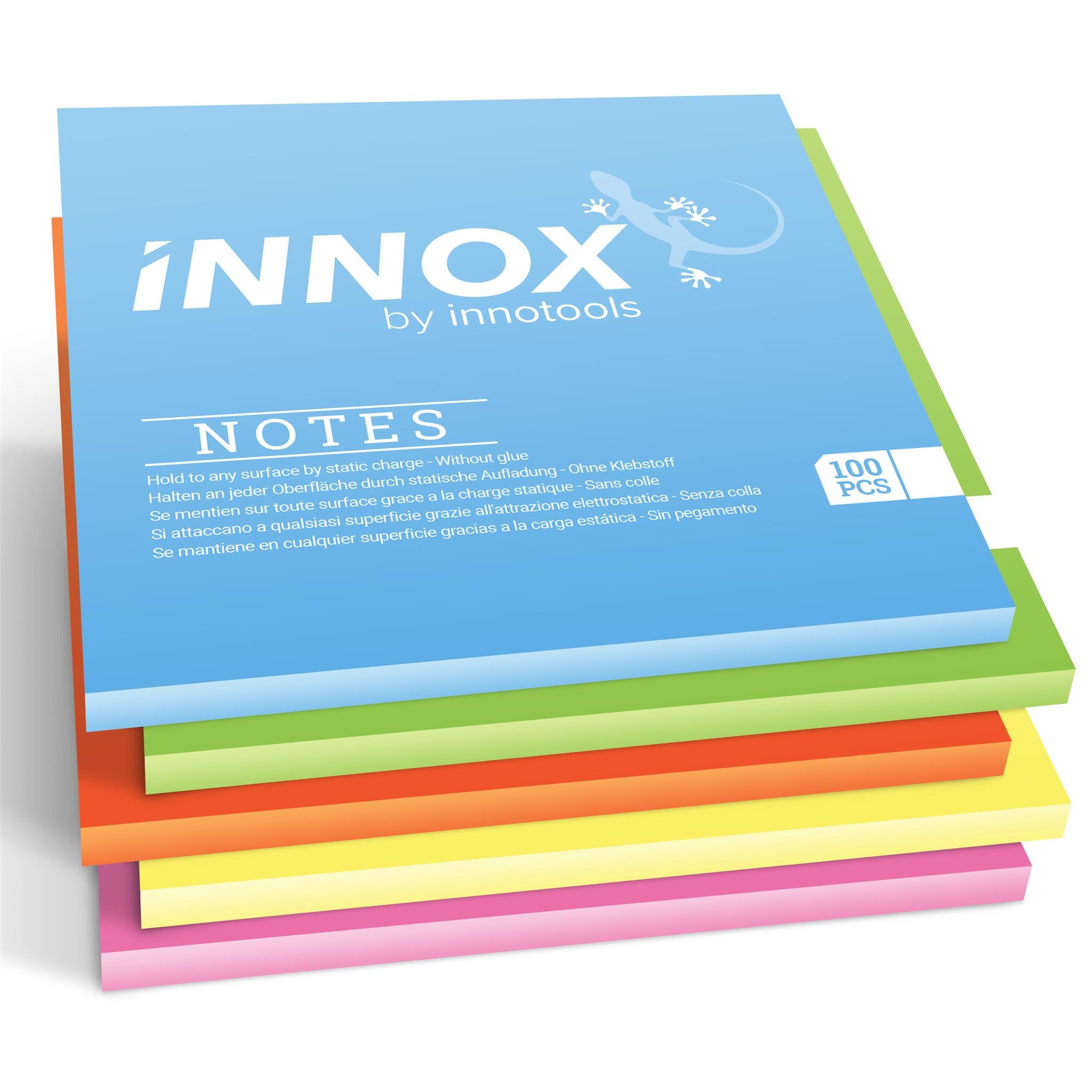 Elektrostatisch selbstklebende Haftnotiz | Für alle Oberflächen - Innovative Sticky Magnetic Notes ohne Klebstoff von INNOX® | Ideen visualisieren | Bunt, 10x10cm, 500 Blatt
