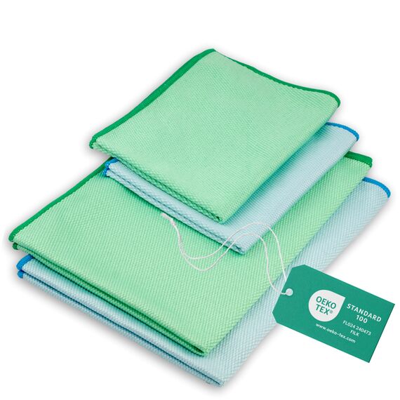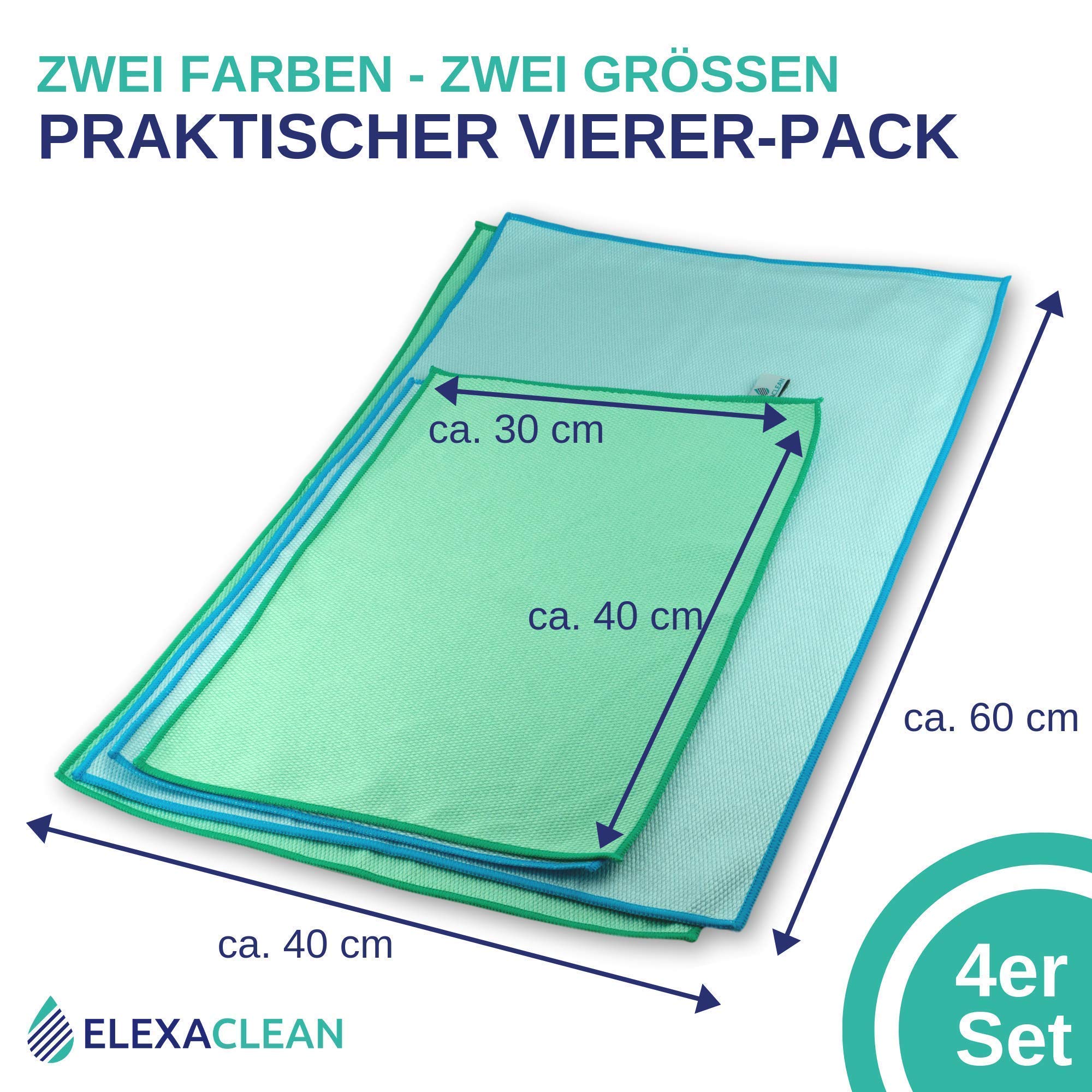 ELEXACLEAN Fenstertuch streifenfrei, Mikrofaser Scheibentuch (4 Stück, 60x40 cm & 40x30 cm) Oeko-TEX® Standard 100 - Glas Putztücher