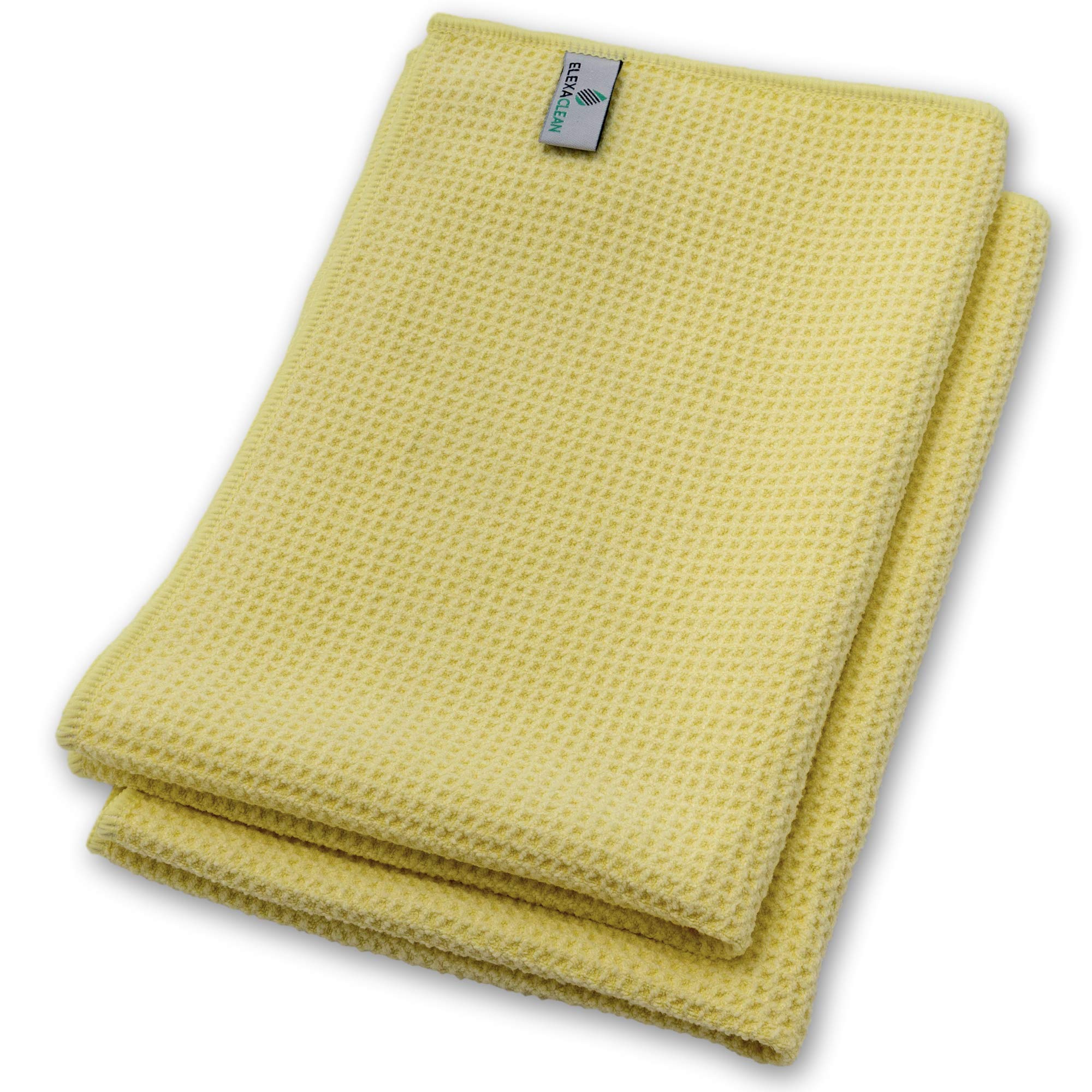 ELEXACLEAN Mikrofaser Trockentuch, Premium Waffeltuch (2 Stück, 60x40 cm, Gelb) superweiche Qualität für Auto, Glas, Küche, Geschirr, Bad