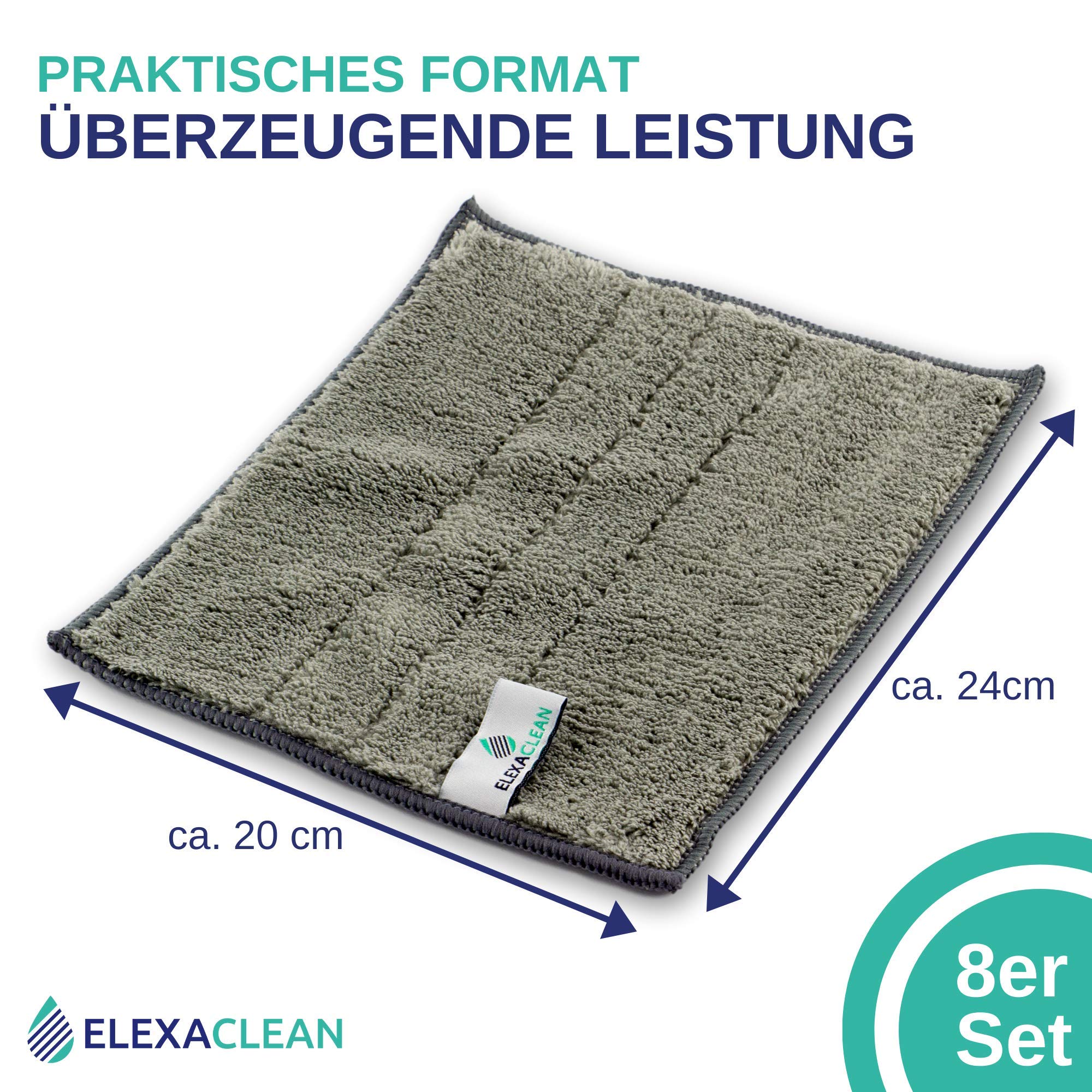 ELEXACLEAN Spültücher waschbar - Mikrofaser (Grau, 8er Set, 24x20cm) Spüllappen für Küche, Geschirr