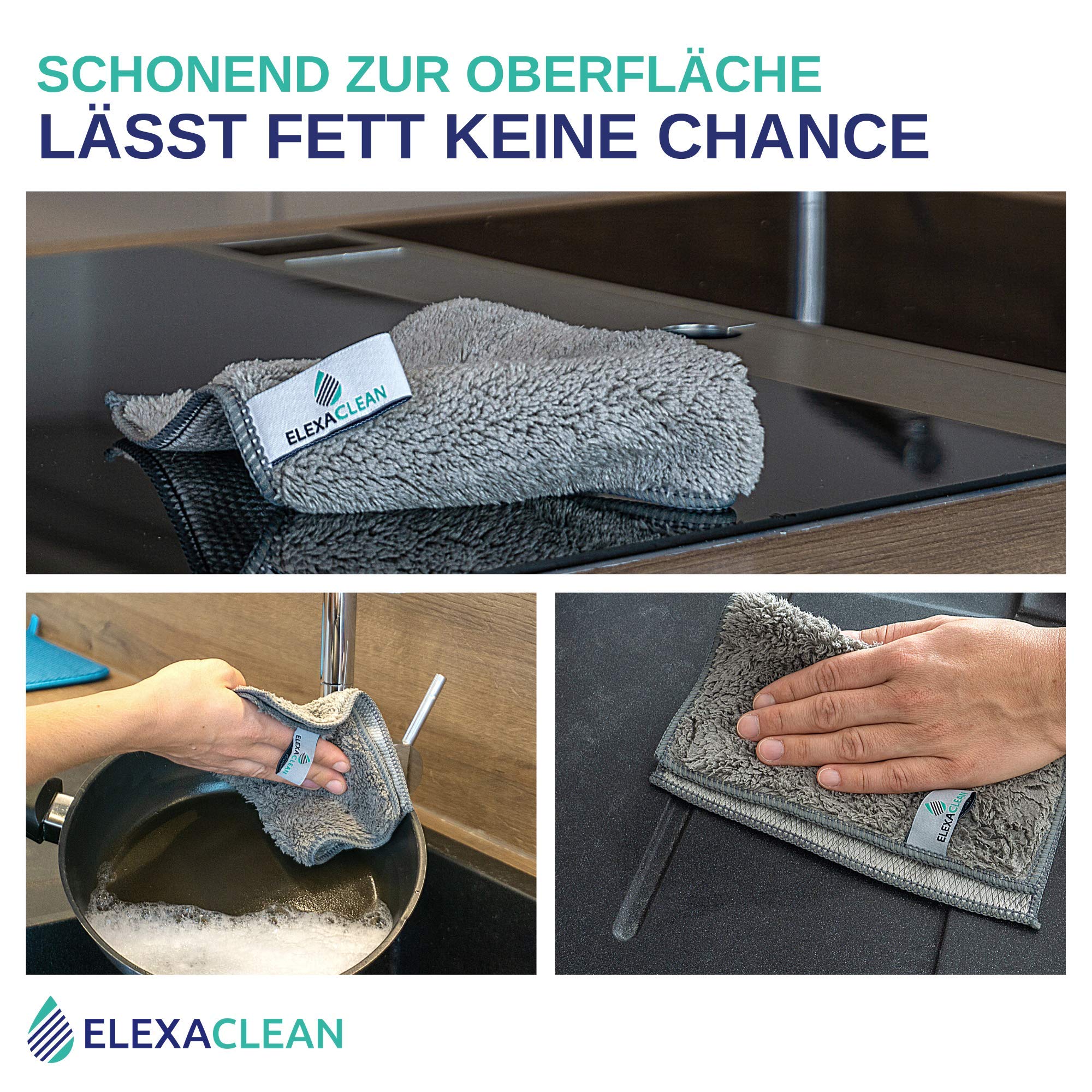 ELEXACLEAN Spültücher waschbar - Mikrofaser (Grau, 4er Set, 24x20cm) Spüllappen für Küche, Geschirr