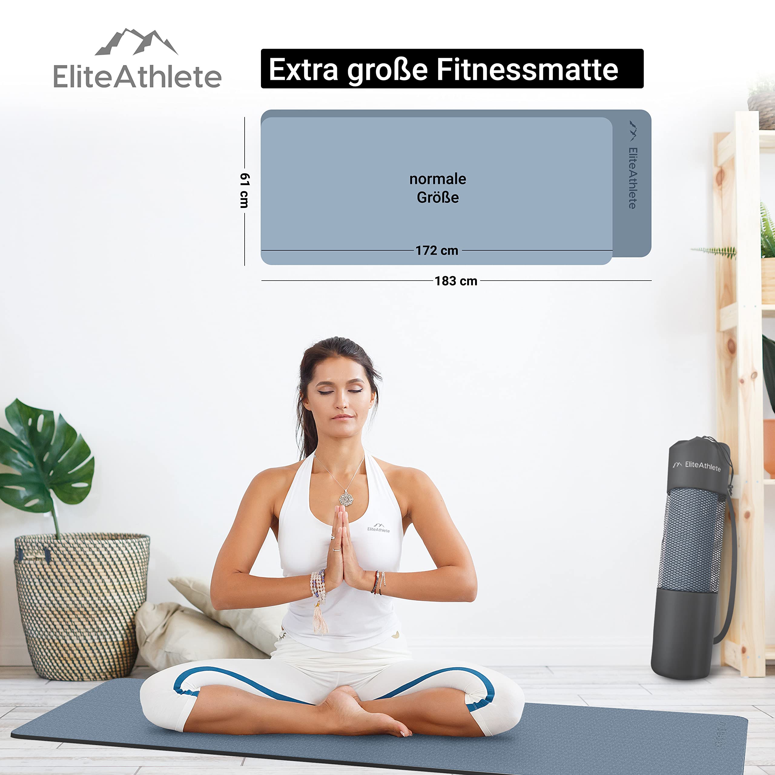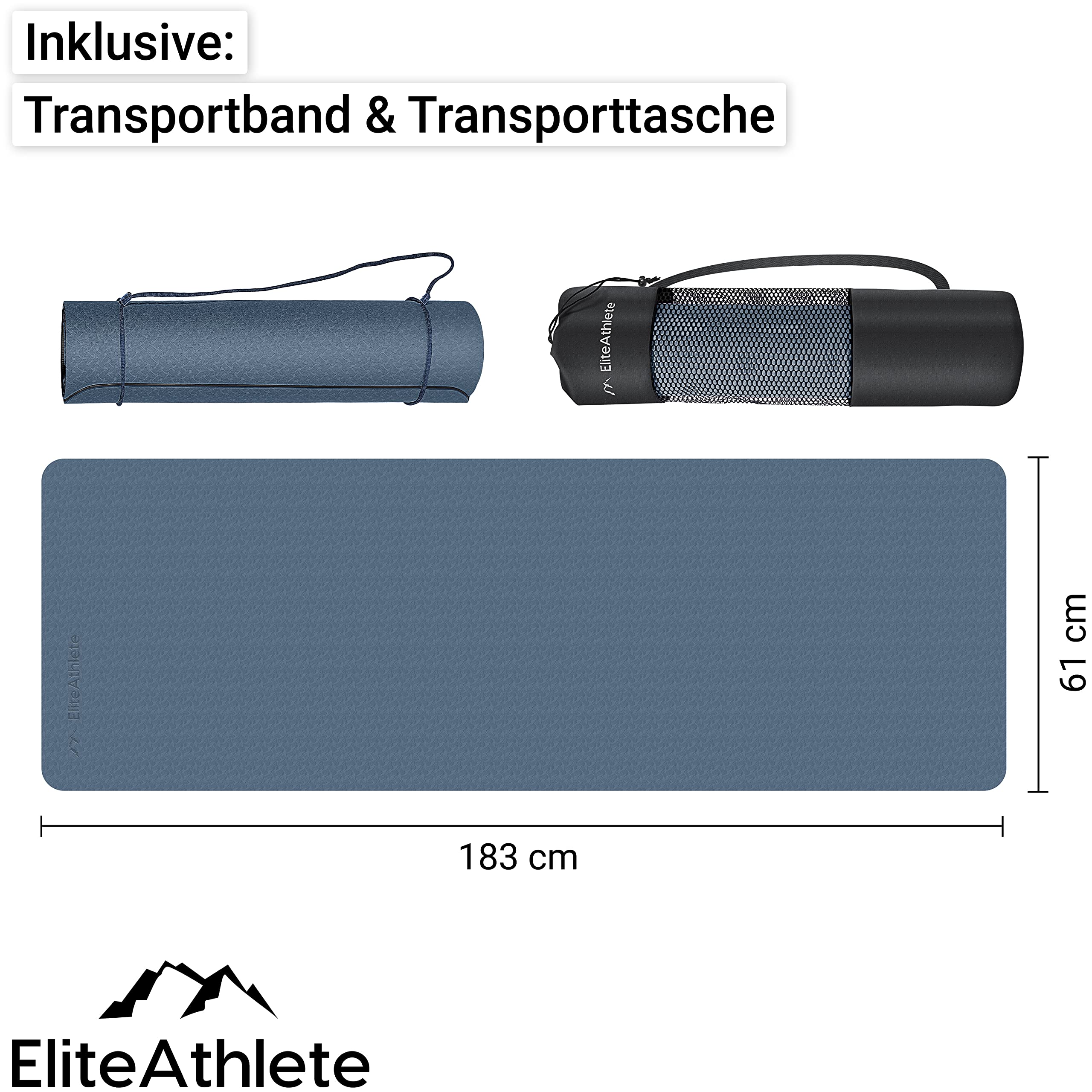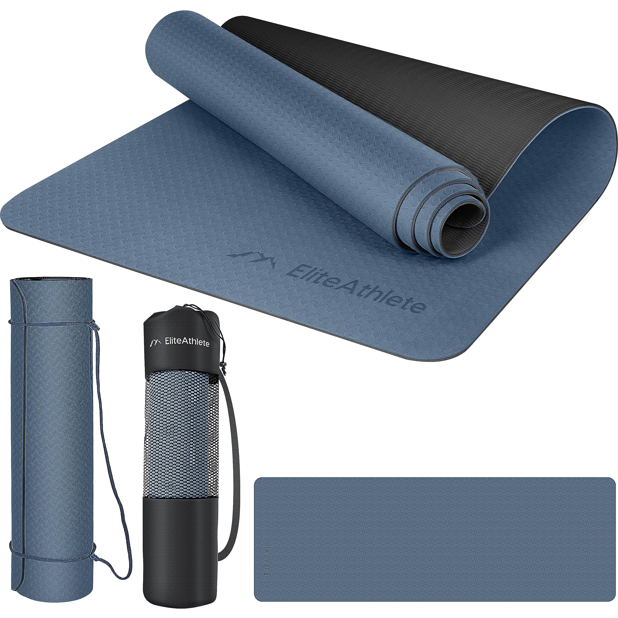 EliteAthlete Yogamatte - Sportmatte - Fitnessmatte - Gymnastikmatte gepolstert & rutschfest für Fitness, Pilates - Yoga Matte - 183 cm x 61 cm x 0.6 cm - Trainingsmatte inkl. Transportgurt + Tasche