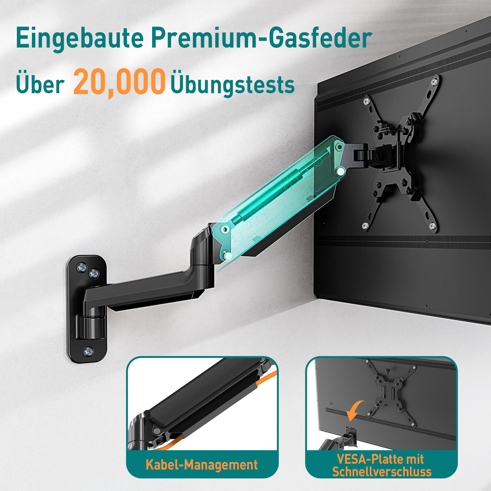 ELIVED Monitor Wandhalterung für Max. 35" Bildschirme bis zu 12kg, VESA 75/100/200mm, Gasdruckfeder PC Monitor Hatlerung Wand, Höhenverstellbar Monitorhalterung, Ultrawide Premium-Monitorarm EV6023