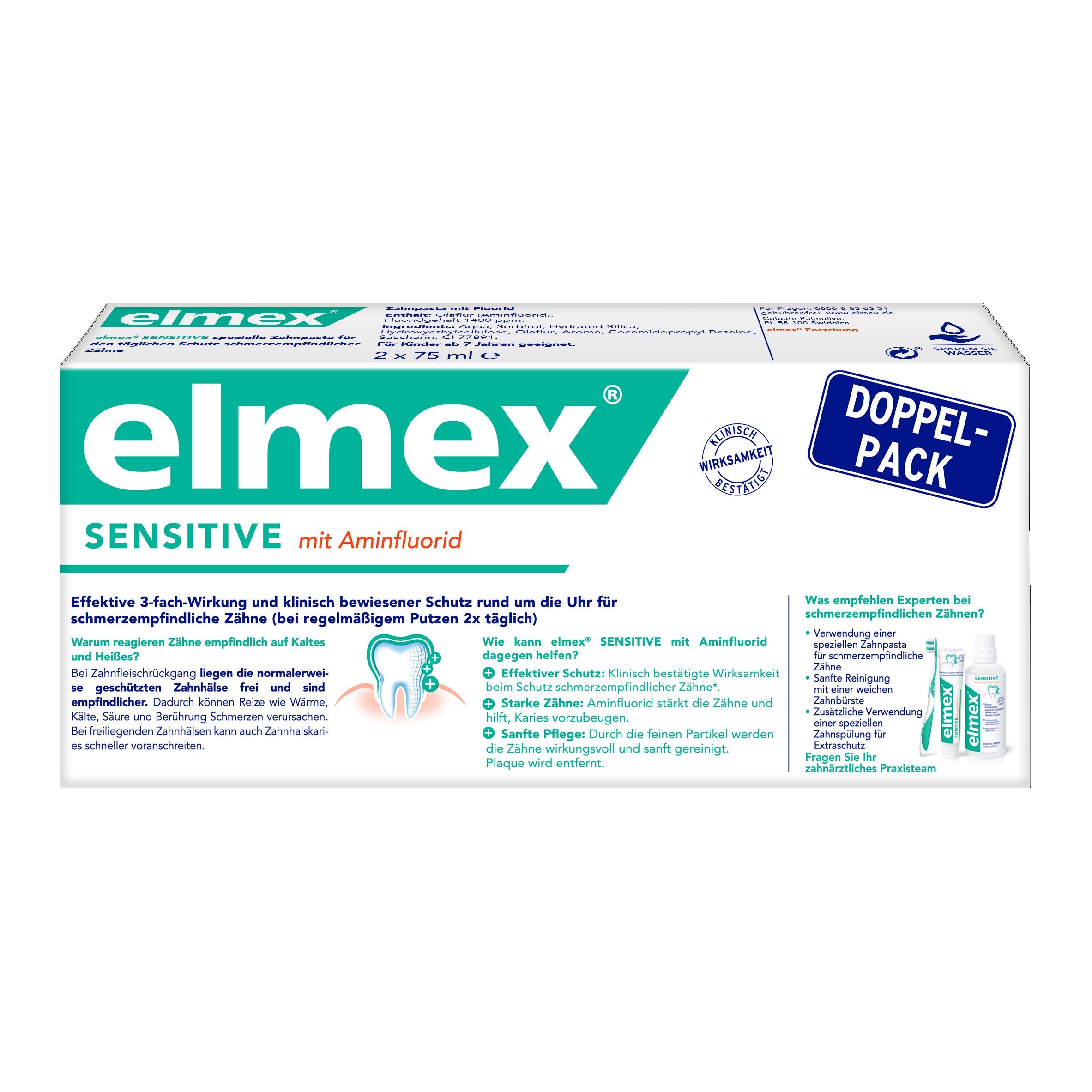 elmex SENSITIVE Zahnpasta Doppelpack, 2 x 75 ml
