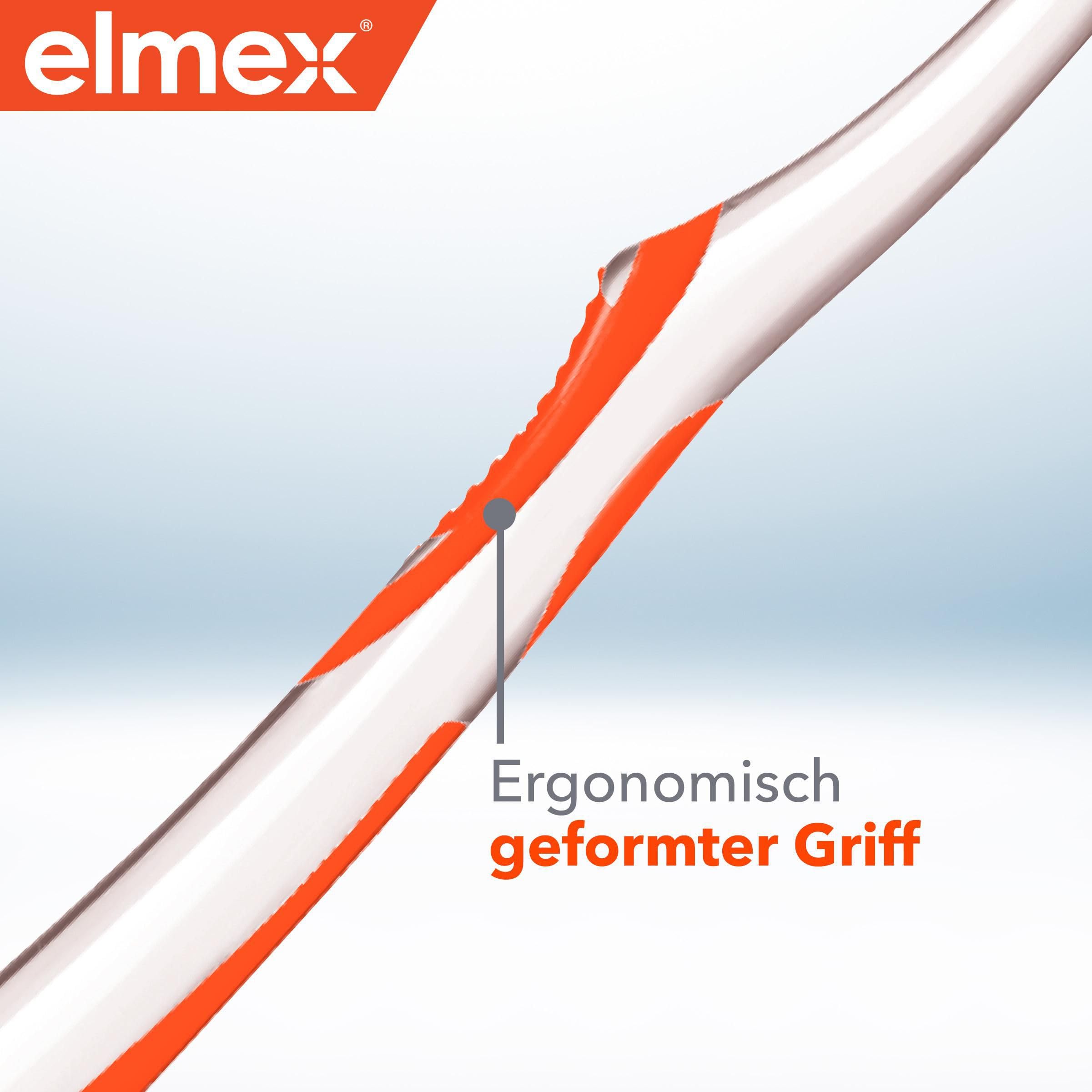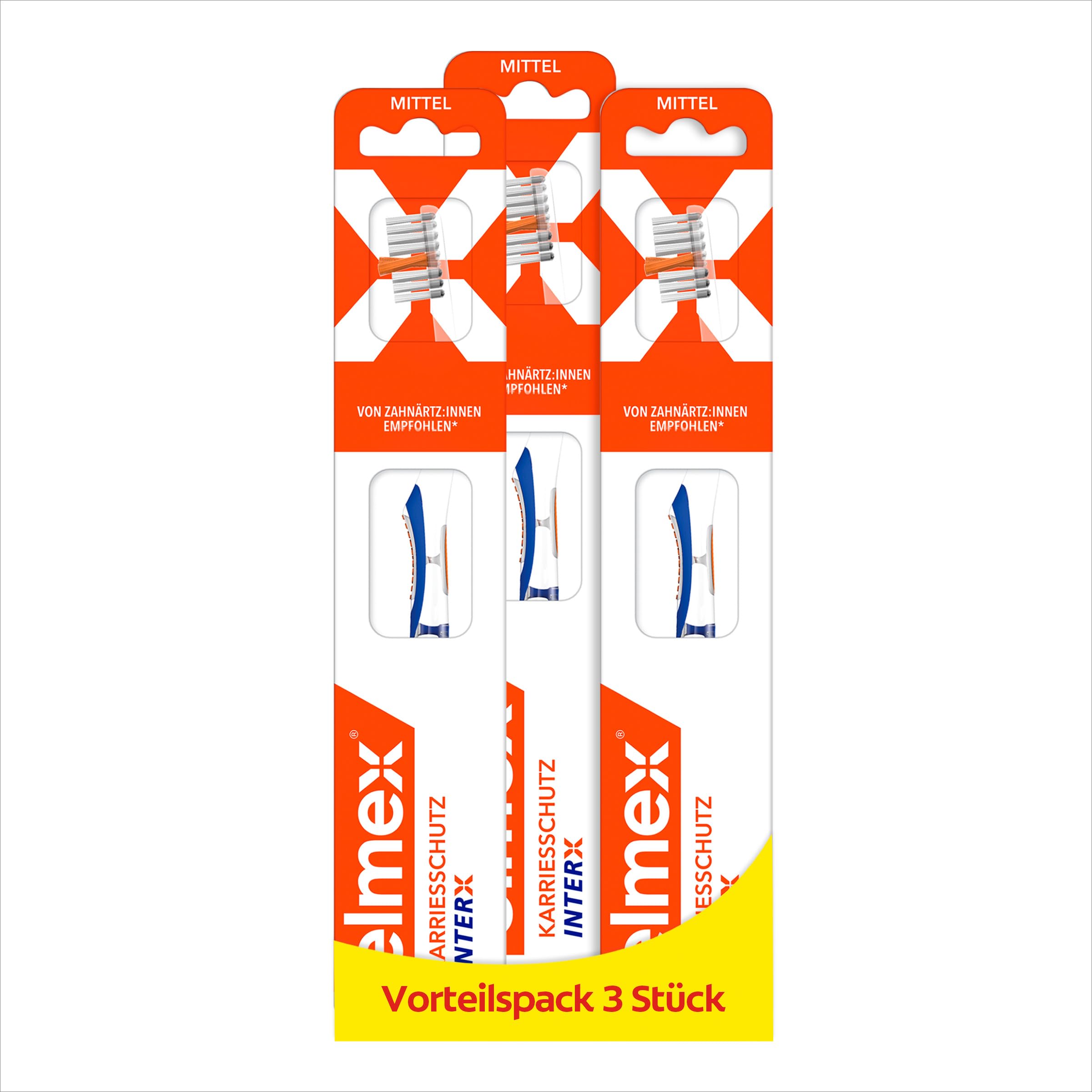 elmex Zahnbürste Kariesschutz InterX Mittel, 1 Stück – X-Borsten für eine besonders gründliche Zahnreinigung – mit Kurzkopf für schwer erreichbare Backenzähne (Packung mit 3)