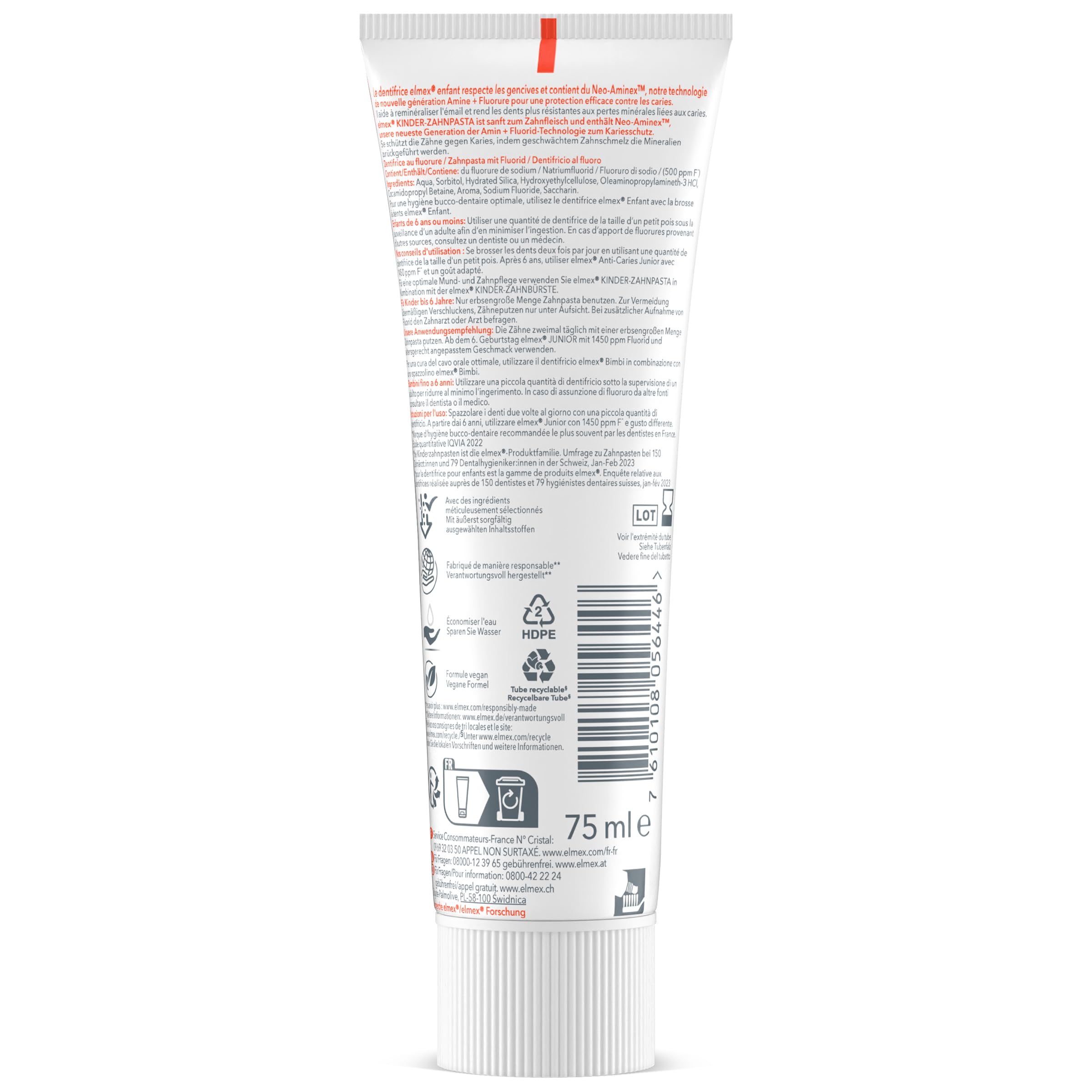 Elmex Zahnpasta für Babys und Kleinkinder, schützt die Milchzähne, gegen Karies, 0 Farbstoffe – ab dem ersten Bürsten – 0 – 6 Jahre, 75 ml