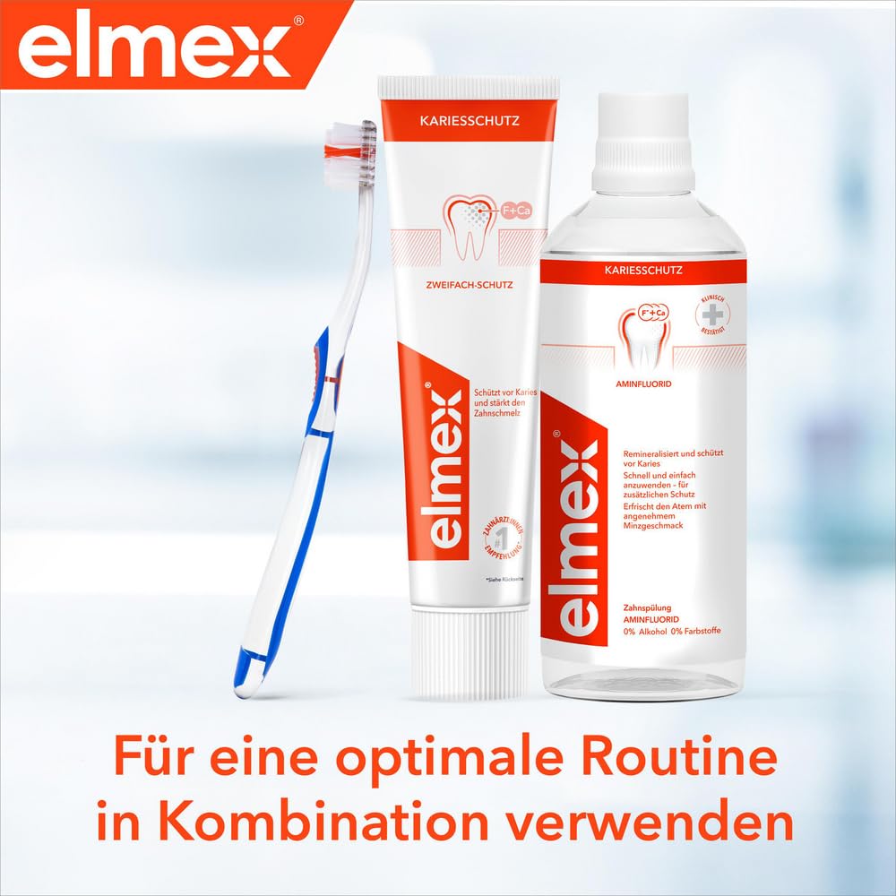 elmex Zahnpasta Kariesschutz 75ml – medizinische Zahnreinigung für hochwirksamen Kariesschutz – bietet zweifach aktives Kalzium-Fluorid Schutzschild für widerstandsfähige Zähne