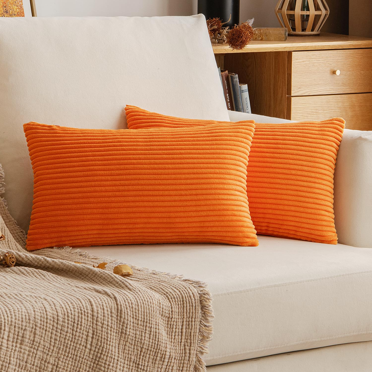 EMEMA Kissenbezug 30x50 cm Herbst Kordsamt Kissenbezüge Dekokissen Sofakissen Cord Kissenhülle Zierkissenbezug Kord Dekorative Weiche für Sofa Wohnzimmer Schlafzimmer 2er Set Orange