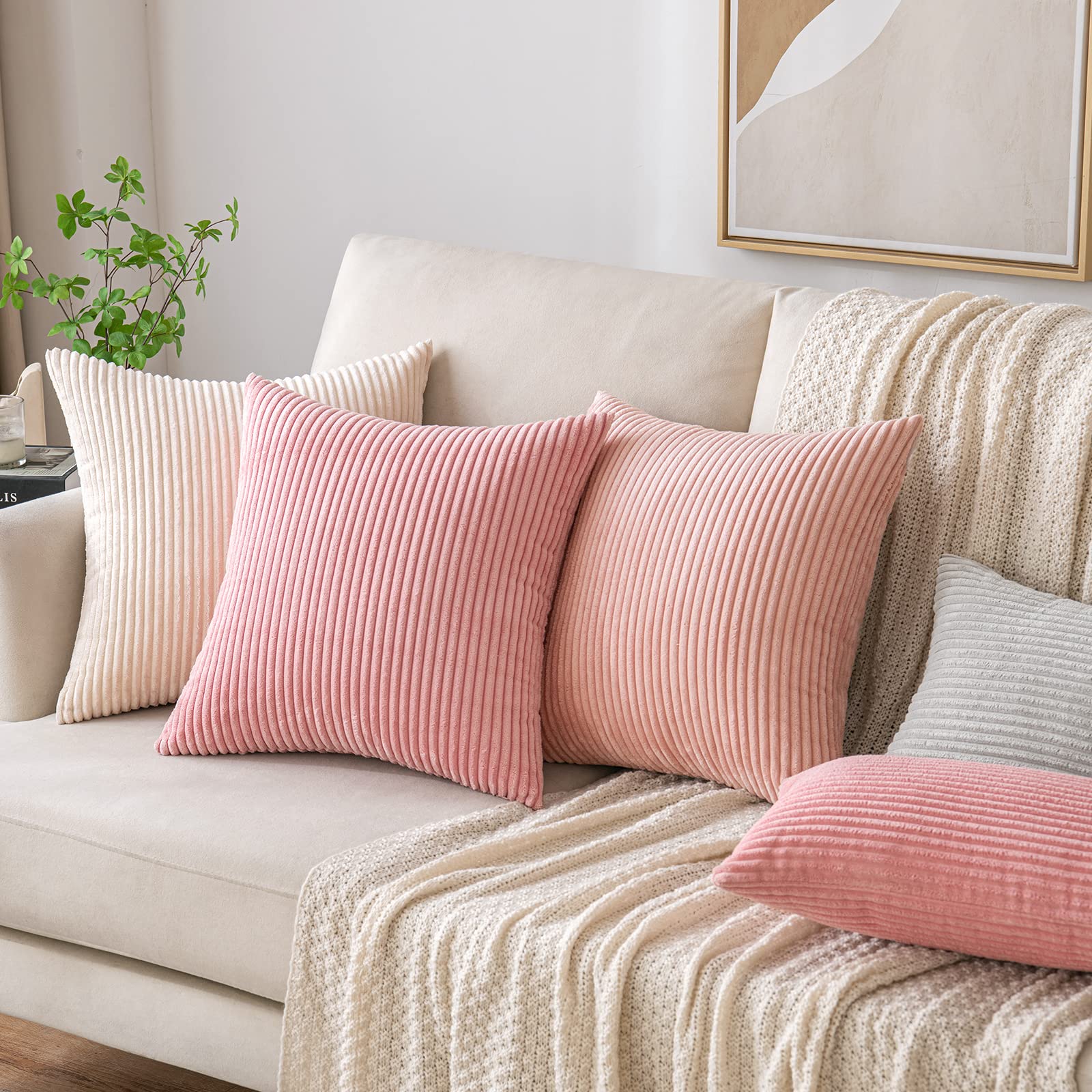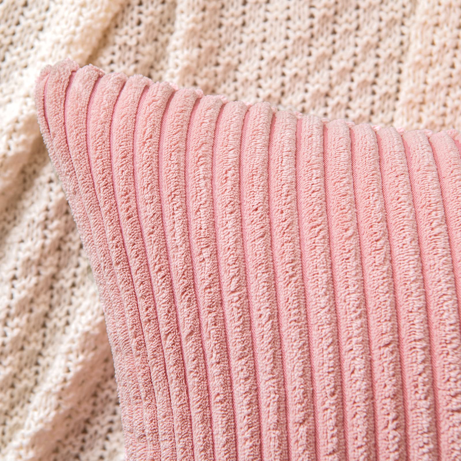 EMEMA Kissenbezug 40x40 cm Kordsamt Kissenbezüge Dekokissen Sofakissen Cord Kissenhülle Zierkissenbezug Kord Dekorative Weiche für Sofa Wohnzimmer Schlafzimmer 2er Set Pfirsich