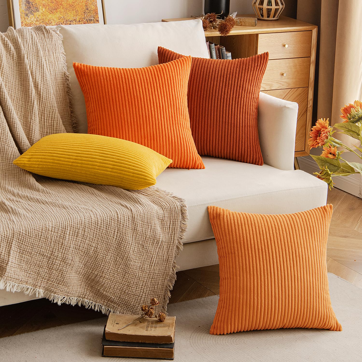 EMEMA Kissenbezug 50x50 cm Herbst Kordsamt Kissenbezüge Dekokissen Sofakissen Cord Kissenhülle Zierkissenbezug Kord Dekorative Weiche für Sofa Wohnzimmer Schlafzimmer 2er Set Orange