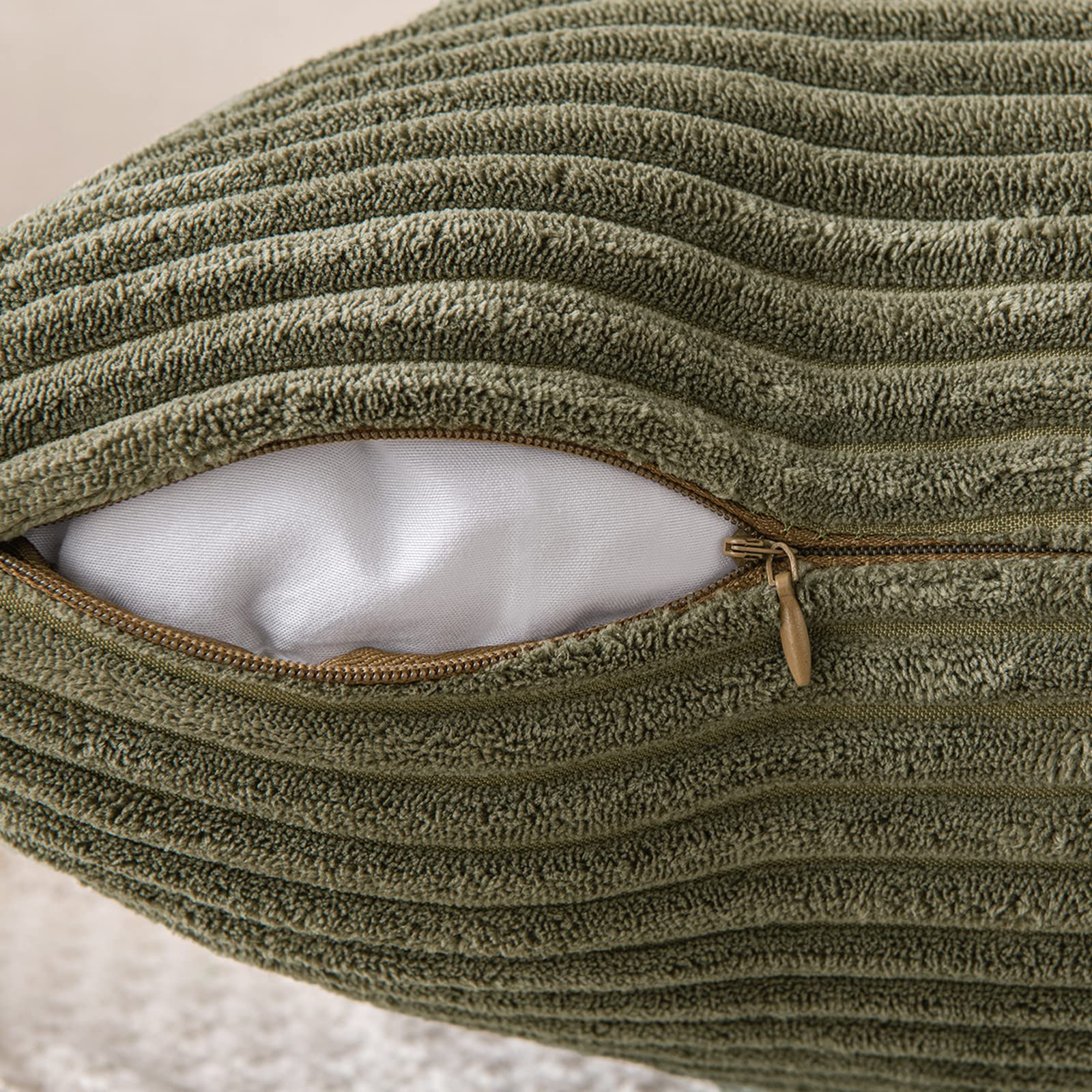 EMEMA Kissenbezug 50x50 cm Kordsamt Kissenbezüge Dekokissen Sofakissen Cord Kissenhülle Zierkissenbezug Kord Dekorative Weiche für Sofa Wohnzimmer Schlafzimmer 2er Set Olivgrün