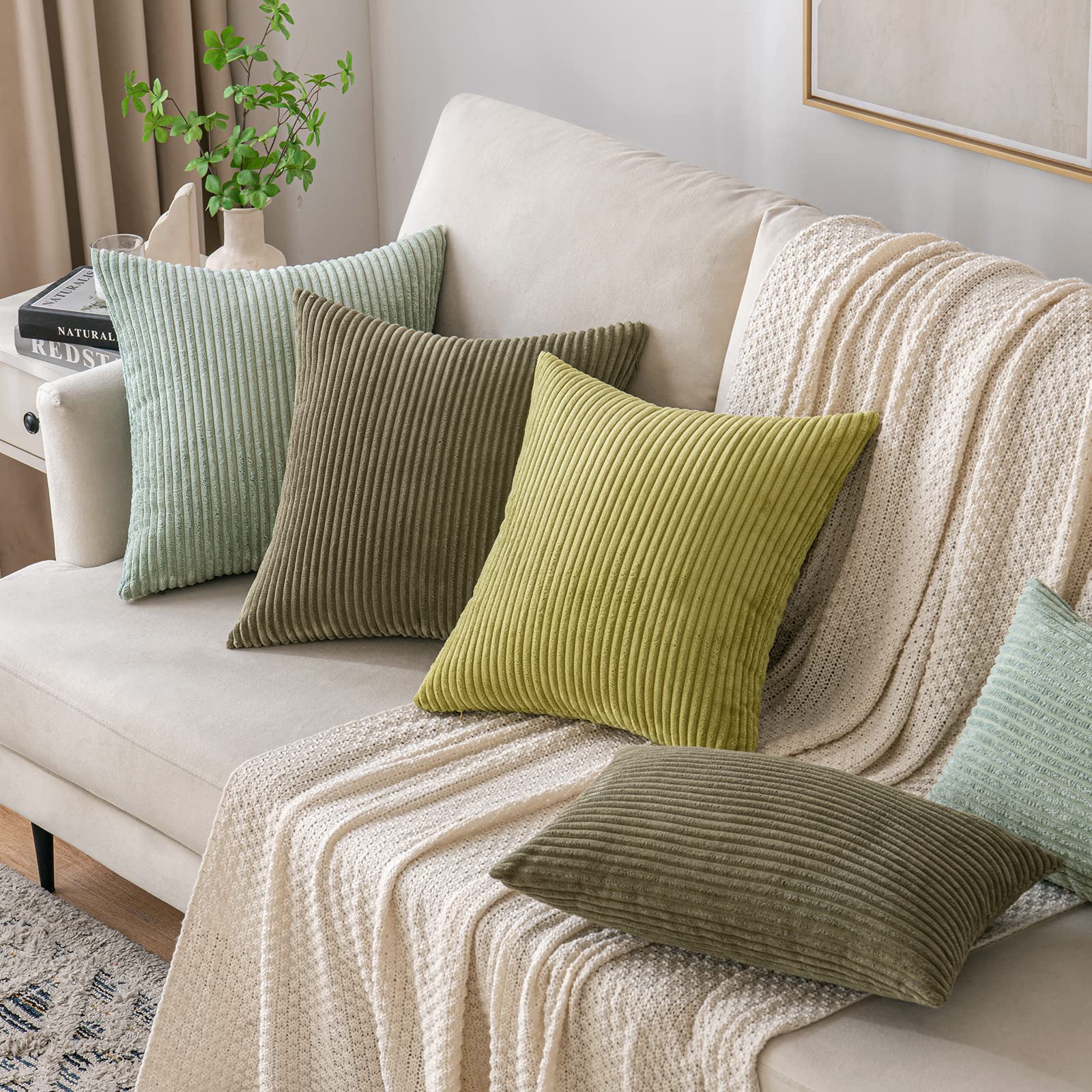 EMEMA Kissenbezug 40x40 cm Kordsamt Kissenbezüge Dekokissen Sofakissen Cord Kissenhülle Zierkissenbezug Kord Dekorative Weiche für Sofa Wohnzimmer Schlafzimmer 2er Set Grasgrün