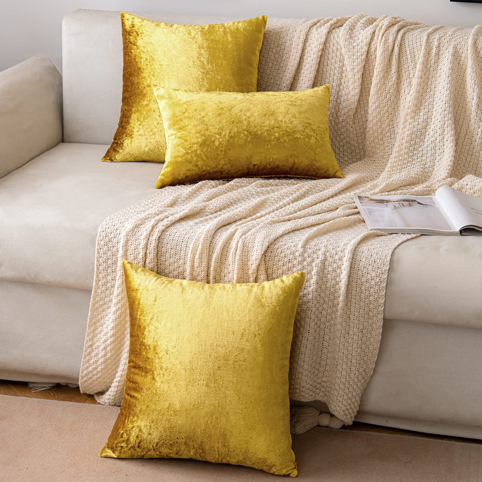 EMEMA Samt Kissenbezug Kissenhülle Dekorative Dekokissen Sofakissen Lendenkissen Wurfkissenbezug mit Verstecktem Reissverschluss Schlafzimmer Sofa 2er Set 40x40 cm Golden Luxuriös