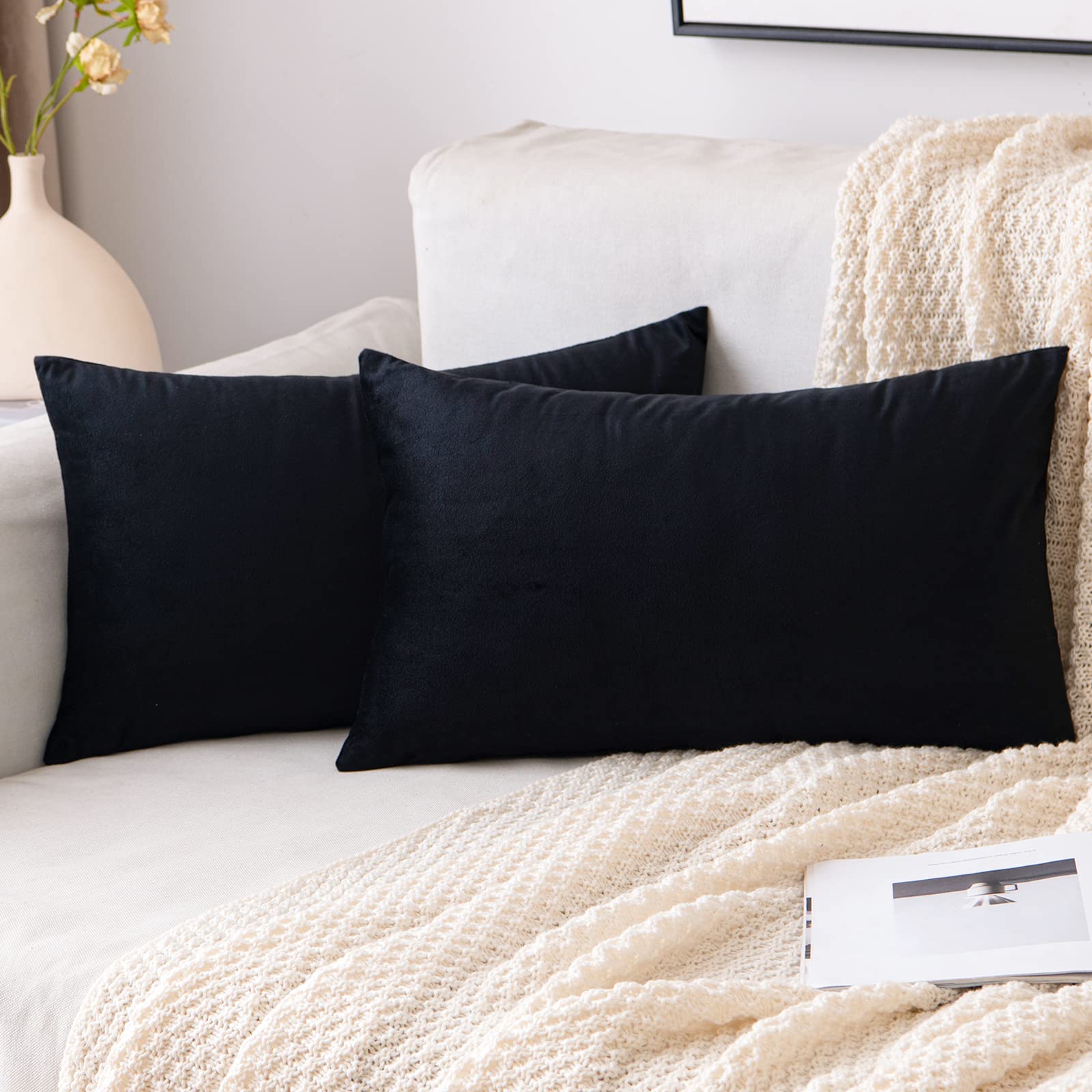 EMEMA Samt Kissenbezug Kissenhülle Dekorative Dekokissen Sofakissen Lendenkissen Wurfkissenbezug mit Verstecktem Reissverschluss Schlafzimmer Sofa 2er Set 30x50 cm Schwarz