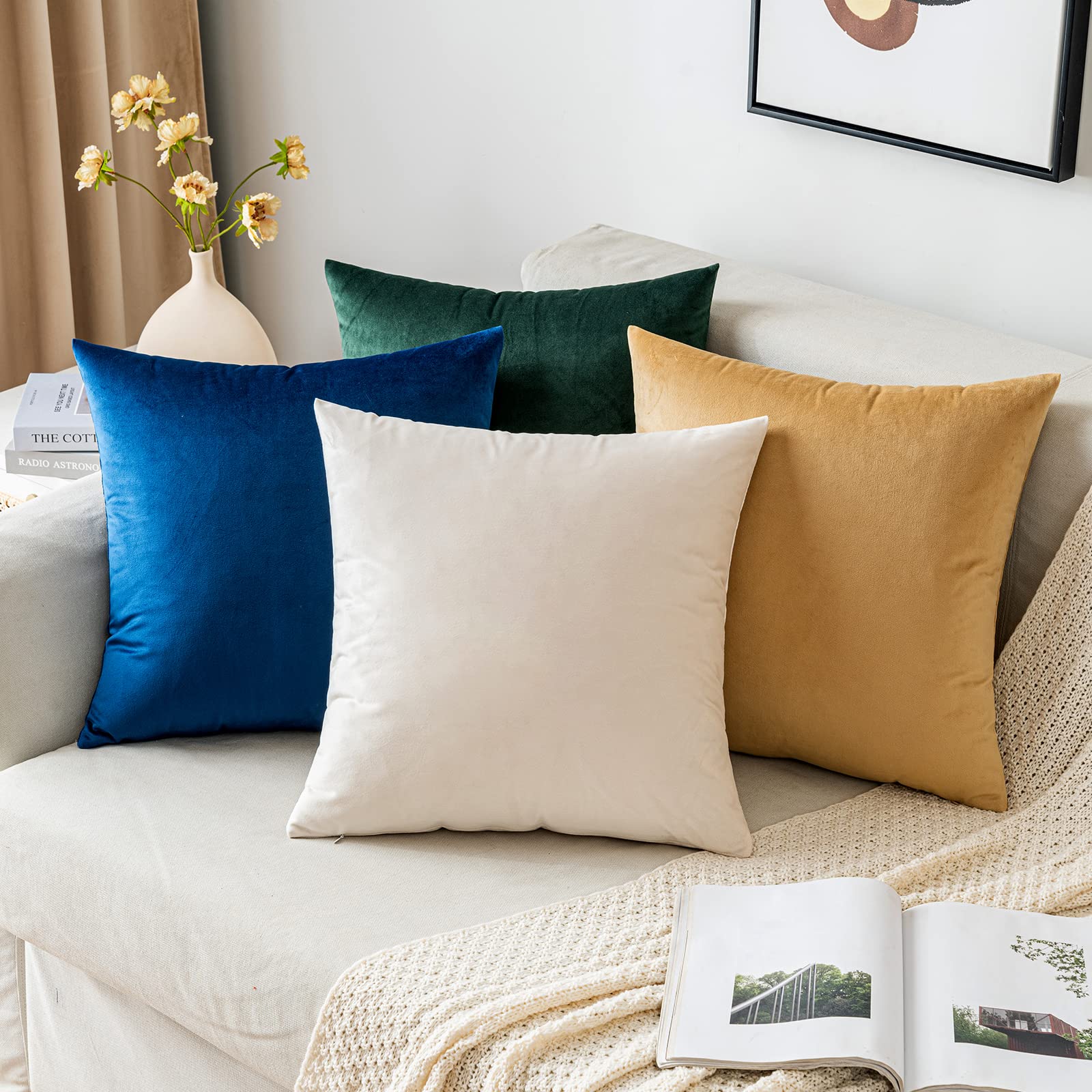 EMEMA Samt Kissenbezug Kissenhülle Dekorative Dekokissen Sofakissen Lendenkissen Wurfkissenbezug mit Verstecktem Reissverschluss Sofa Schlafzimmer 2er Set 40x60 cm Creme weiss