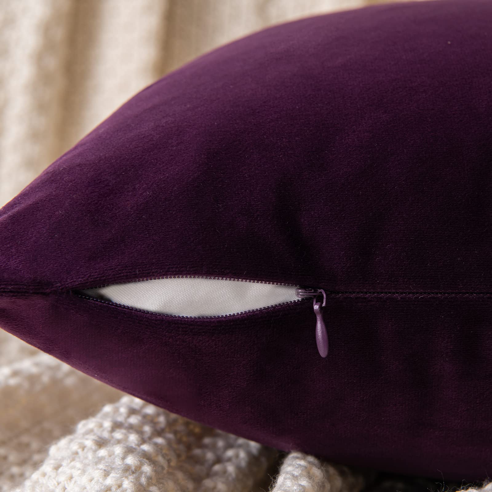 EMEMA Samt Kissenbezug Kissenhülle Dekorative Dekokissen Sofakissen Lendenkissen Wurfkissenbezug mit Verstecktem Reissverschluss Schlafzimmer Sofa 2er Set 45x45 cm Aubergine Lila