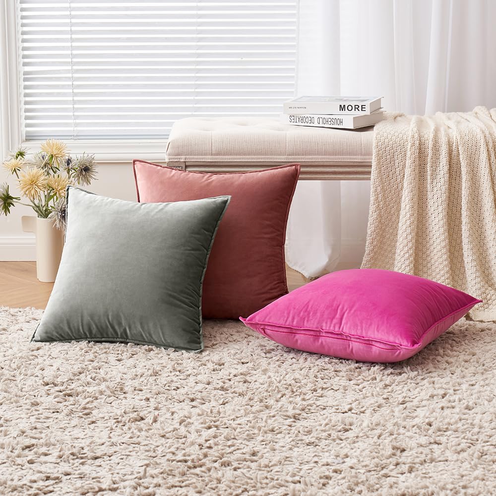 EMEMA Samt Kissenbezug Kissenhülle 50x50 cm Dekorative Sofakissen Dekokissen Umwickelte Kante 2er Set Kissenbezüge Zierkissenbezug für Sofa Wohnzimmer Schlafzimmer Rose Rot