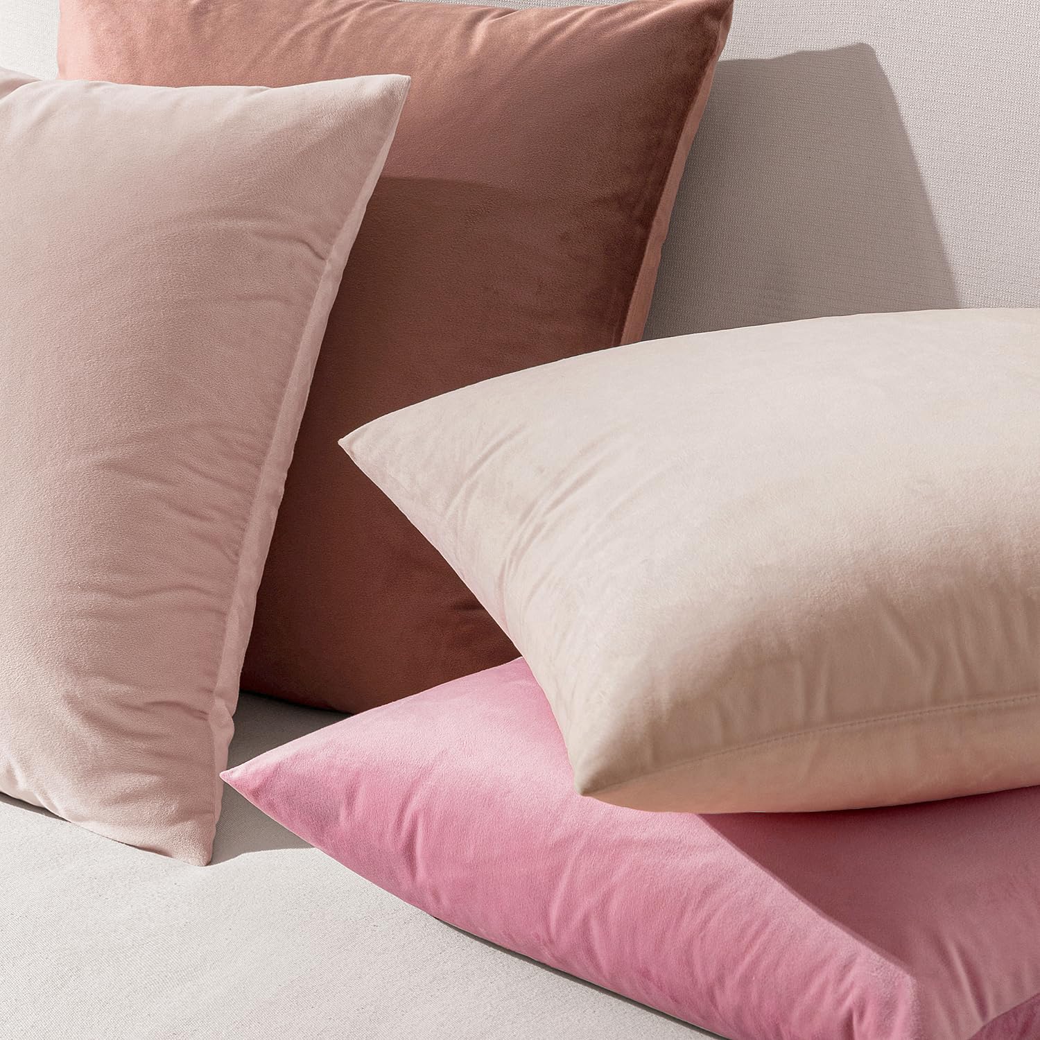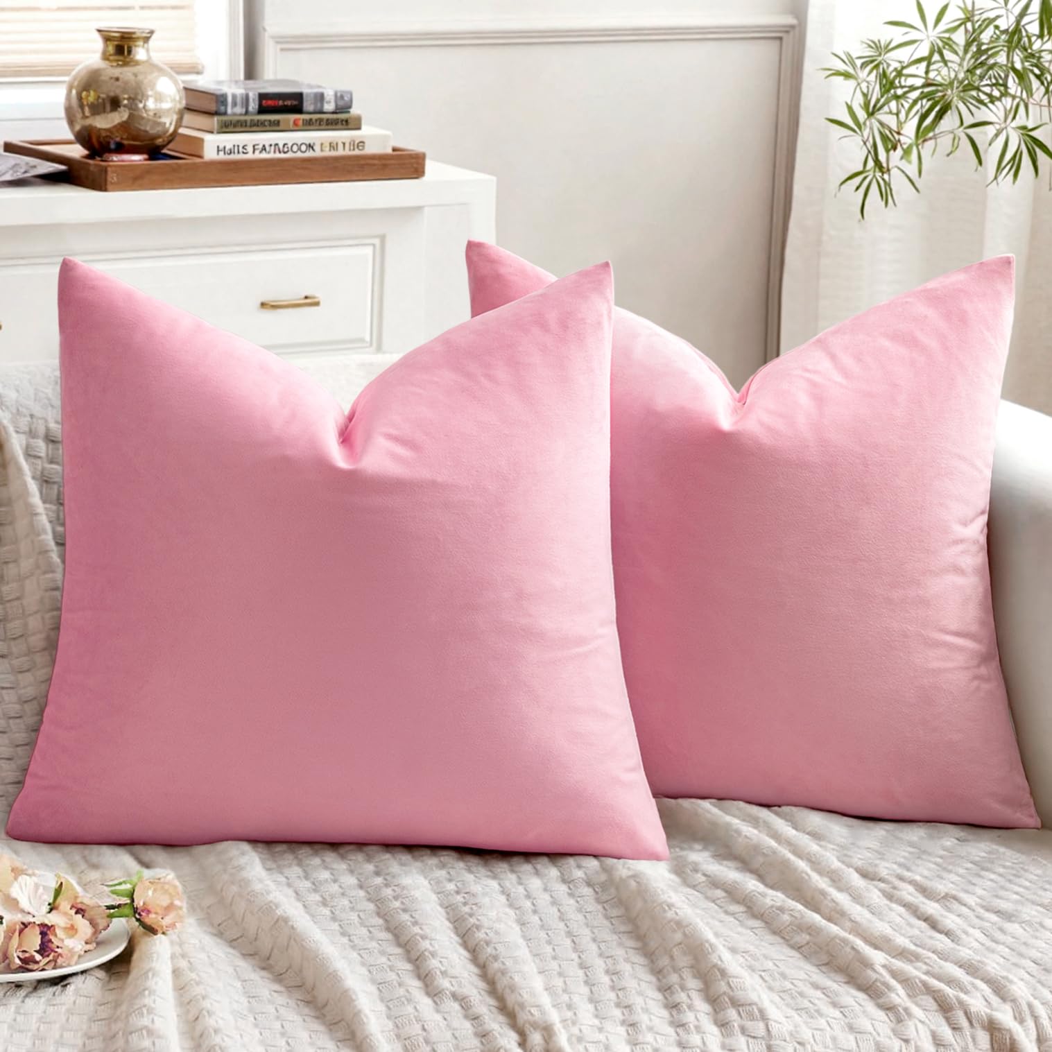 EMEMA Samt Kissenbezug Kissenhülle Dekorative Dekokissen Sofakissen Lendenkissen Wurfkissenbezug mit Verstecktem Reissverschluss Schlafzimmer Sofa 2er Set 40x40 cm Sakura Rosa