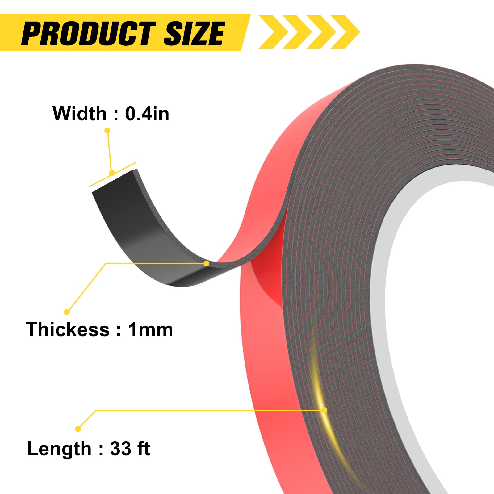 Emitever Doppelseitiges Klebeband - 10m x 10mm, Extra Stark Wasserdichtes Multifunktionales Montageklebeband klebestreifen für Wand und LED-Streifen, Auto, Wohn, Bürodekor