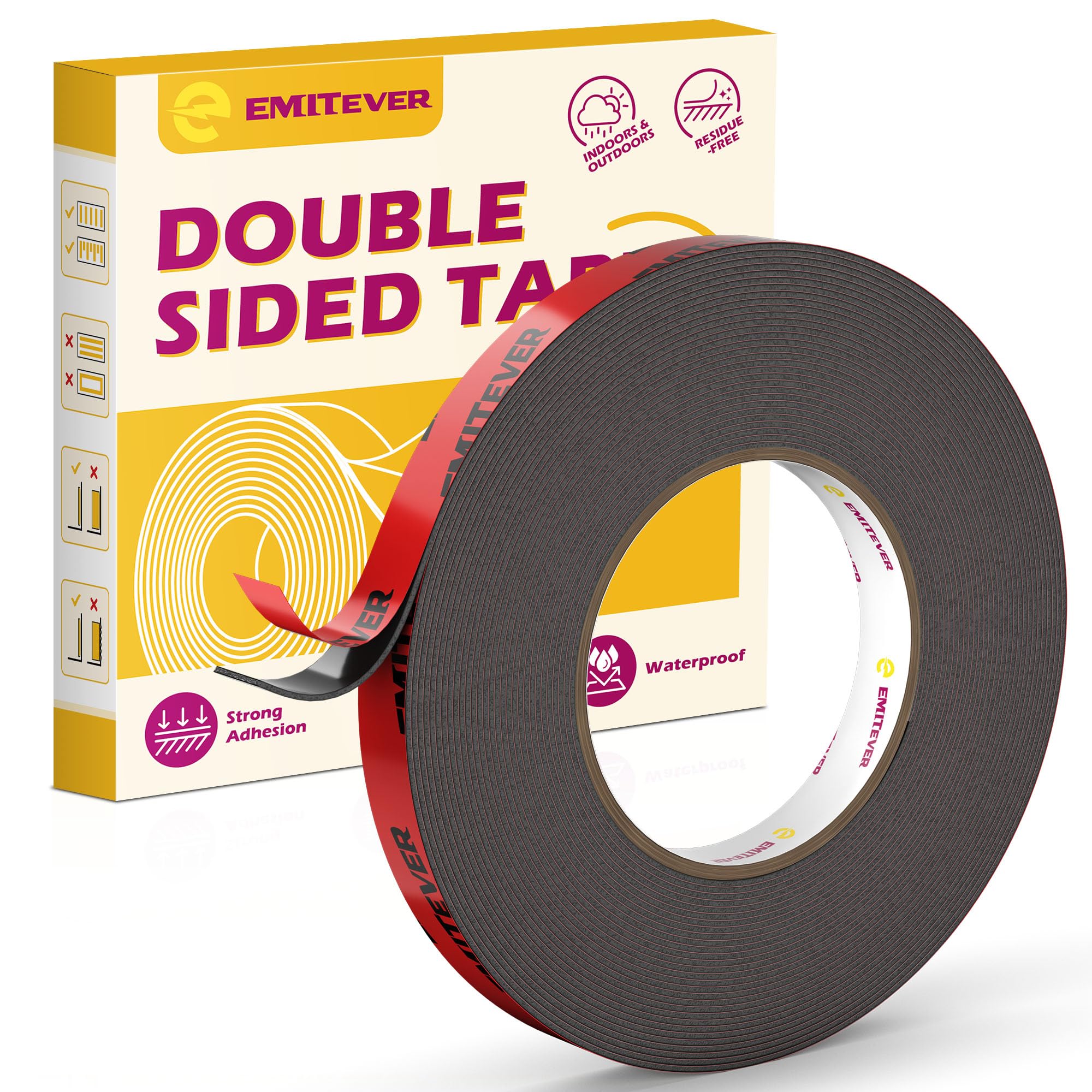 Emitever Doppelseitiges Klebeband - 10m x 12mm, Extra Stark Wasserdichtes Multifunktionales Montageklebeband klebestreifen für Wand und LED-Streifen, Auto, Wohn, Bürodekor