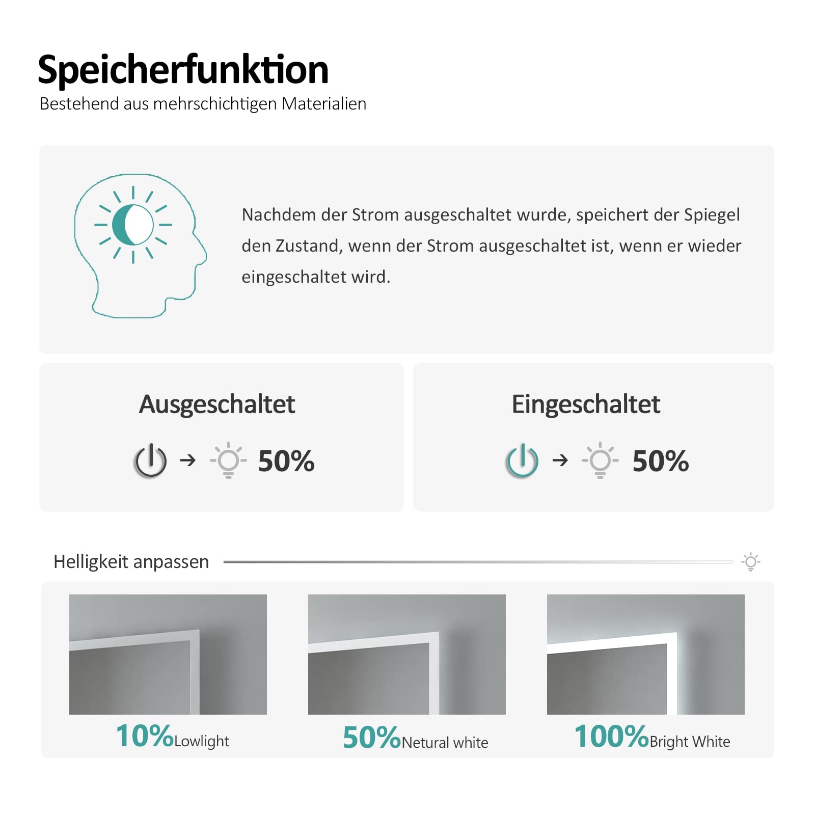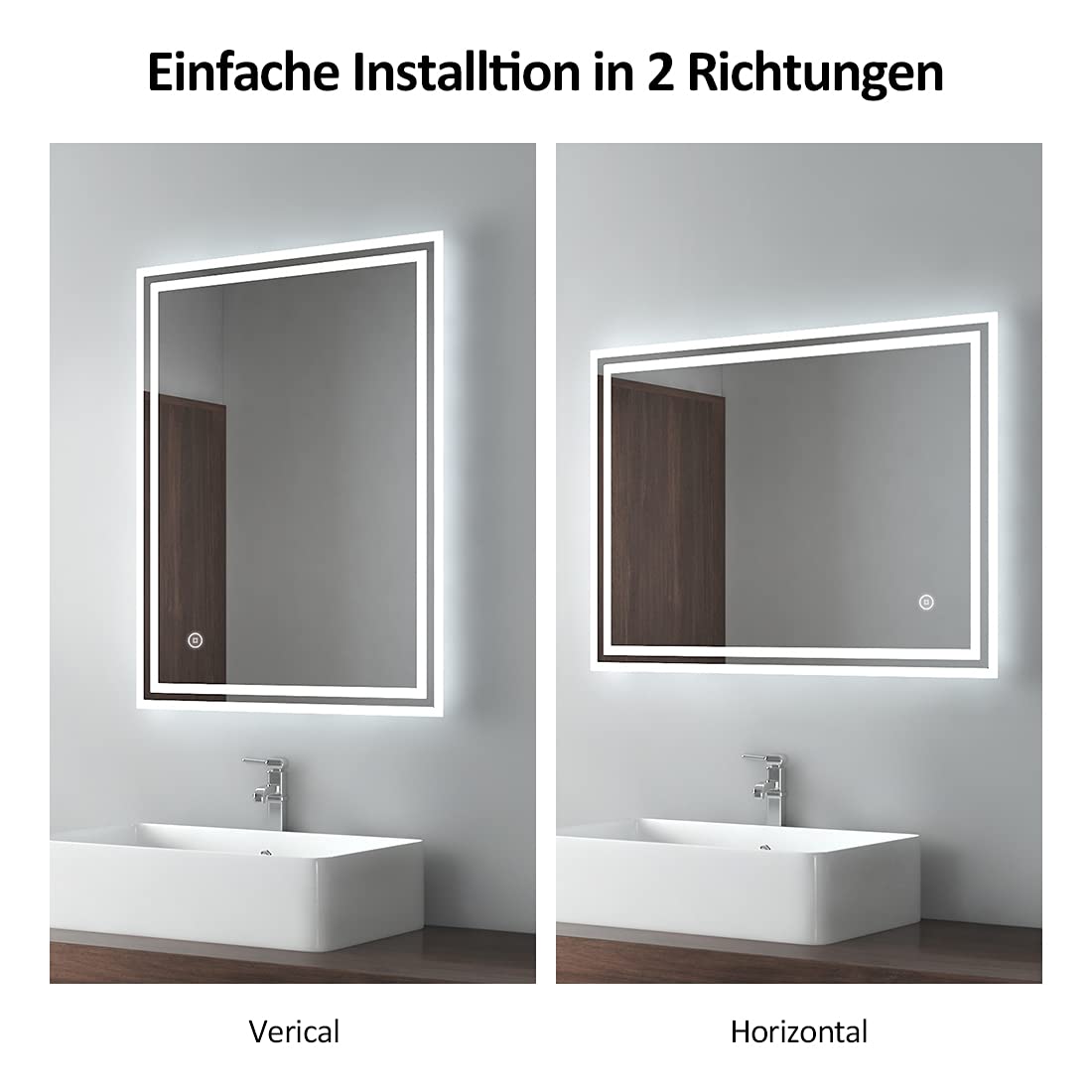 Unsere Kalt Weiss Spiegelbeleuchtung ist ausgestattet mit 6400k. (mit Touch-Schalter)