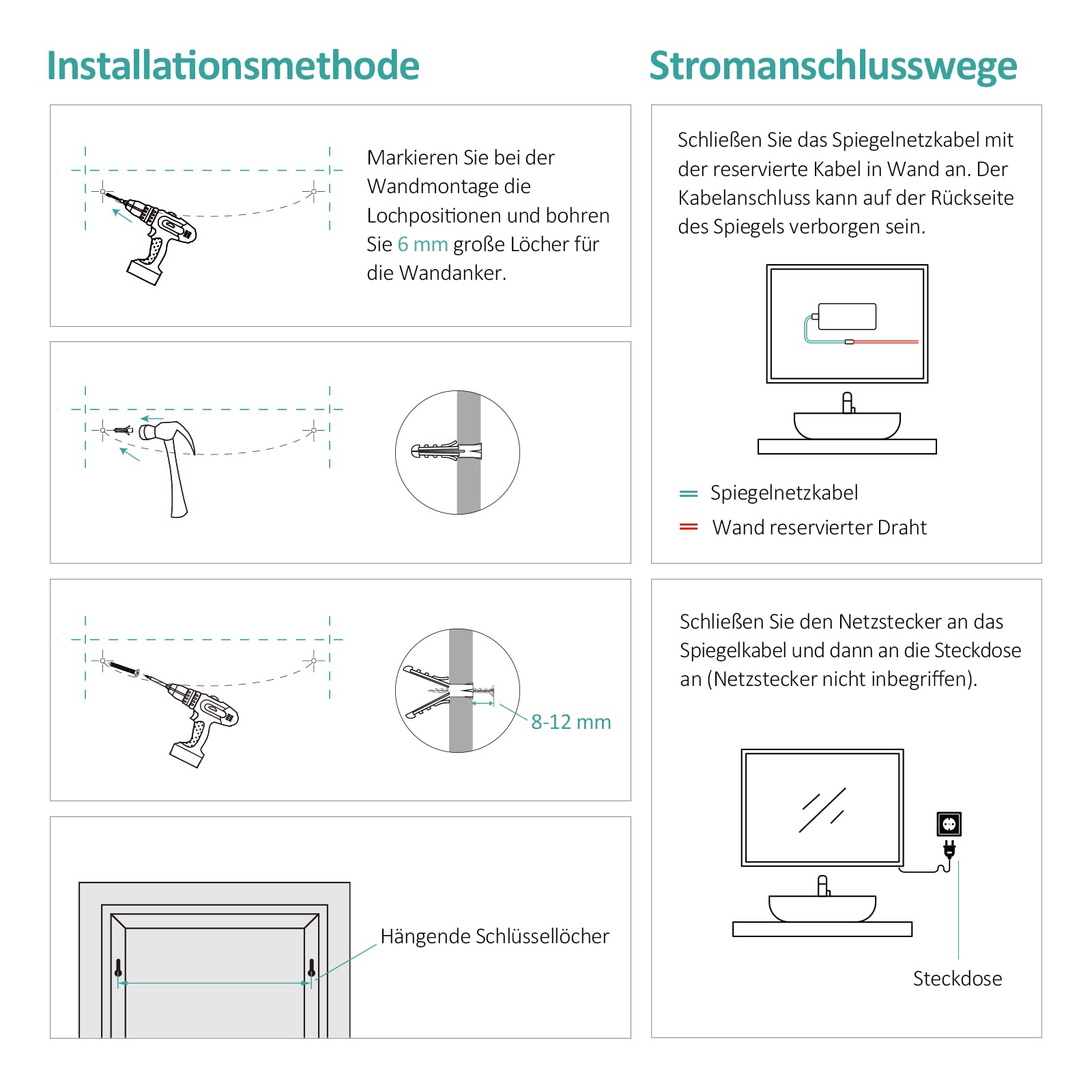 LED-Spiegel anschlussfertig für Stromanschluss