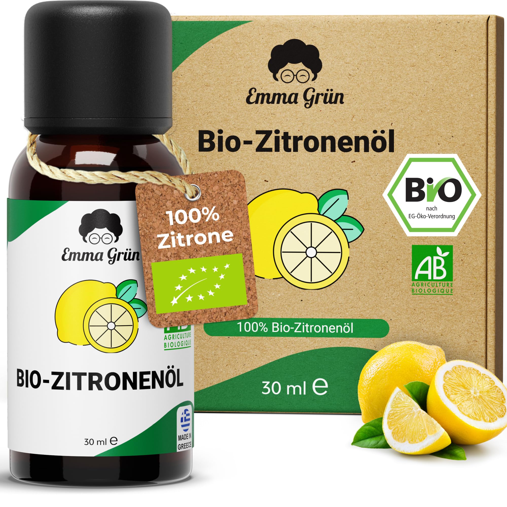 Emma Grün® Bio Zitronenöl Ätherisches Öl [100% Naturrein] - Spritziges Zitronen Öl 30ml - Reines Zitronenöl zum Verzehr - Ätherische Öle Bio - Kaltgepresst aus echten Zitronen - Lemon Oil